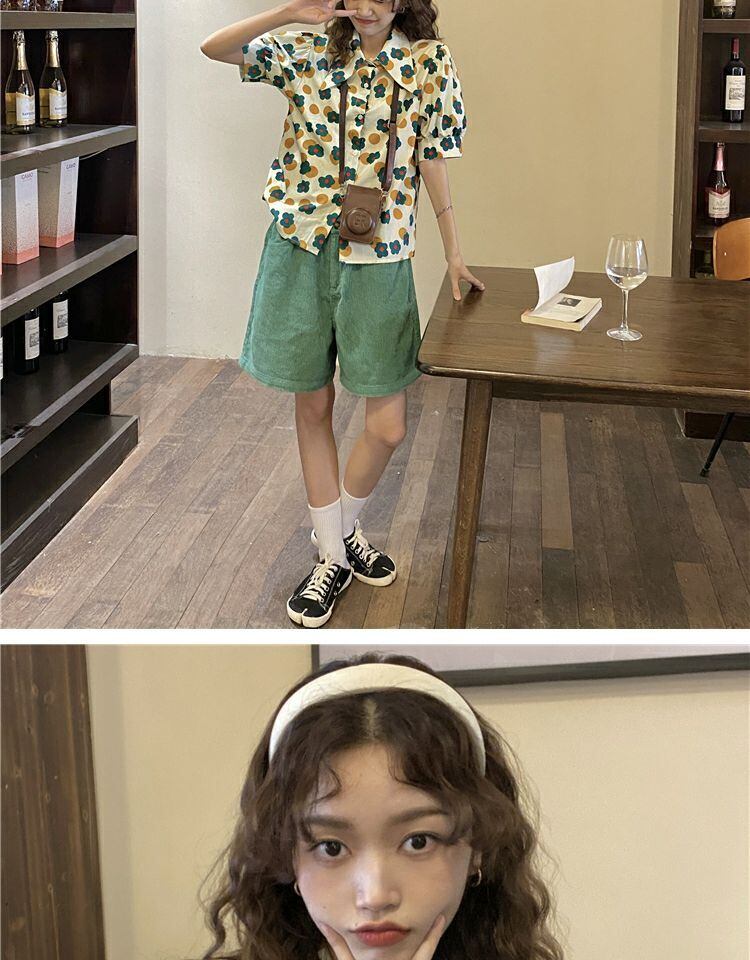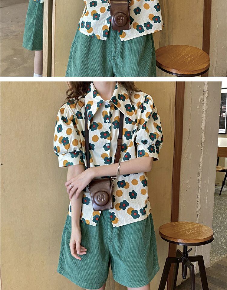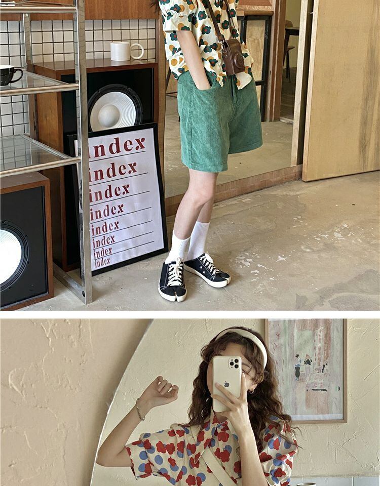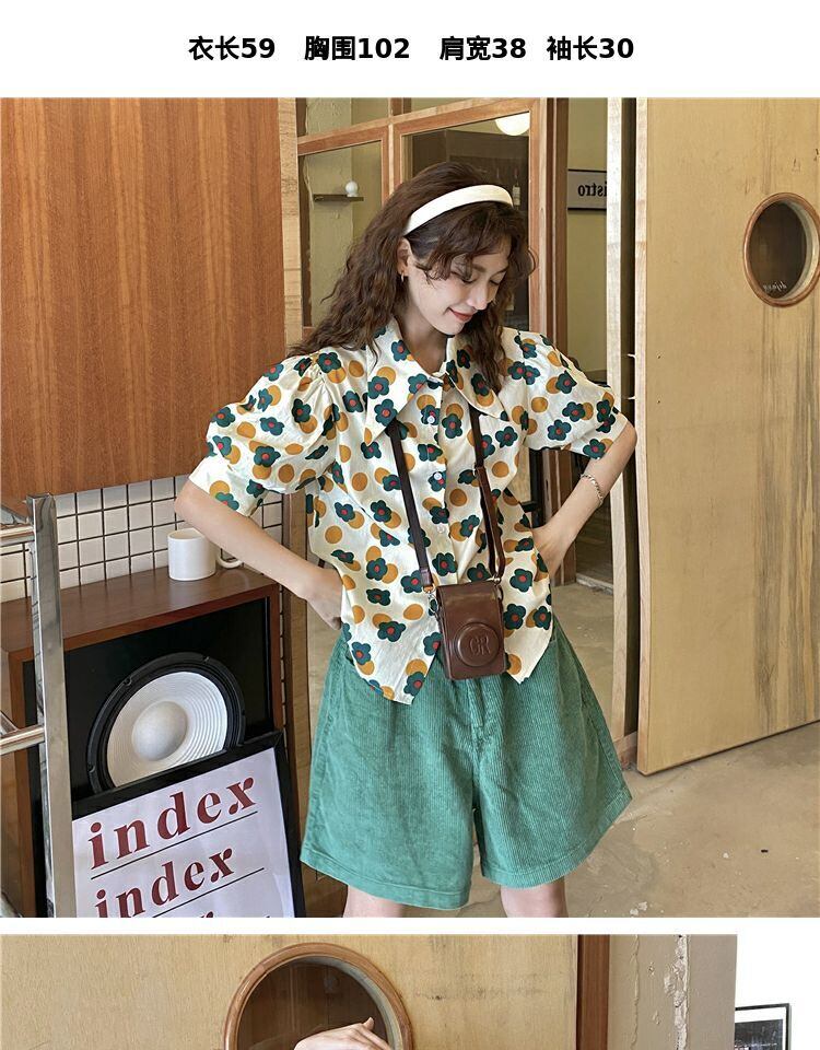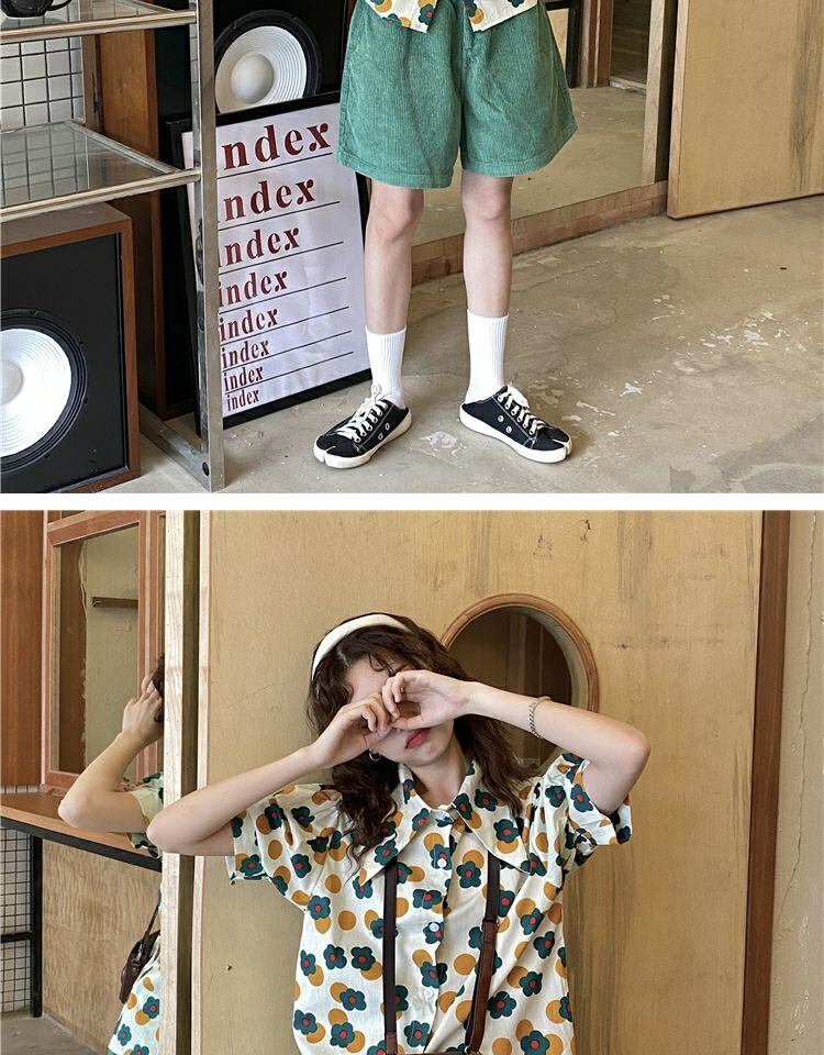 トップス サマーカラースタンダードFlowerデザイン プリント柄シャツ レトロ 夏物 フラワーデザイン 萌量不足19085824280