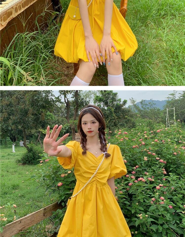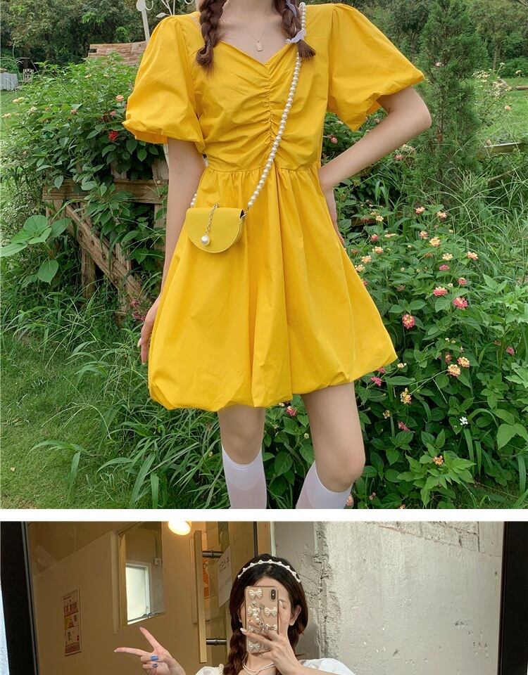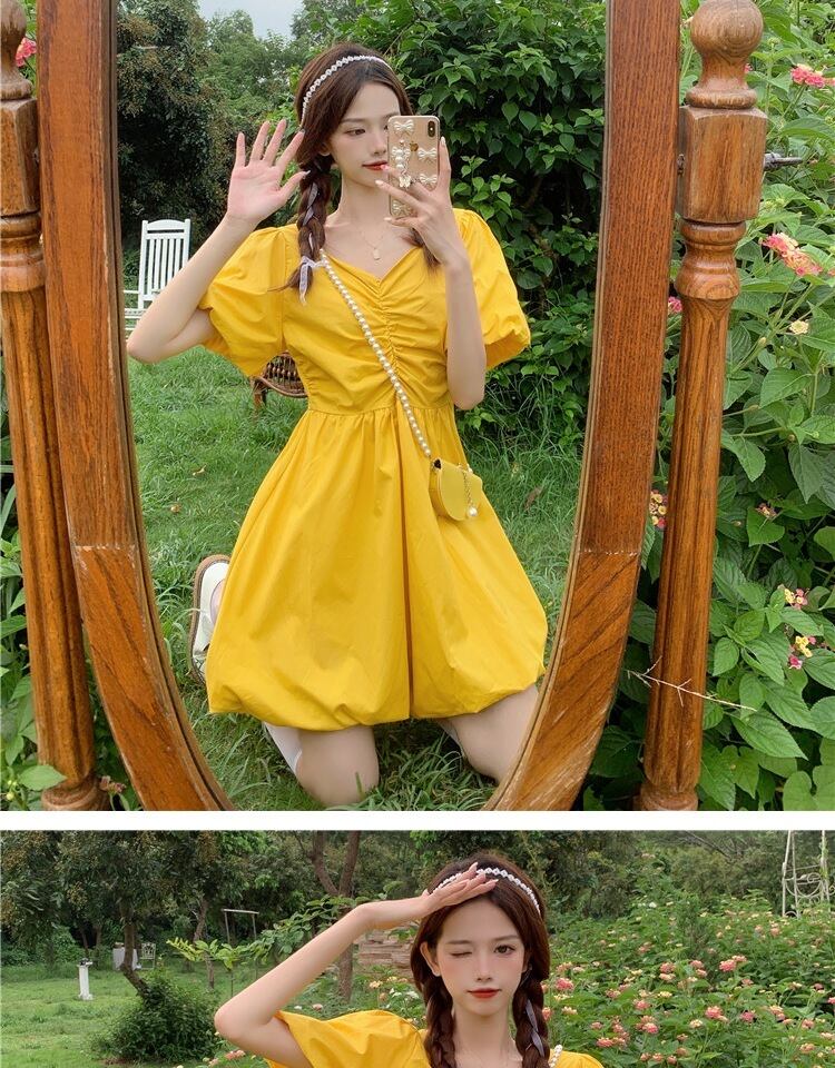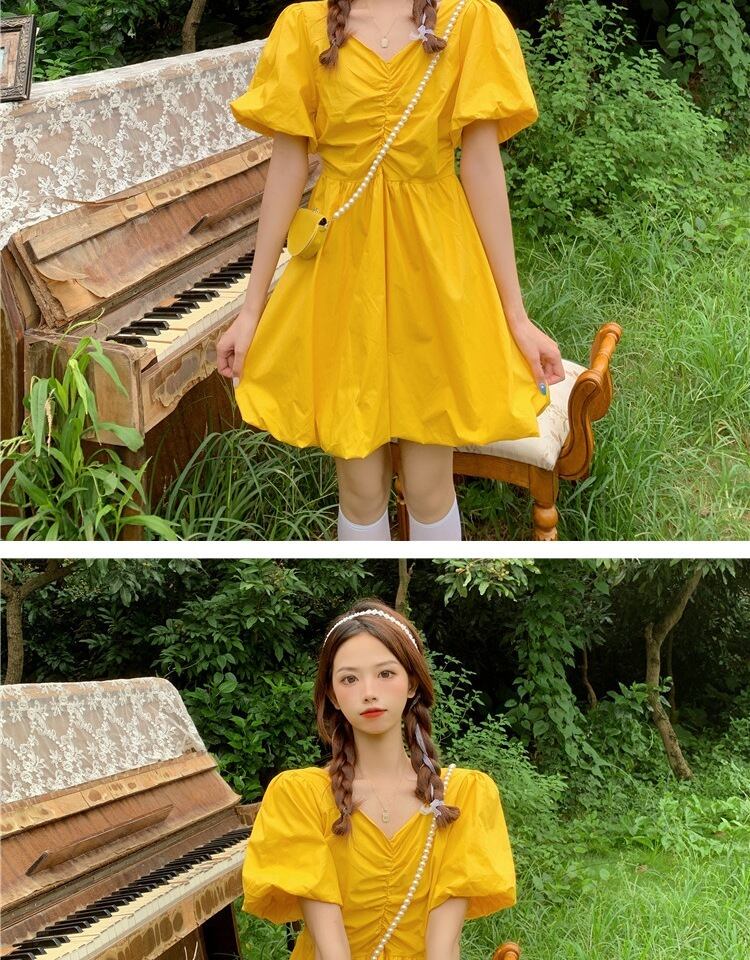 Vネックプリーツスカート ハイウェストウェストドレス サマー 大人ガーリー スウィート キュート カジュアル 夏物 萌量不足25405762381