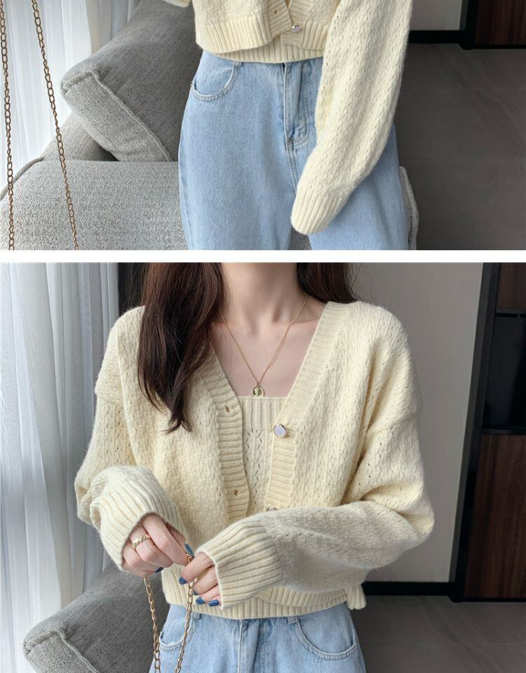 ショートニットカーディガンオータムジャケット スプリングウィンターセーター 春物 秋物 冬物 萌量不足90950407107