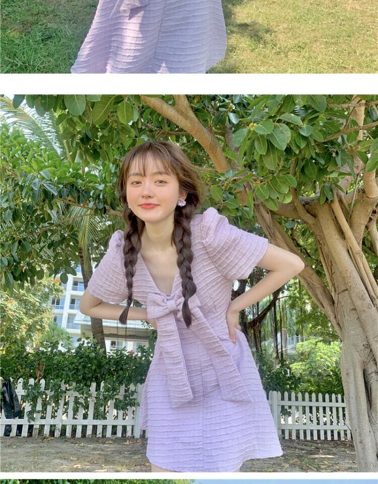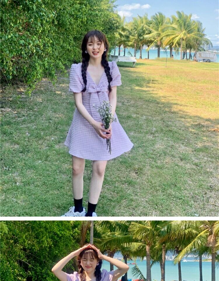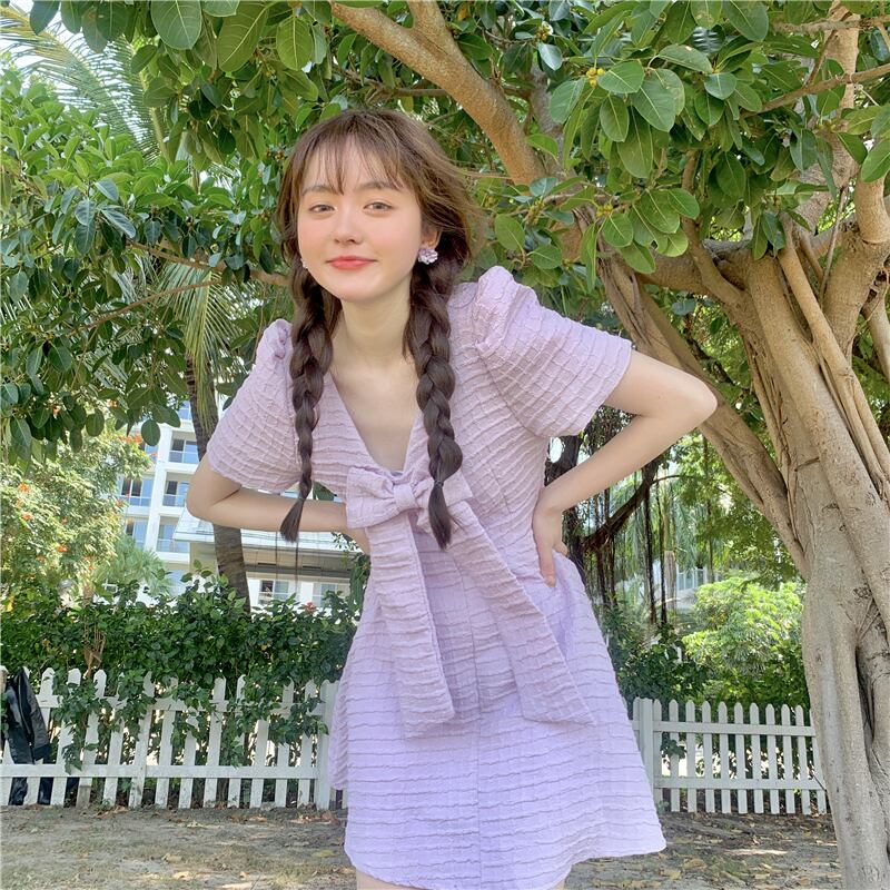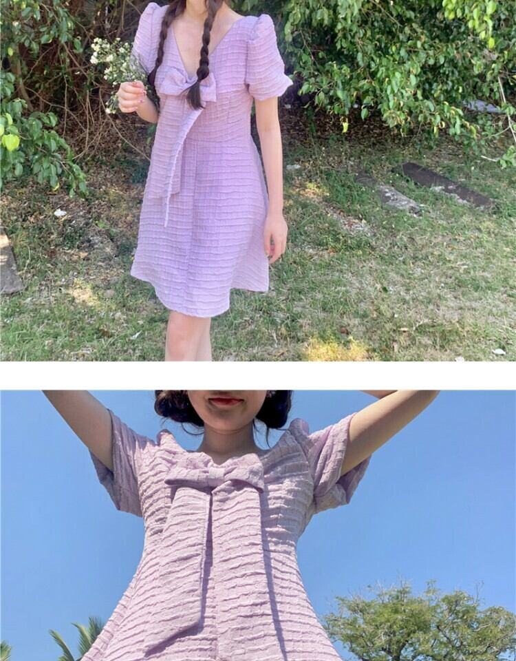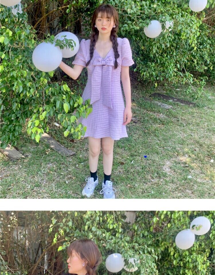 ドレス サマーショートスカート バックウェストスタンダード リボン レトロ 大人ガーリー スウィート キュート カジュアル 夏物 萌量不足34957227679