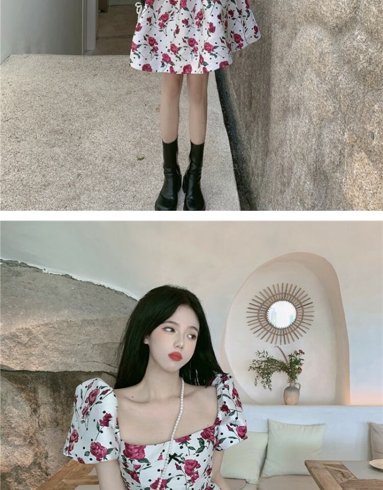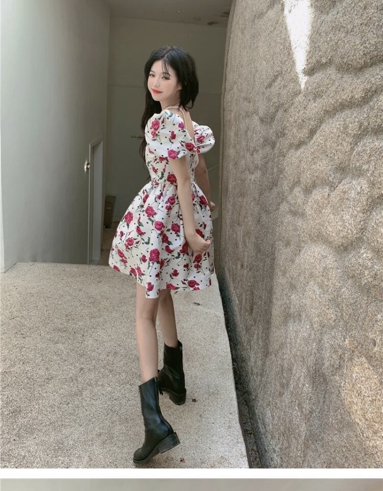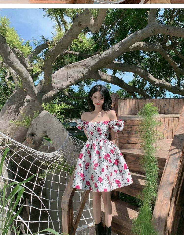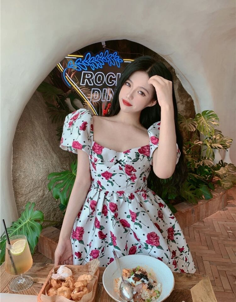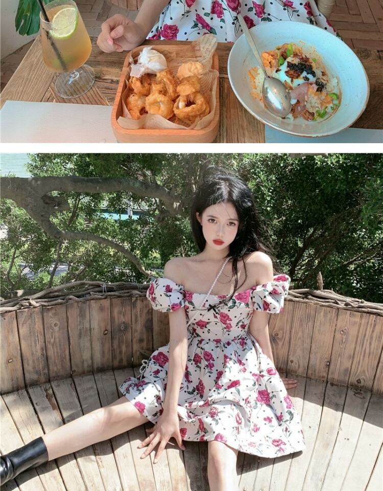ドレス サマー薄手フローラルスカート ウェスト 大人ガーリー スウィート キュート カジュアル 夏物 花柄 萌量不足43620923688