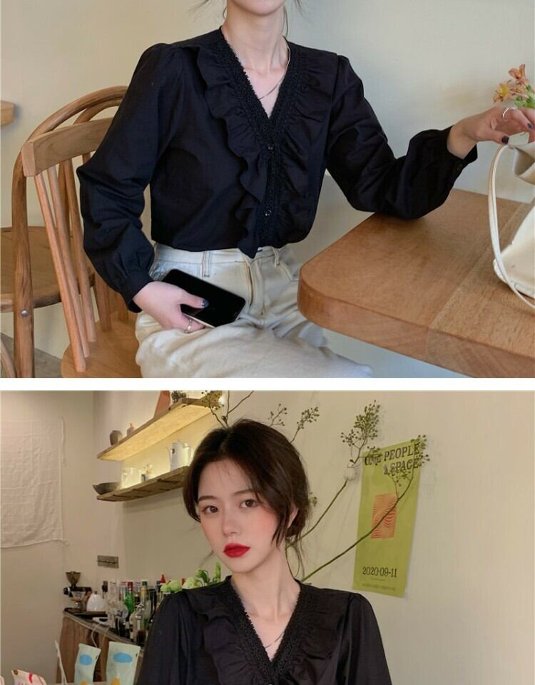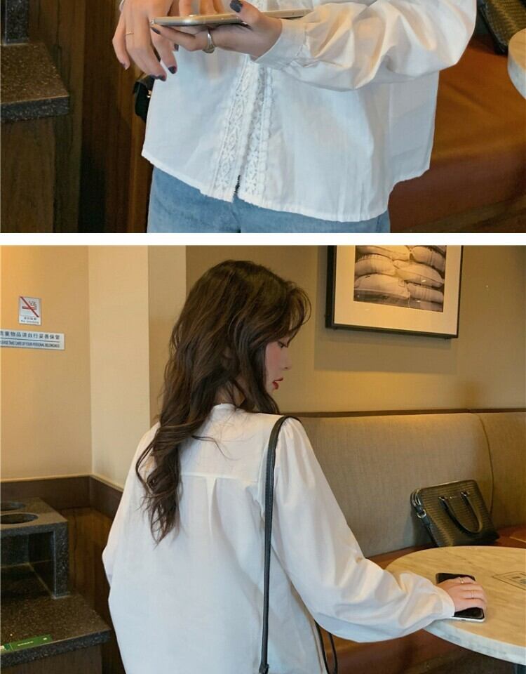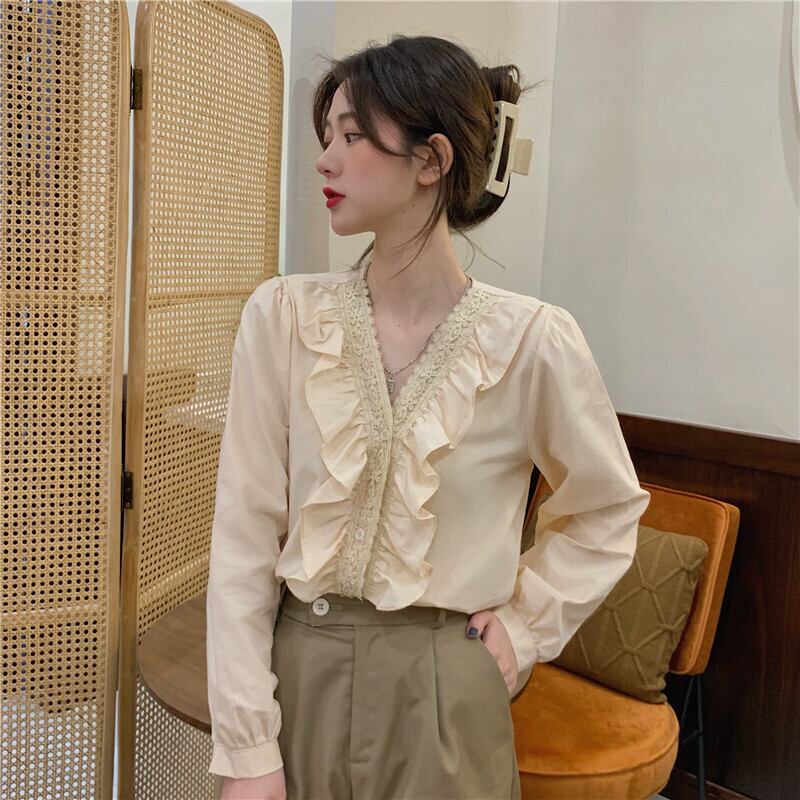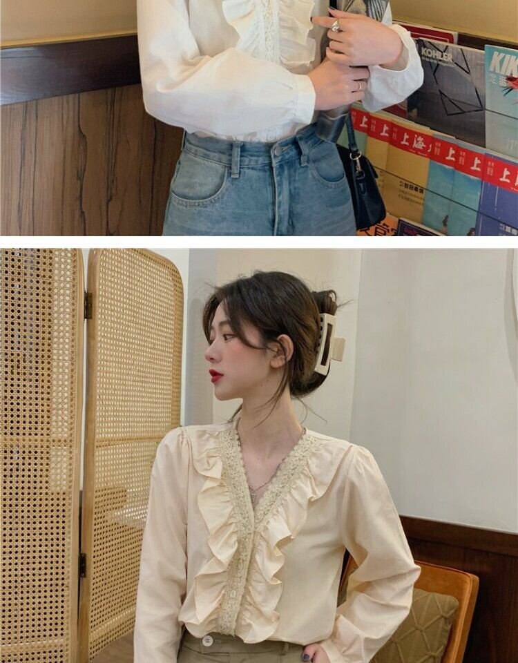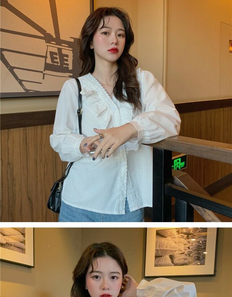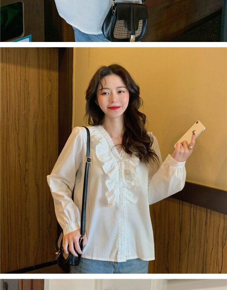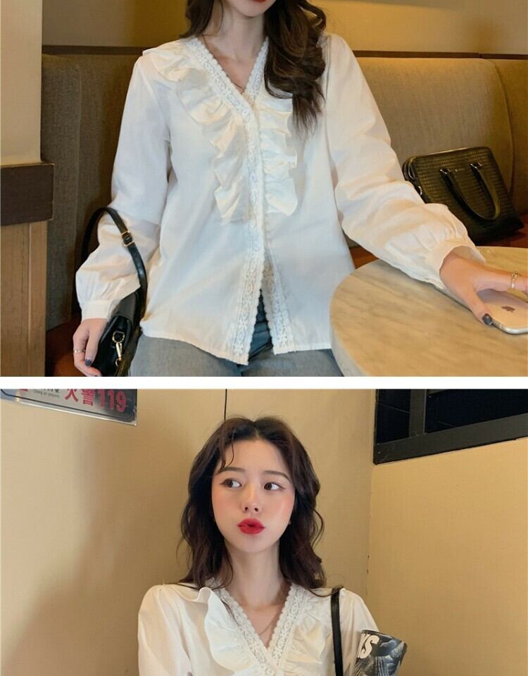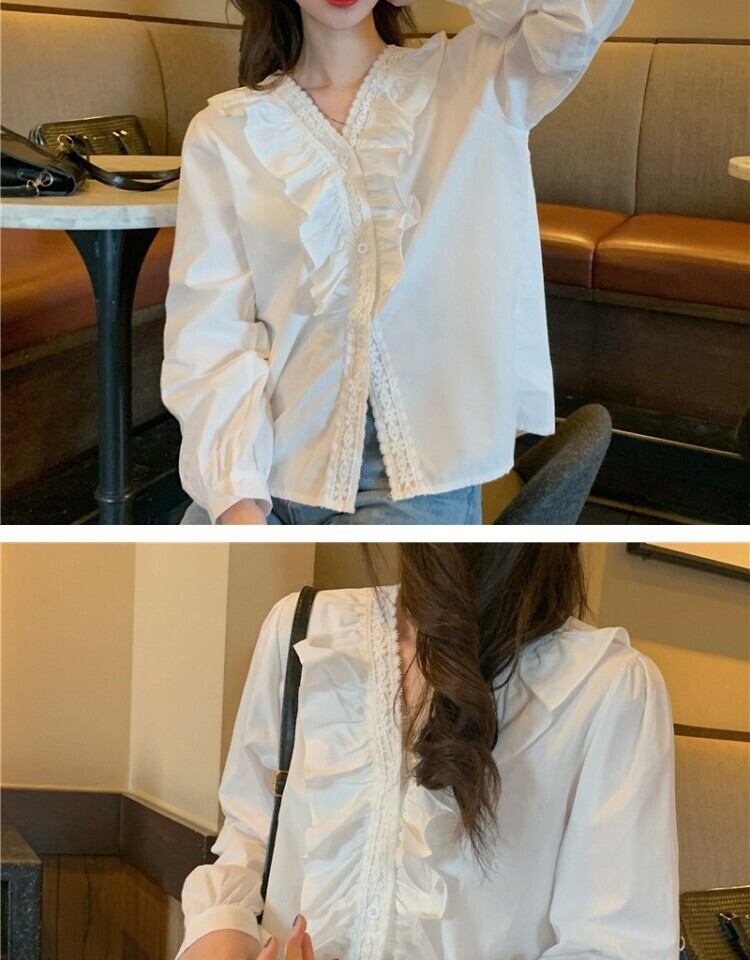 ホワイトシャツ オータムスタイルVネックトップス 秋物 萌量不足17865434055