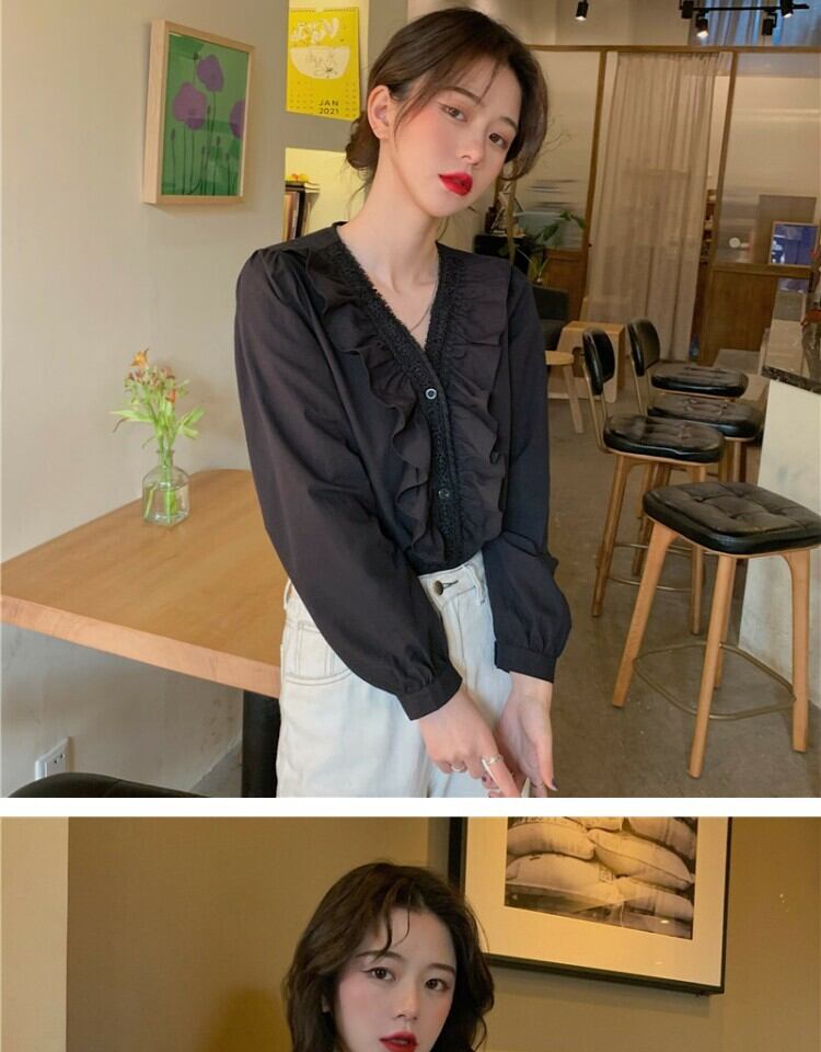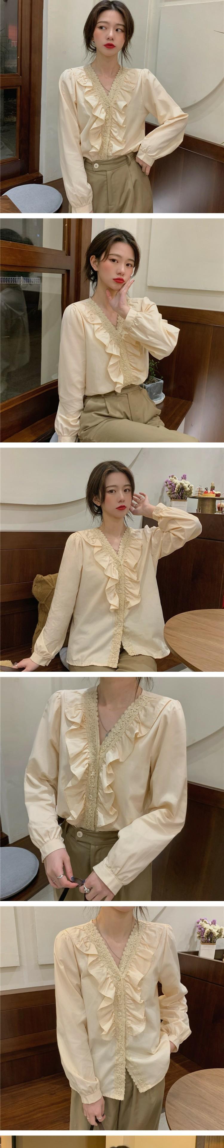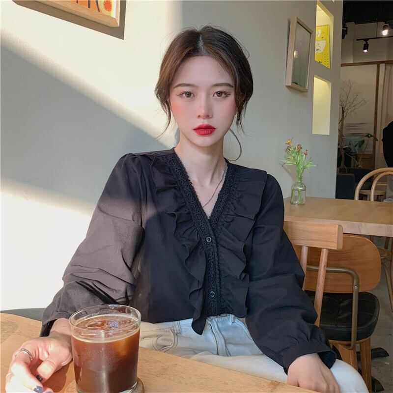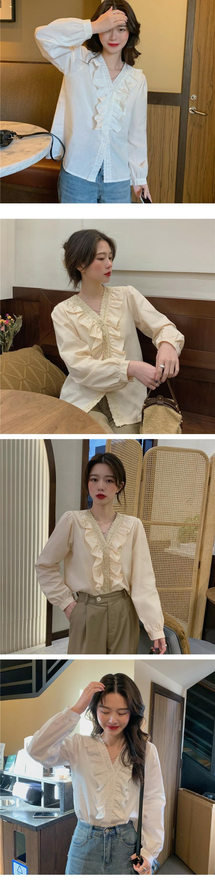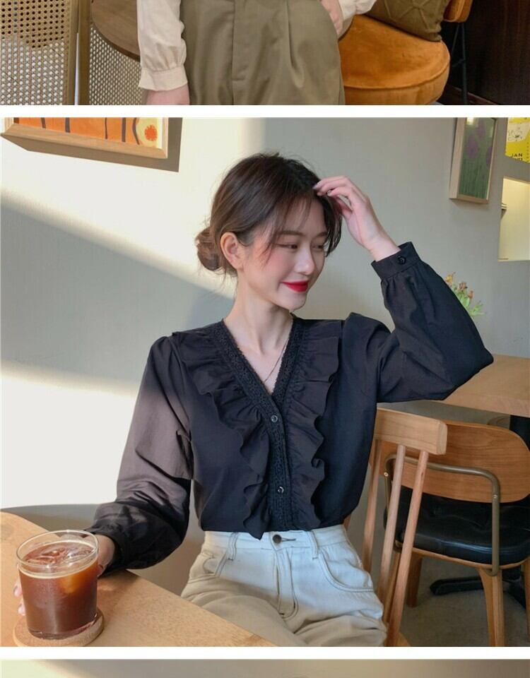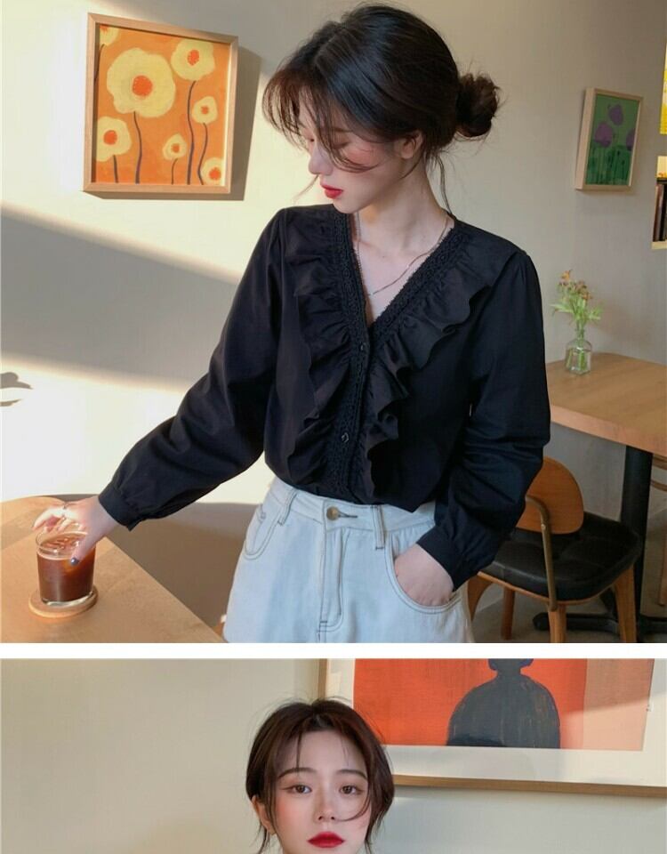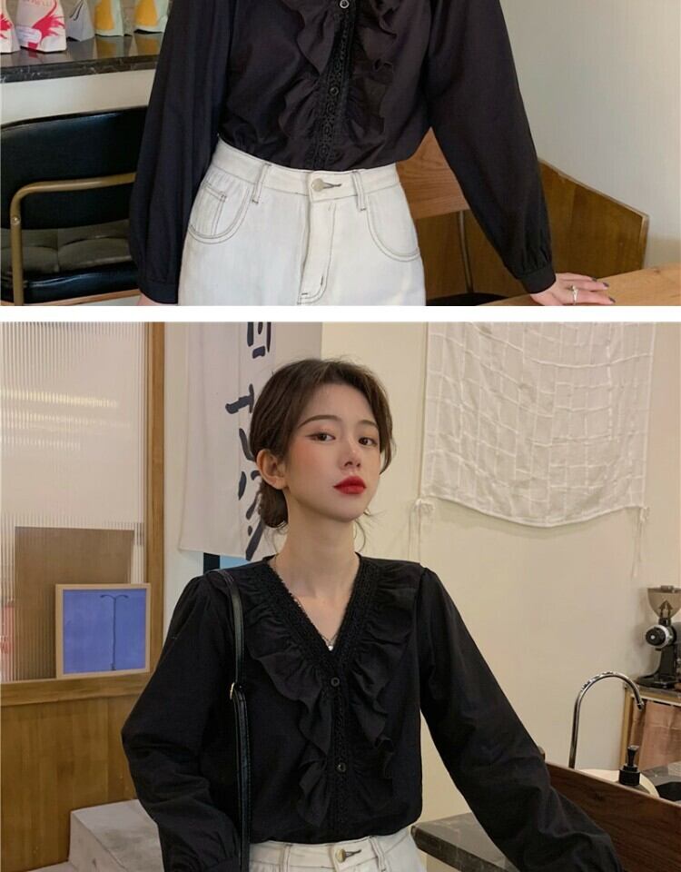 ホワイトシャツ オータムスタイルVネックトップス 秋物 萌量不足17865434055