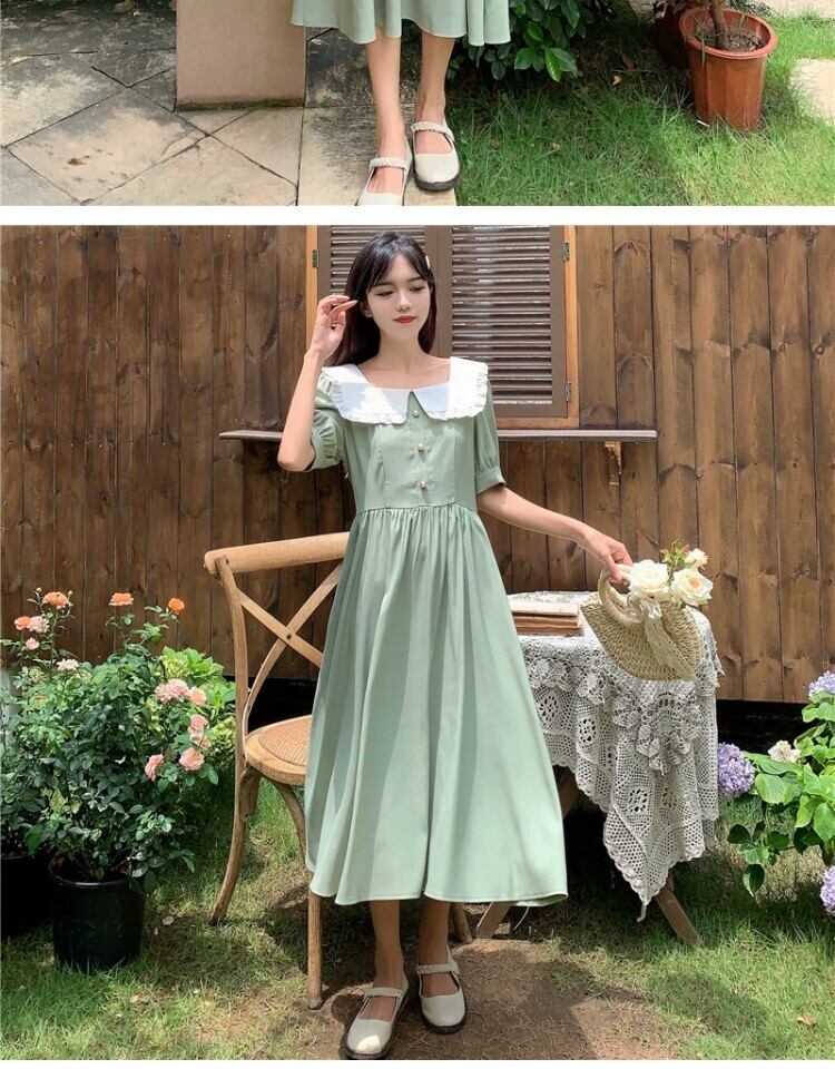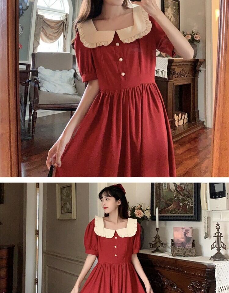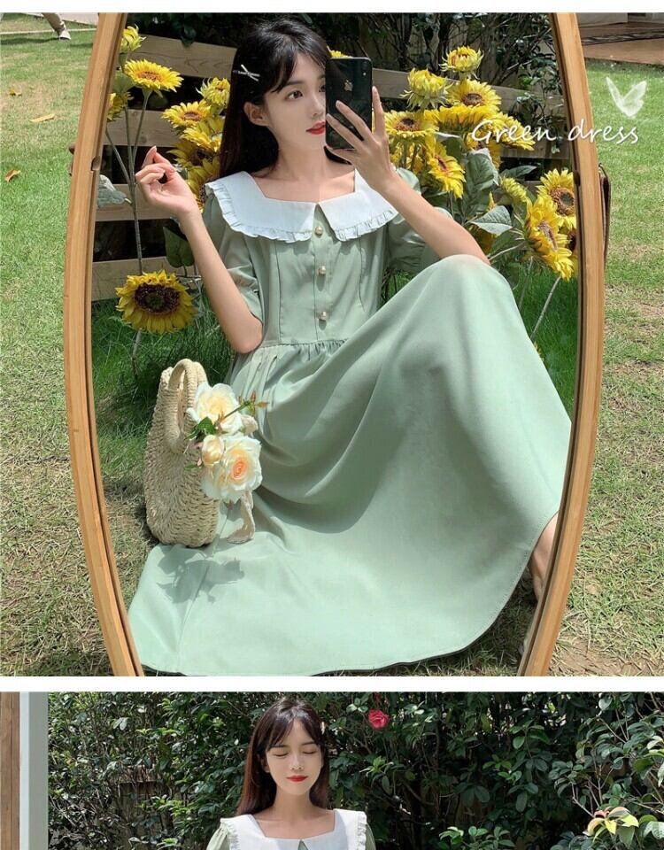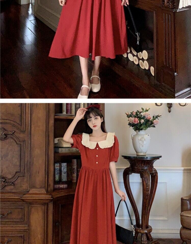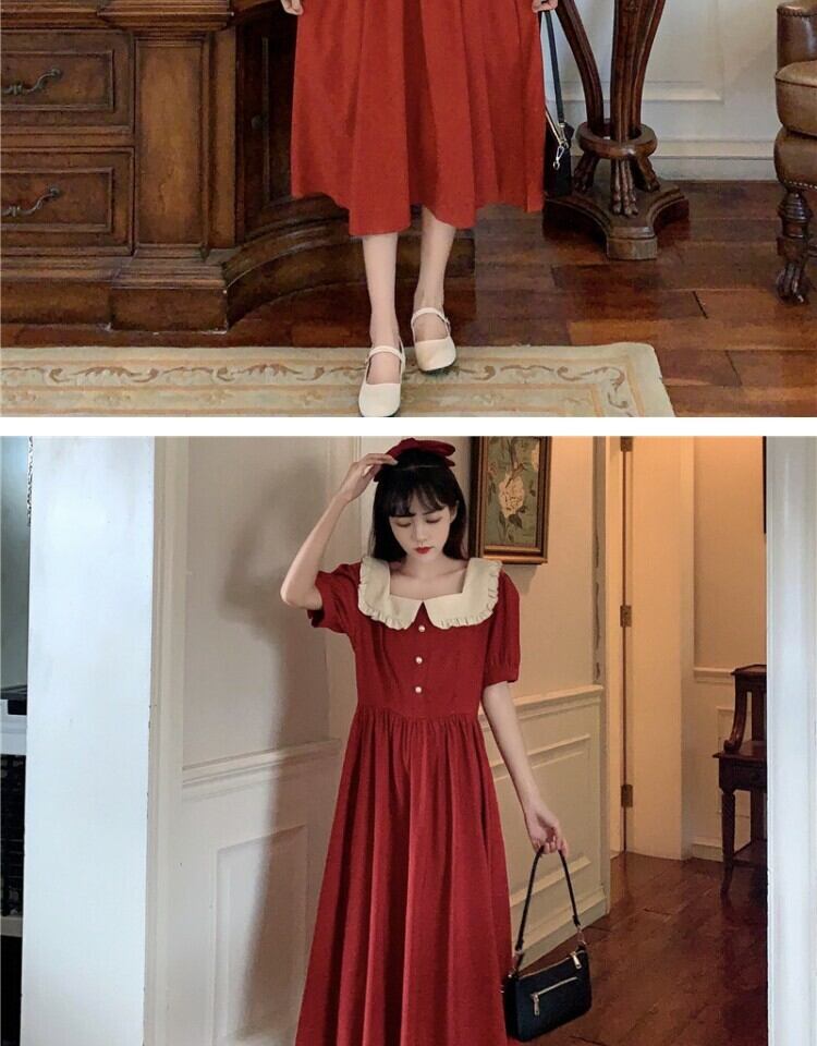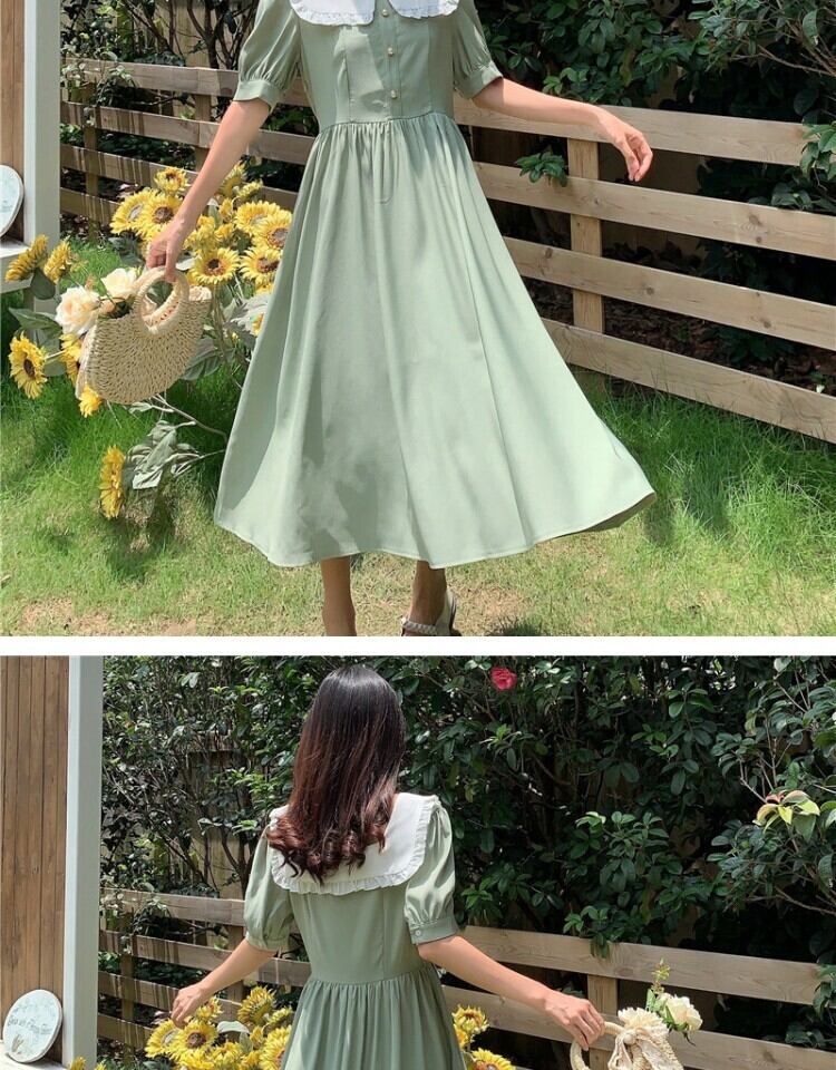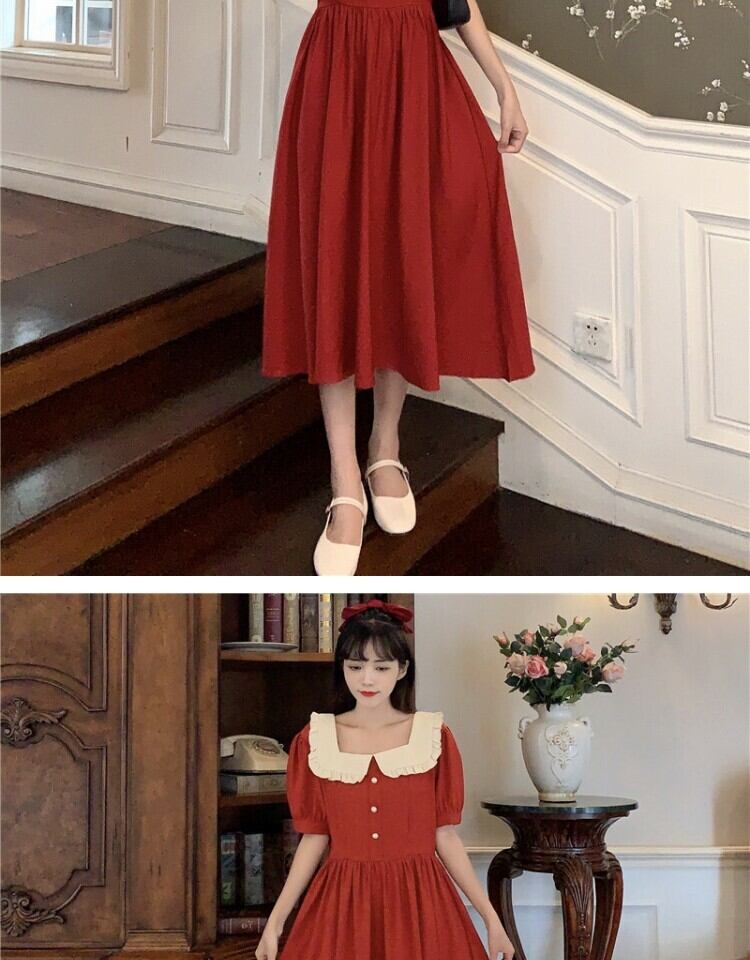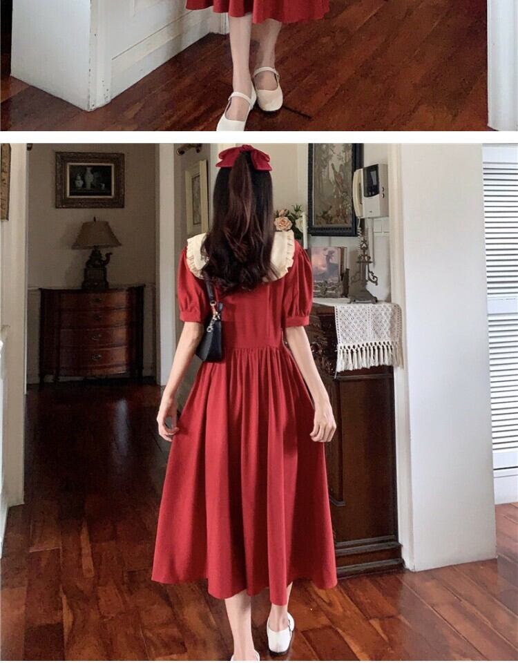 スタンダードドレス カラースタイルロングスカート サマースリーブウェスト レトロ レース 夏物 スクウェア 萌量不足91741296380