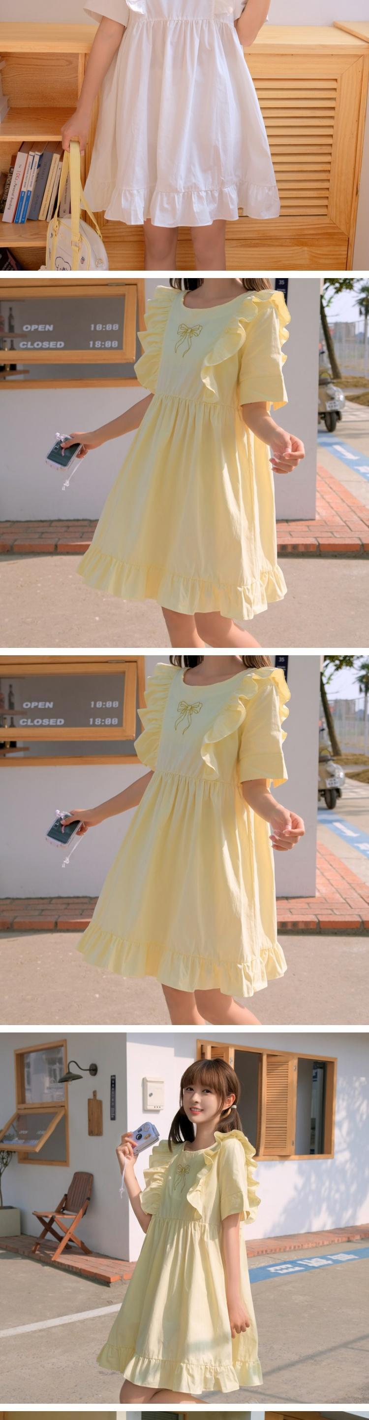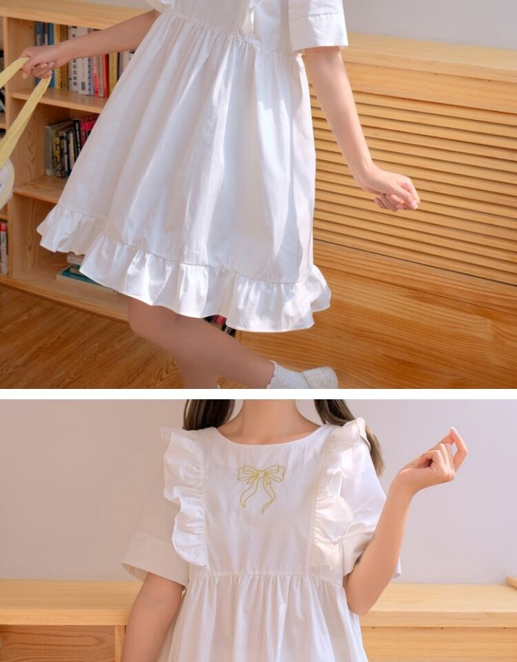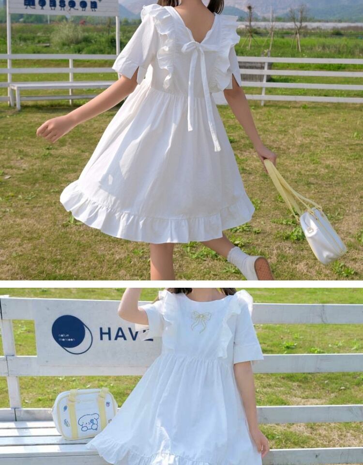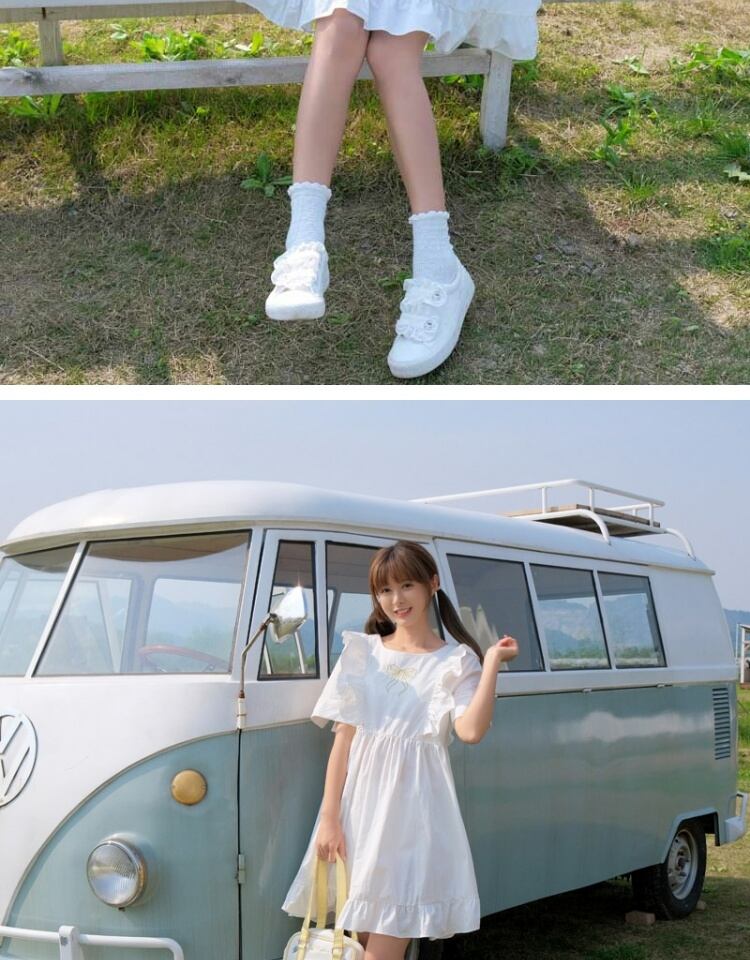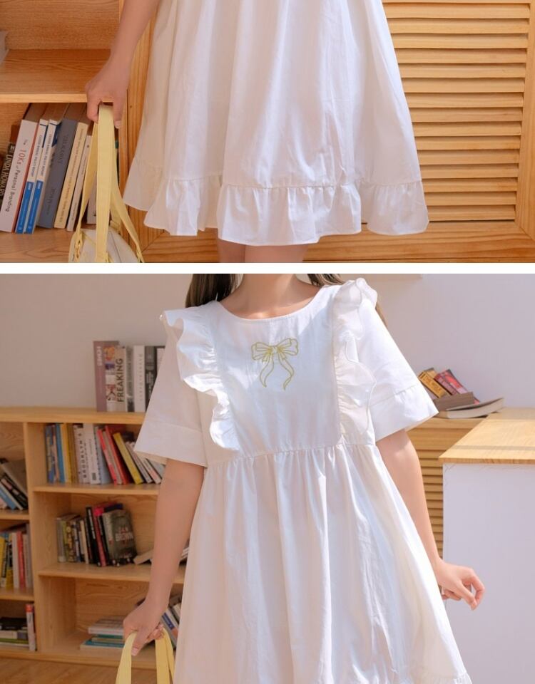 Flowerデザイン 刺繍ホワイトドレス サマースカート ルーズ薄手 大人ガーリー スウィート キュート カジュアル 夏物 フラワーデザイン 萌量不足22079130306