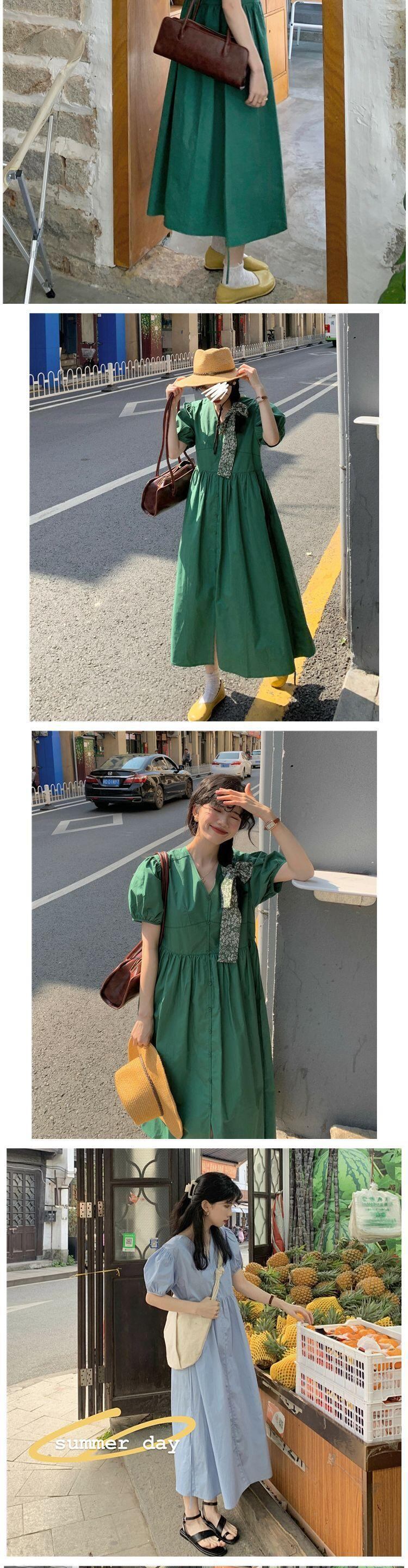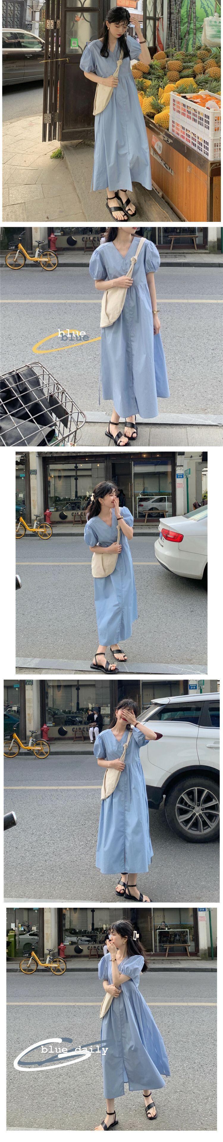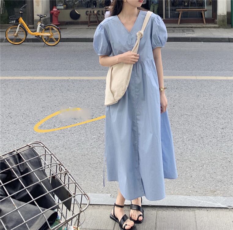スタイルスリーブドレス サマーVネックルーズスリムスカート 夏物 萌量不足86933942819
