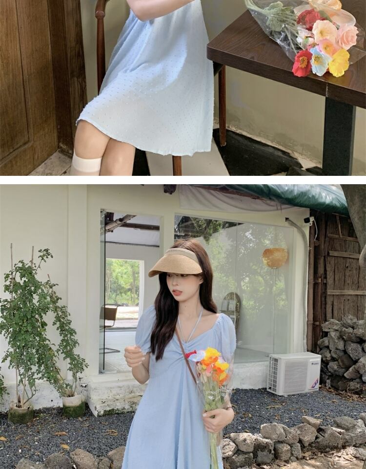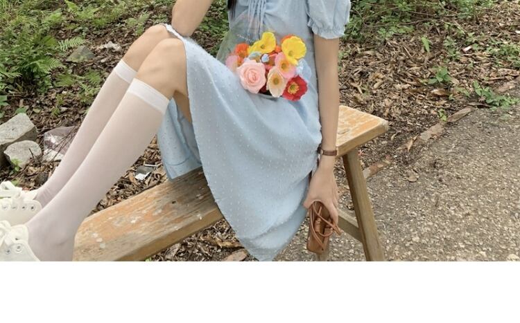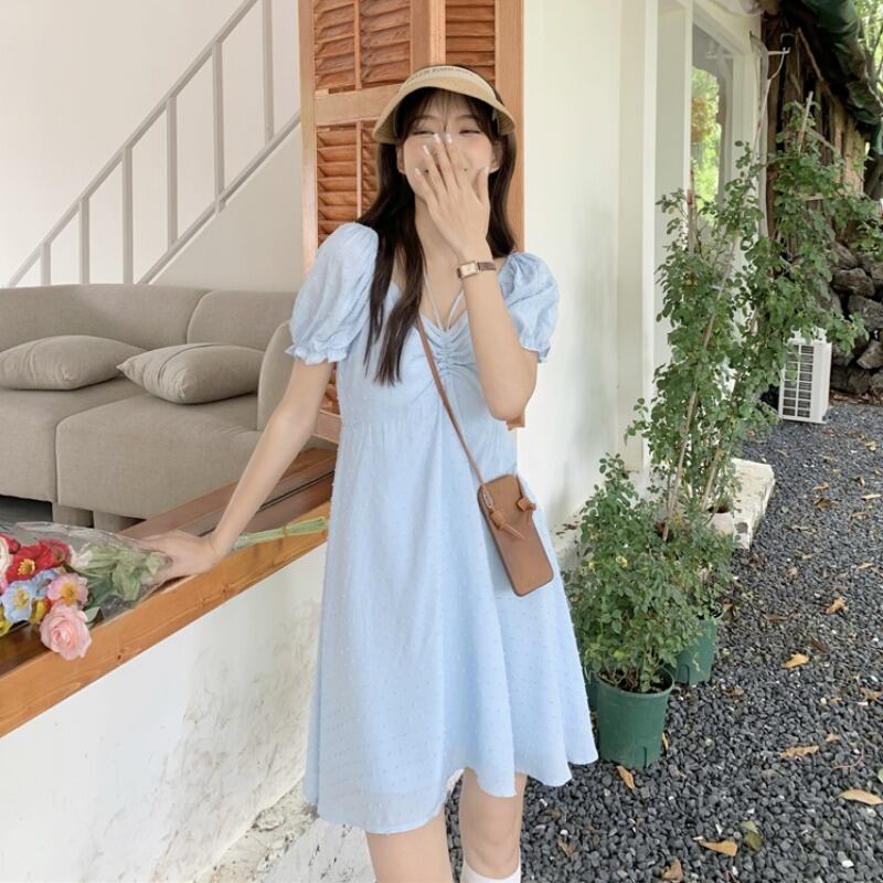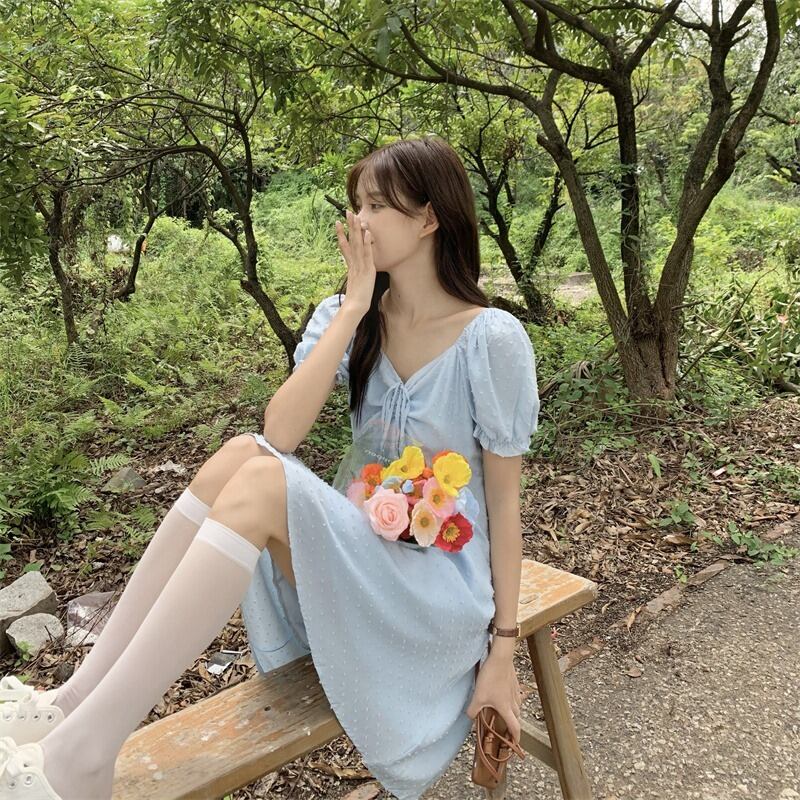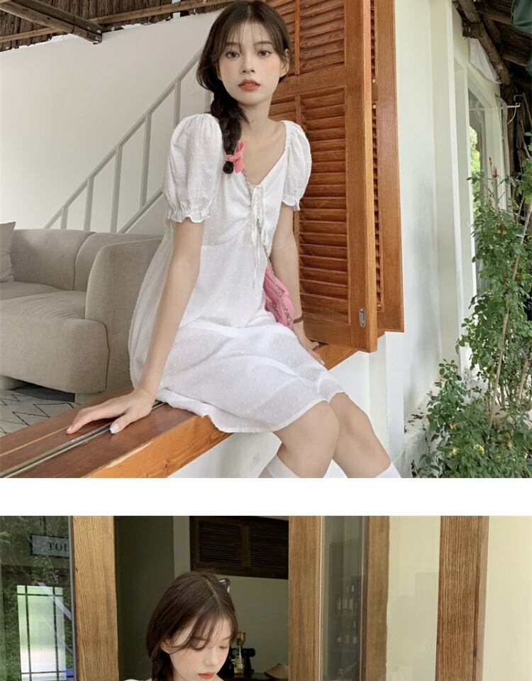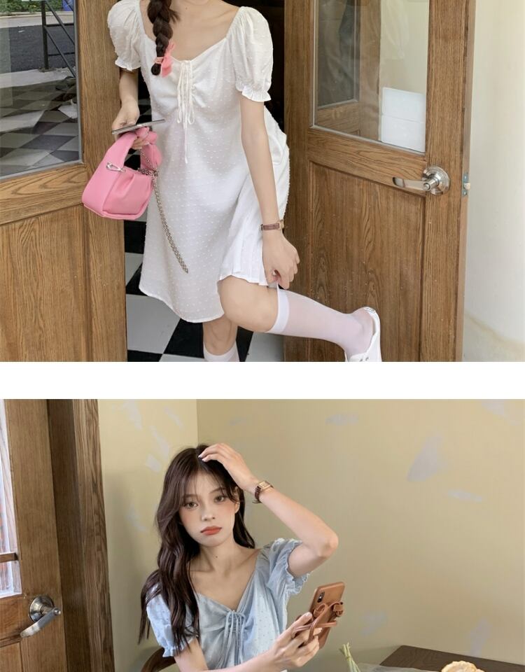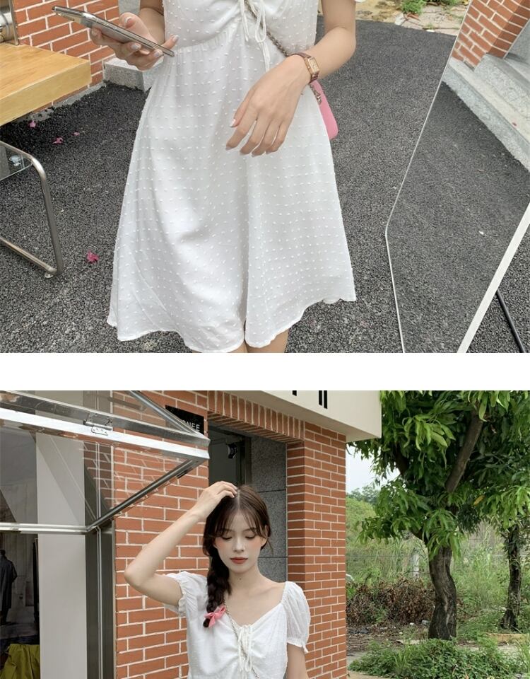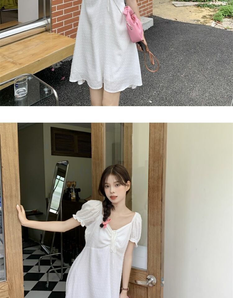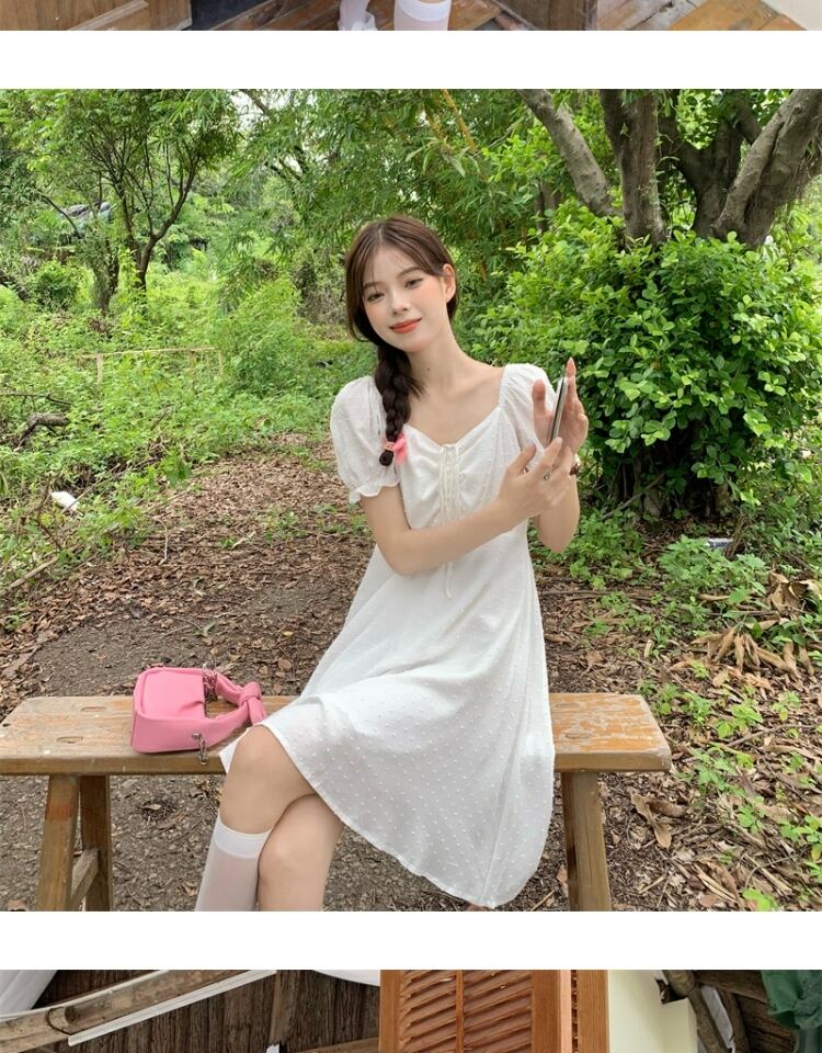 ホワイトスカート サマーシフォンレースAラインスリーブドレス ウェストショート 大人ガーリー スウィート キュート カジュアル 夏物 スクウェア 萌量不足52016993398