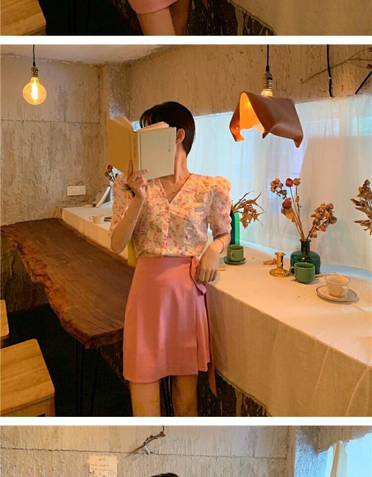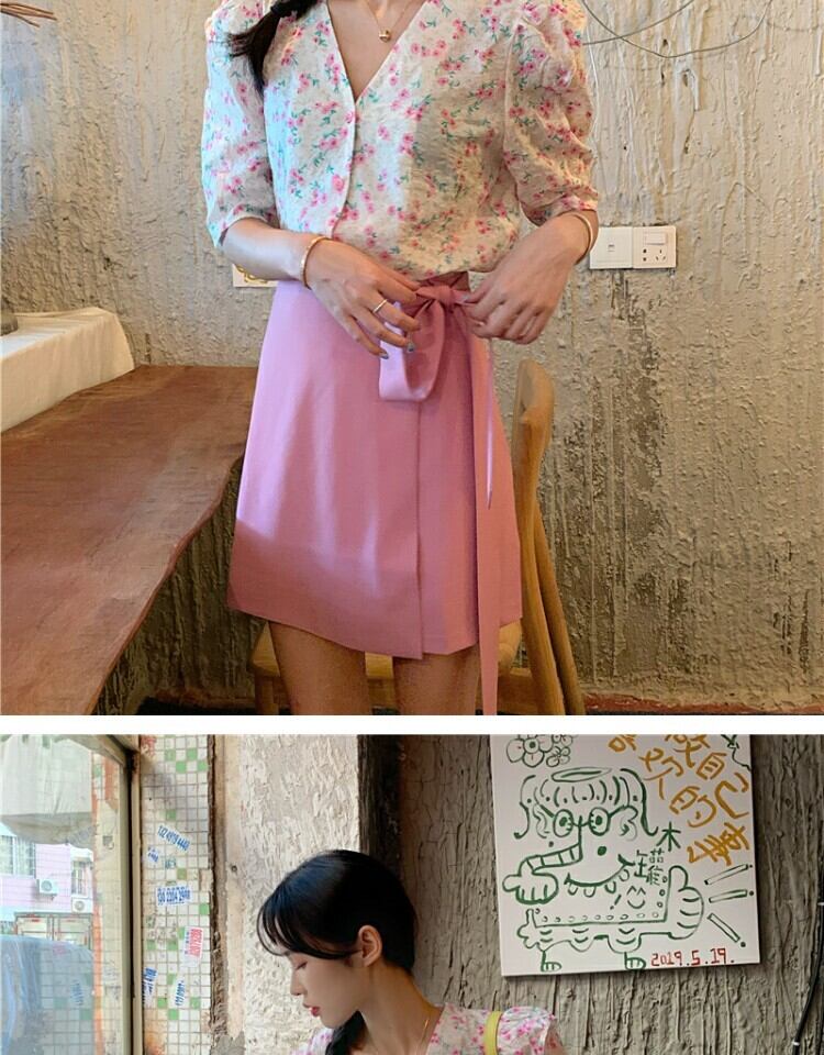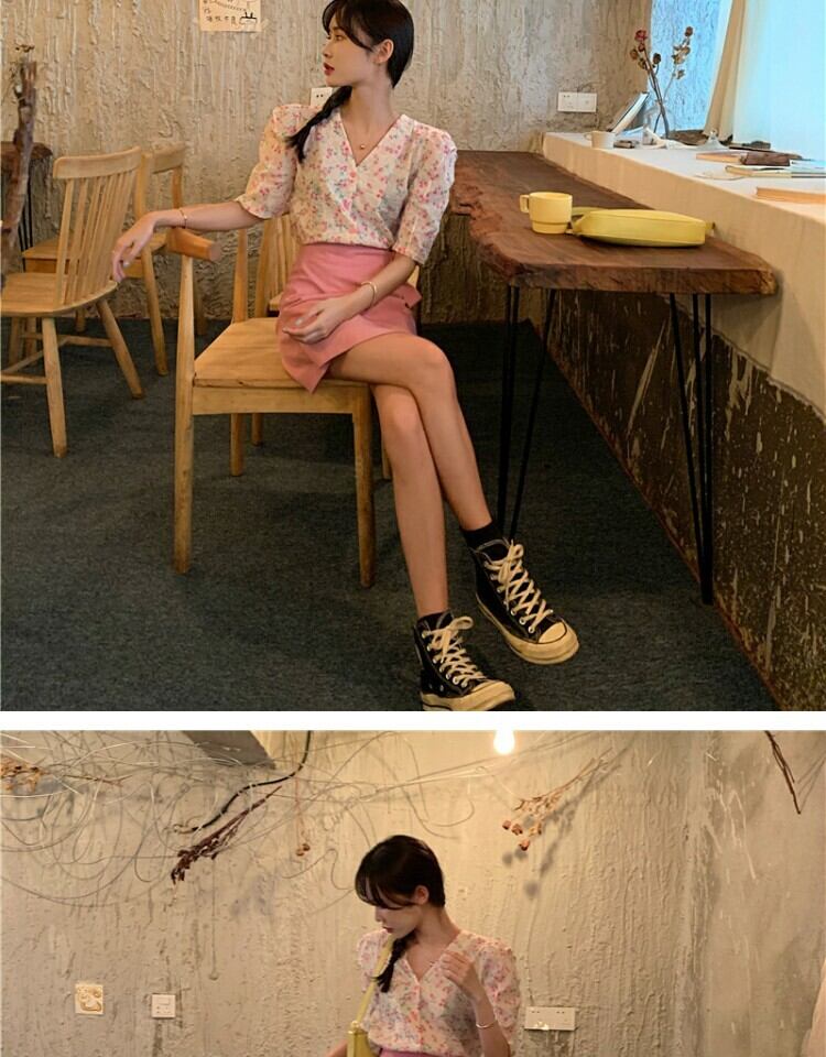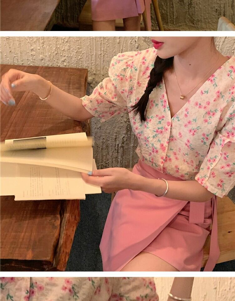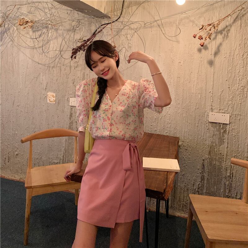 フローラルVネックスリーブシャツ レディースサマースタイルブラウス 夏物 花柄 萌量不足74427067192