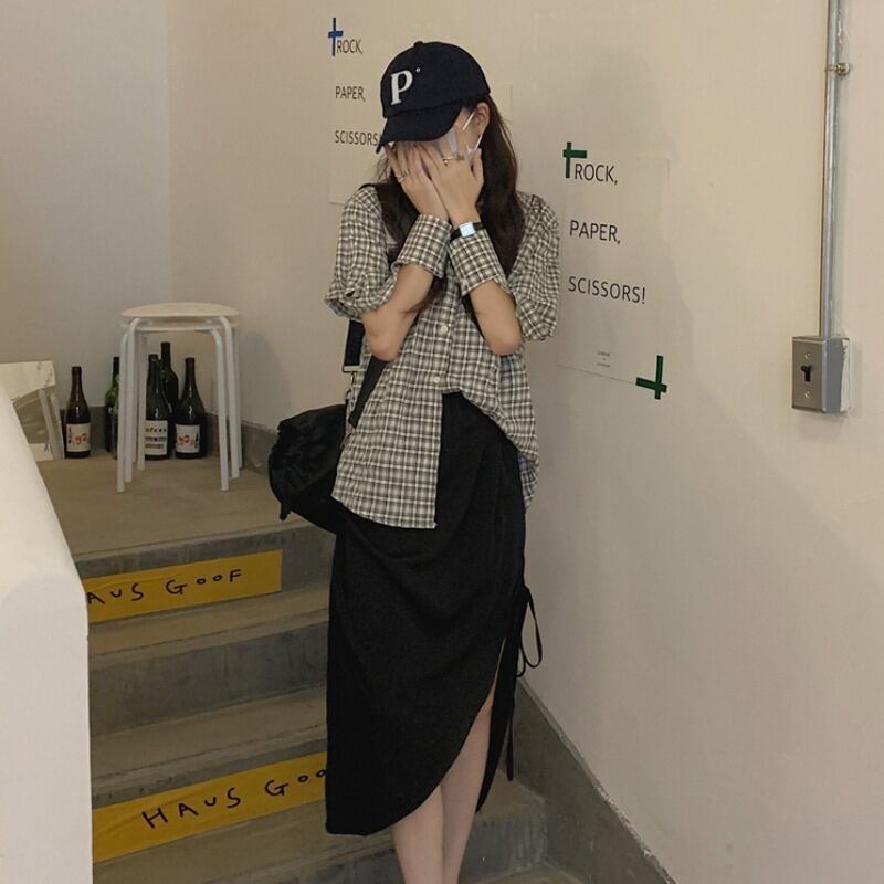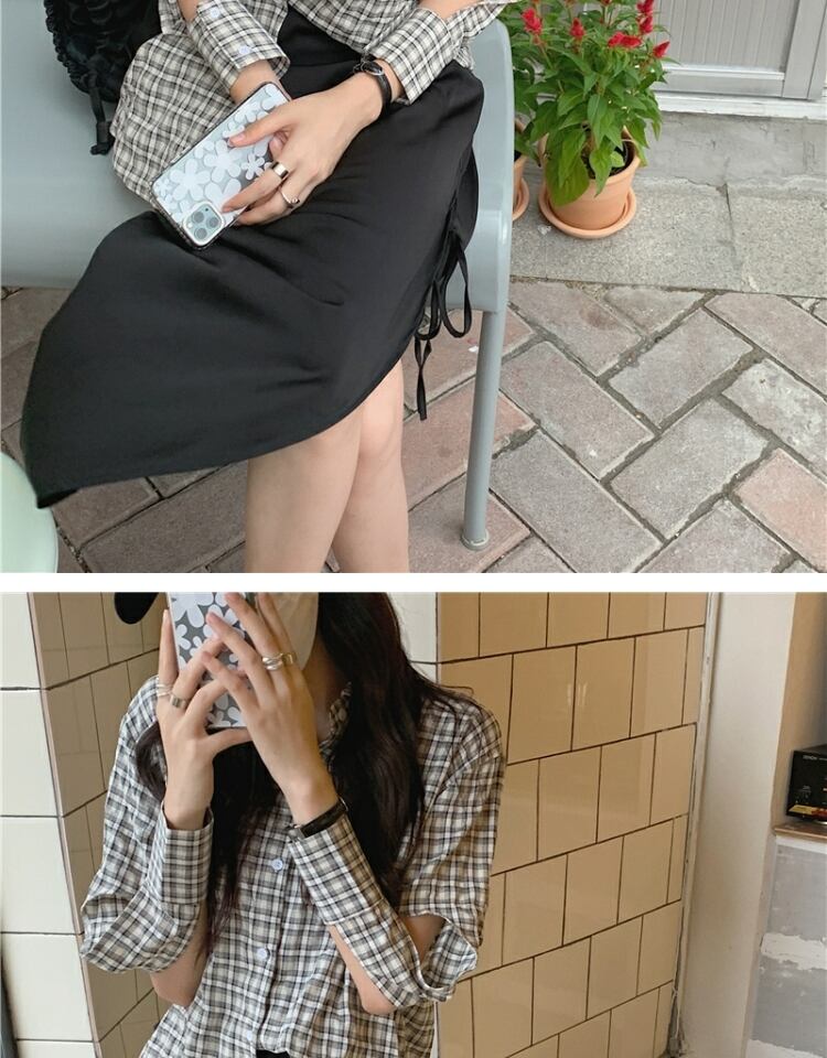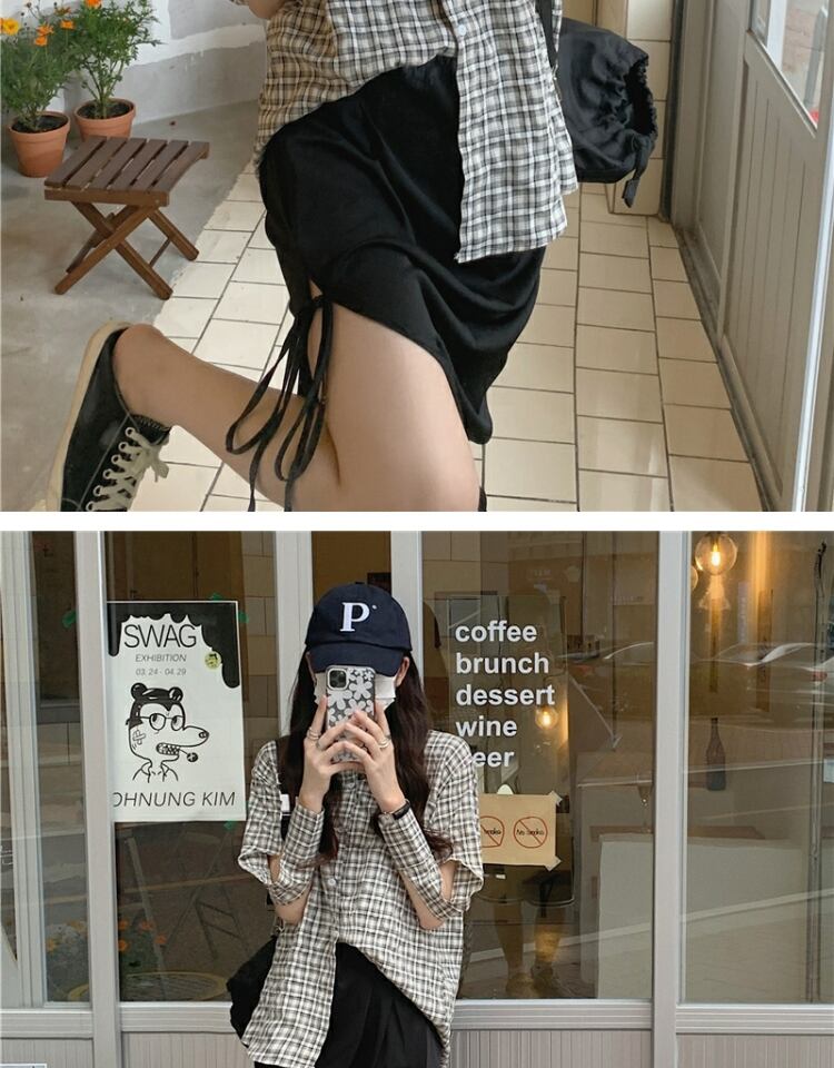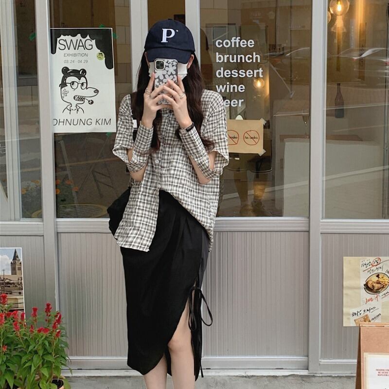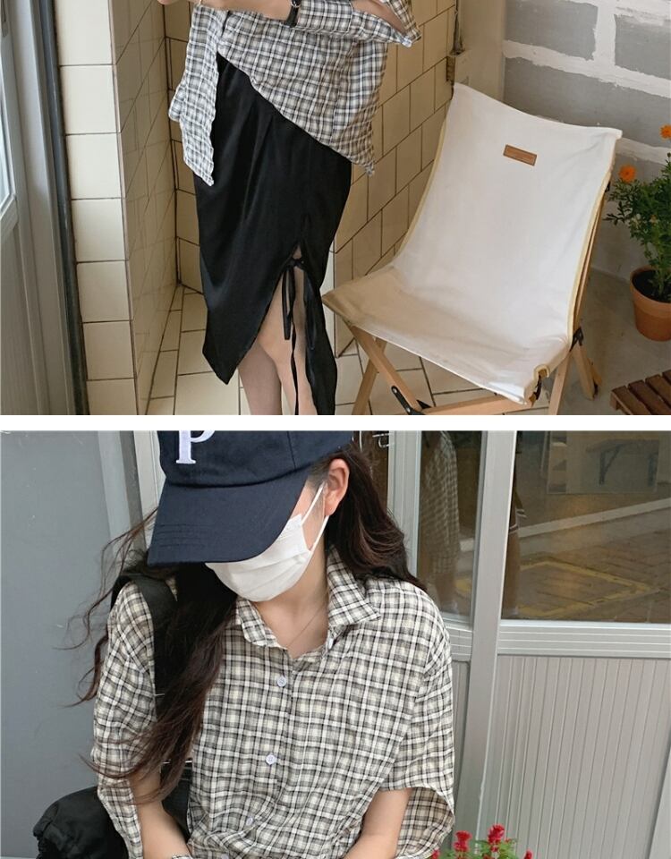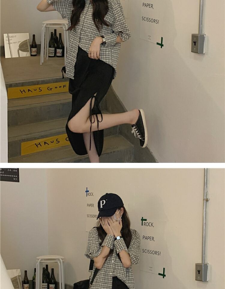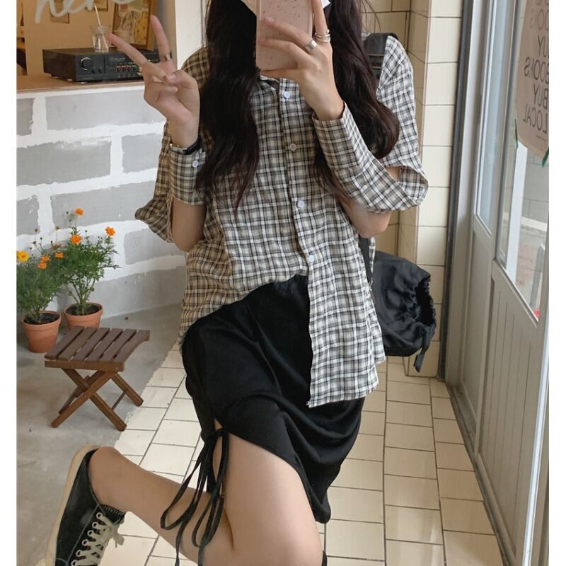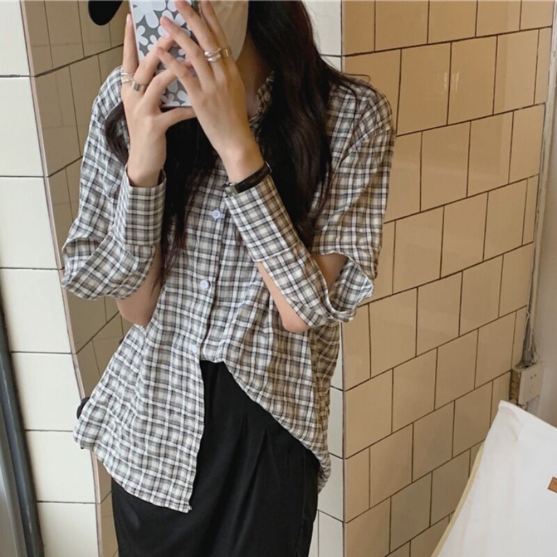 トップス 格子柄シャツ サマー薄手スタンダード ロング レトロ 夏物 萌量不足18969903555