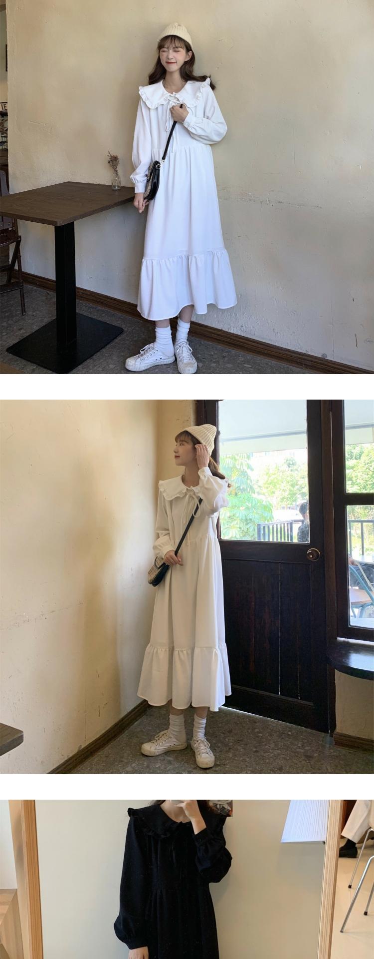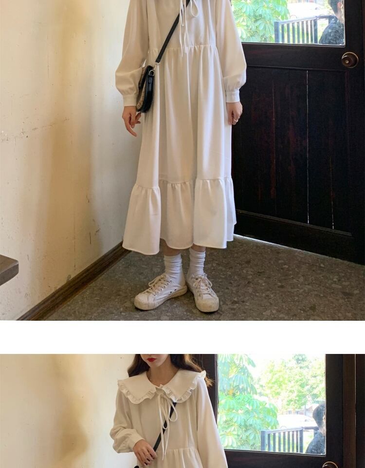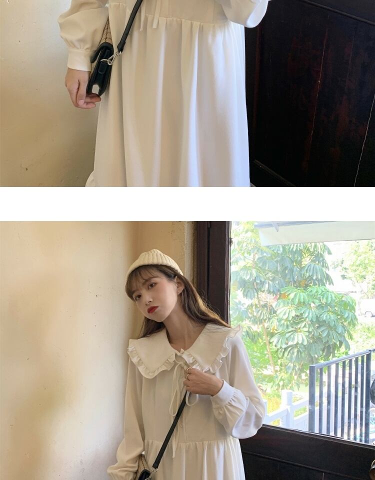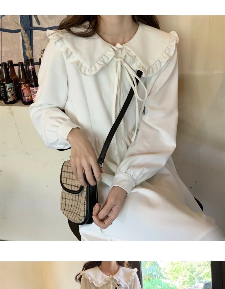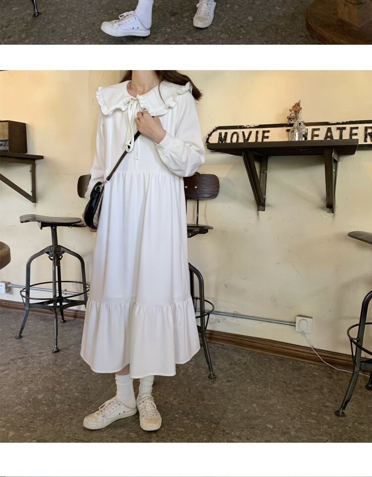 オータムスタイルレースカラーホワイトロングドレス スカート 秋物 萌量不足65861828216