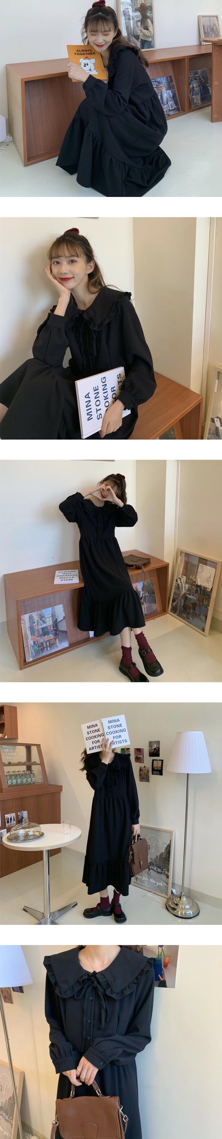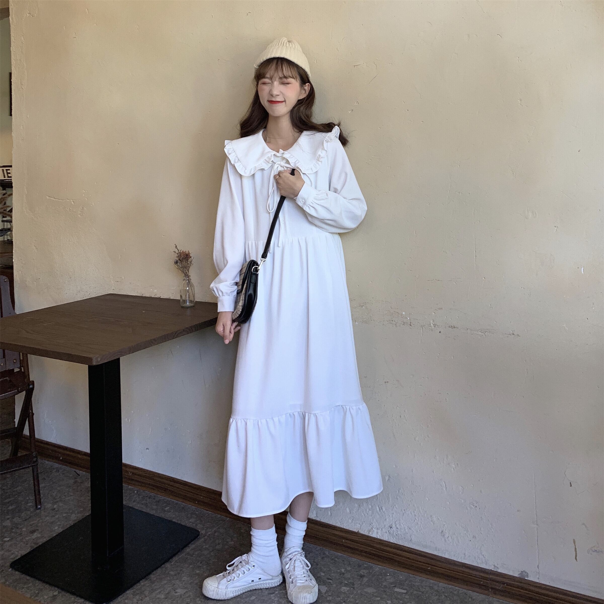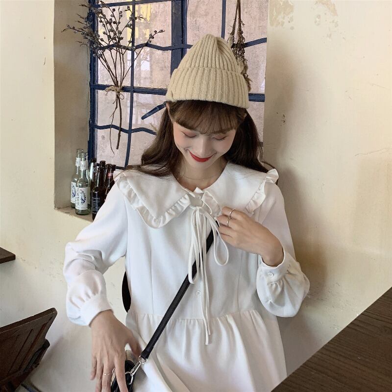 オータムスタイルレースカラーホワイトロングドレス スカート 秋物 萌量不足65861828216