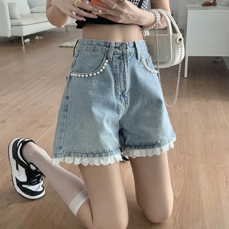 レースハイウェストウェストショーツ サマー薄手パンツ ルーズ 大人ガーリー スウィート キュート カジュアル 夏物 ブルマー 萌量不足69932519453