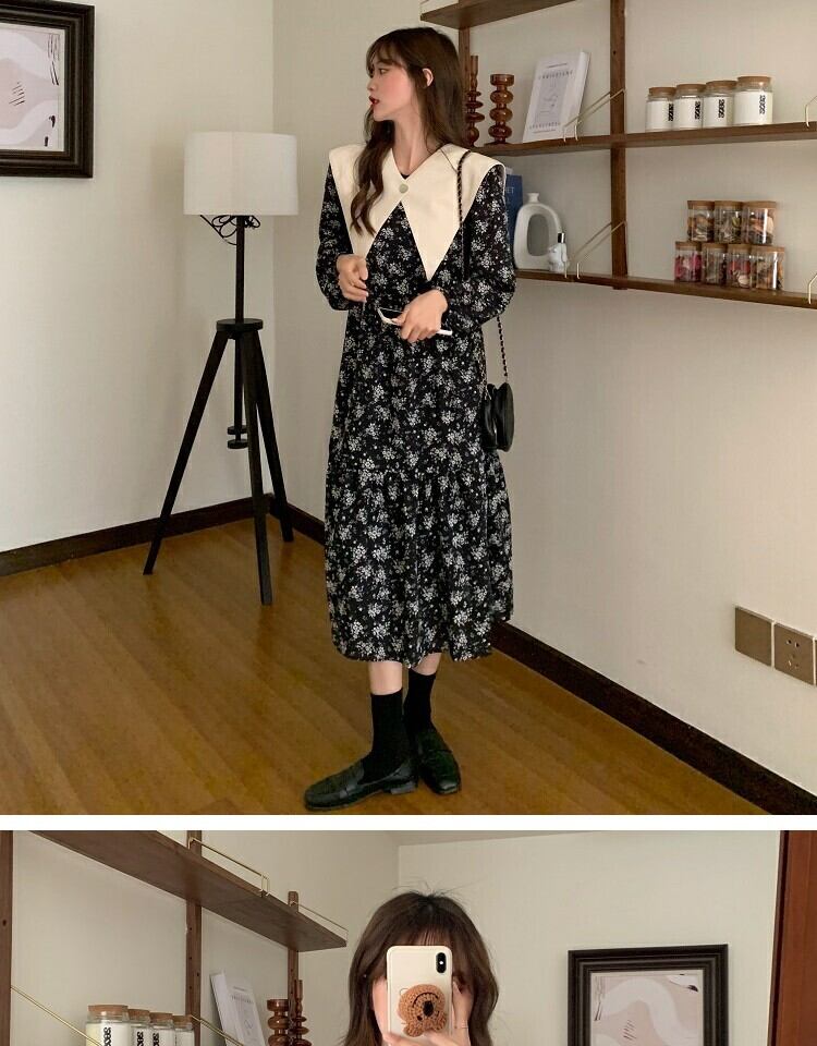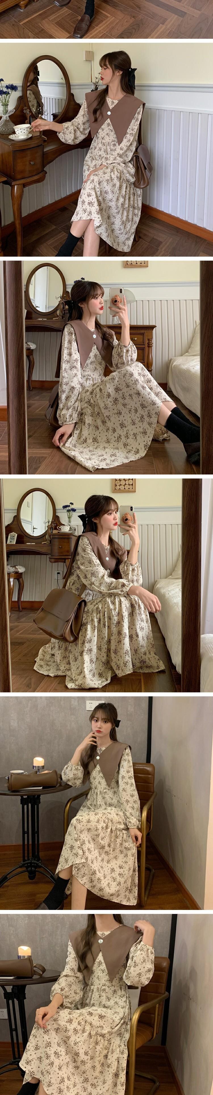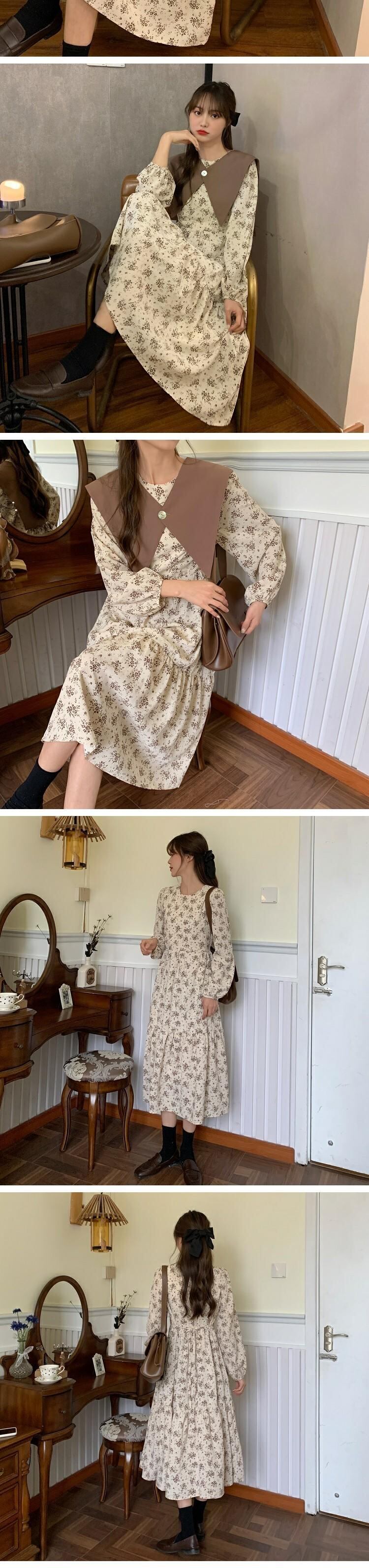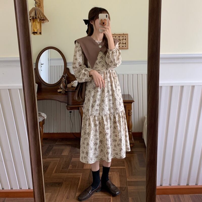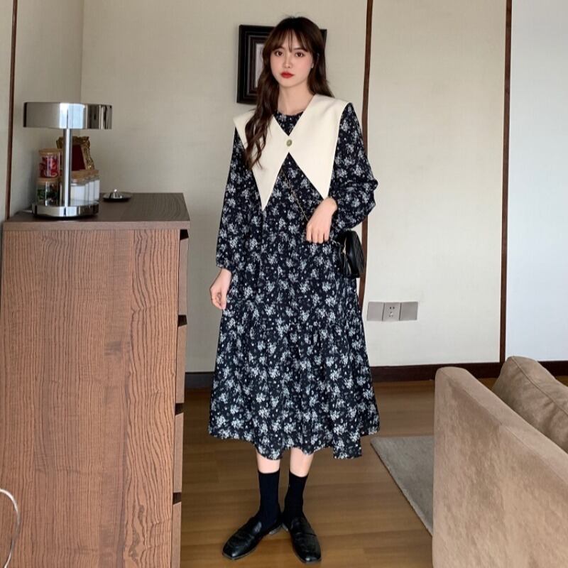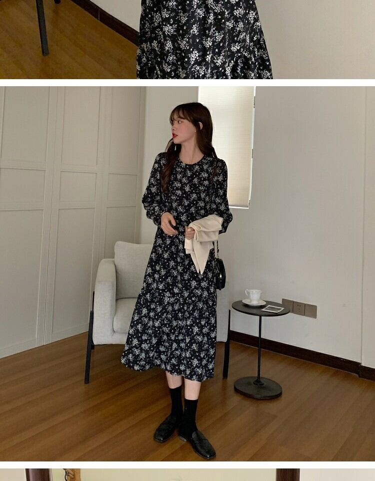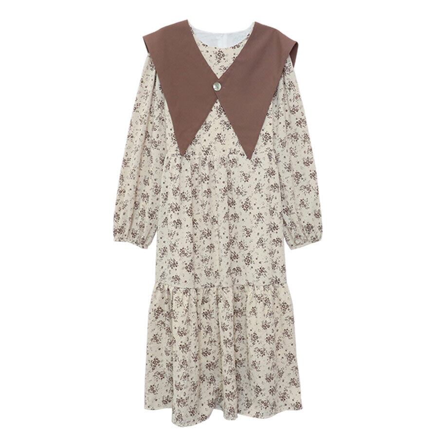 オータムウェストAラインフローラルドレス ロング 秋物 花柄 萌量不足62764407012