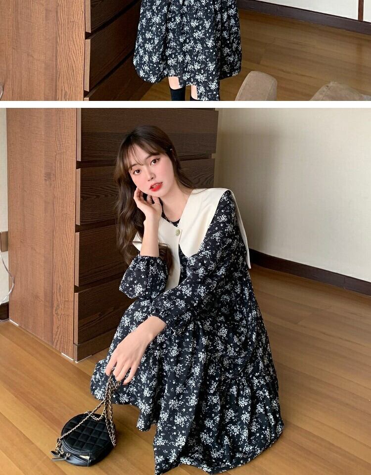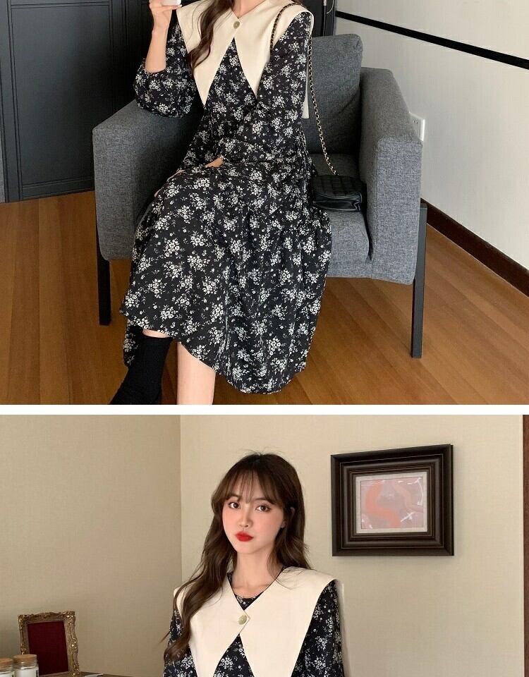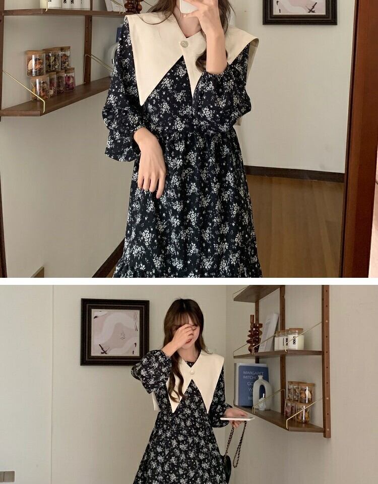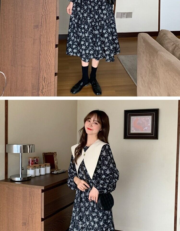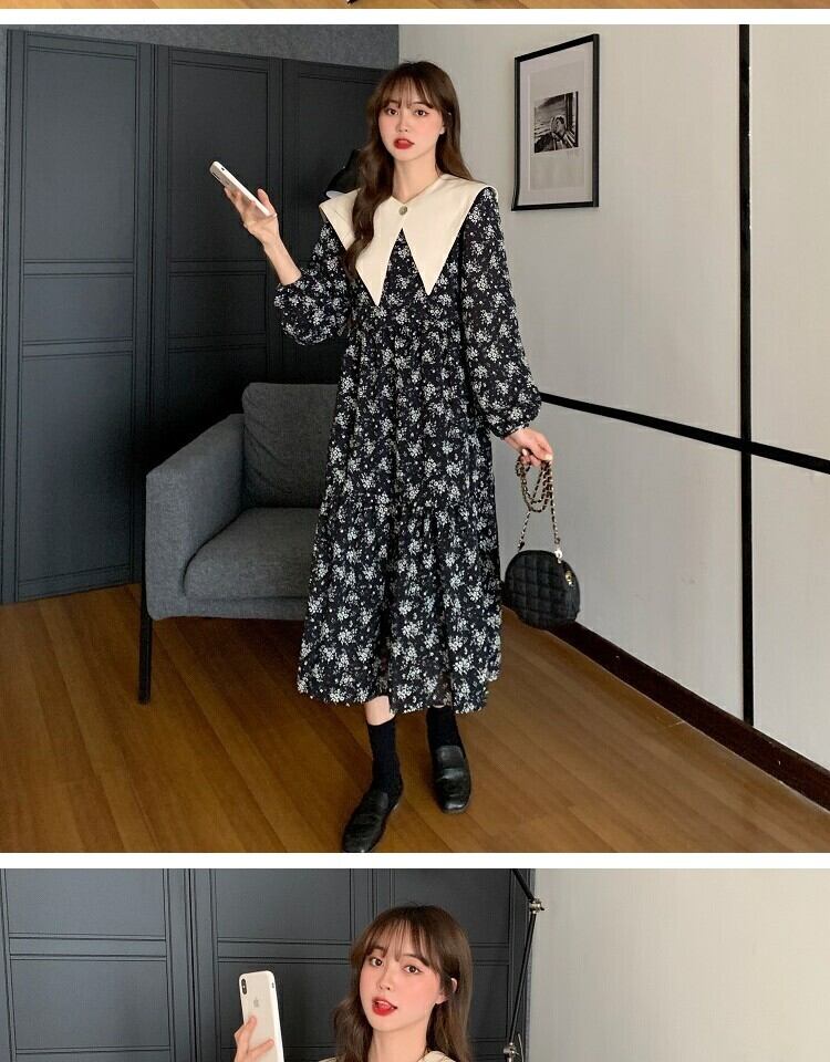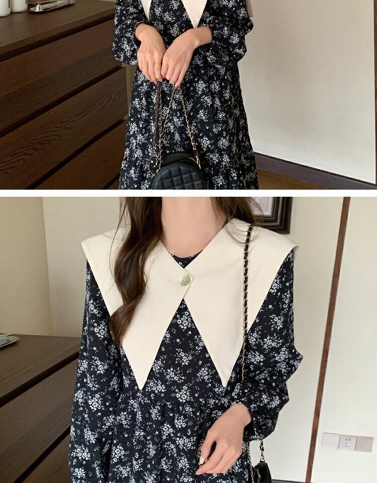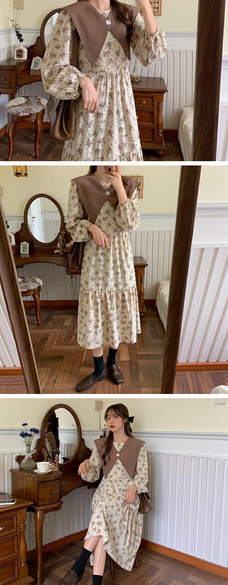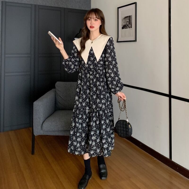 オータムウェストAラインフローラルドレス ロング 秋物 花柄 萌量不足62764407012