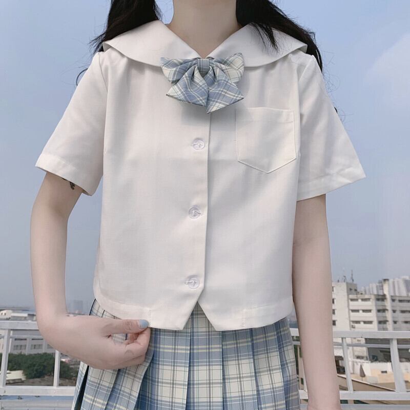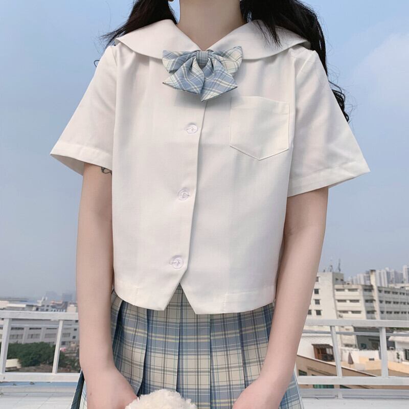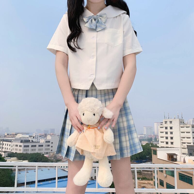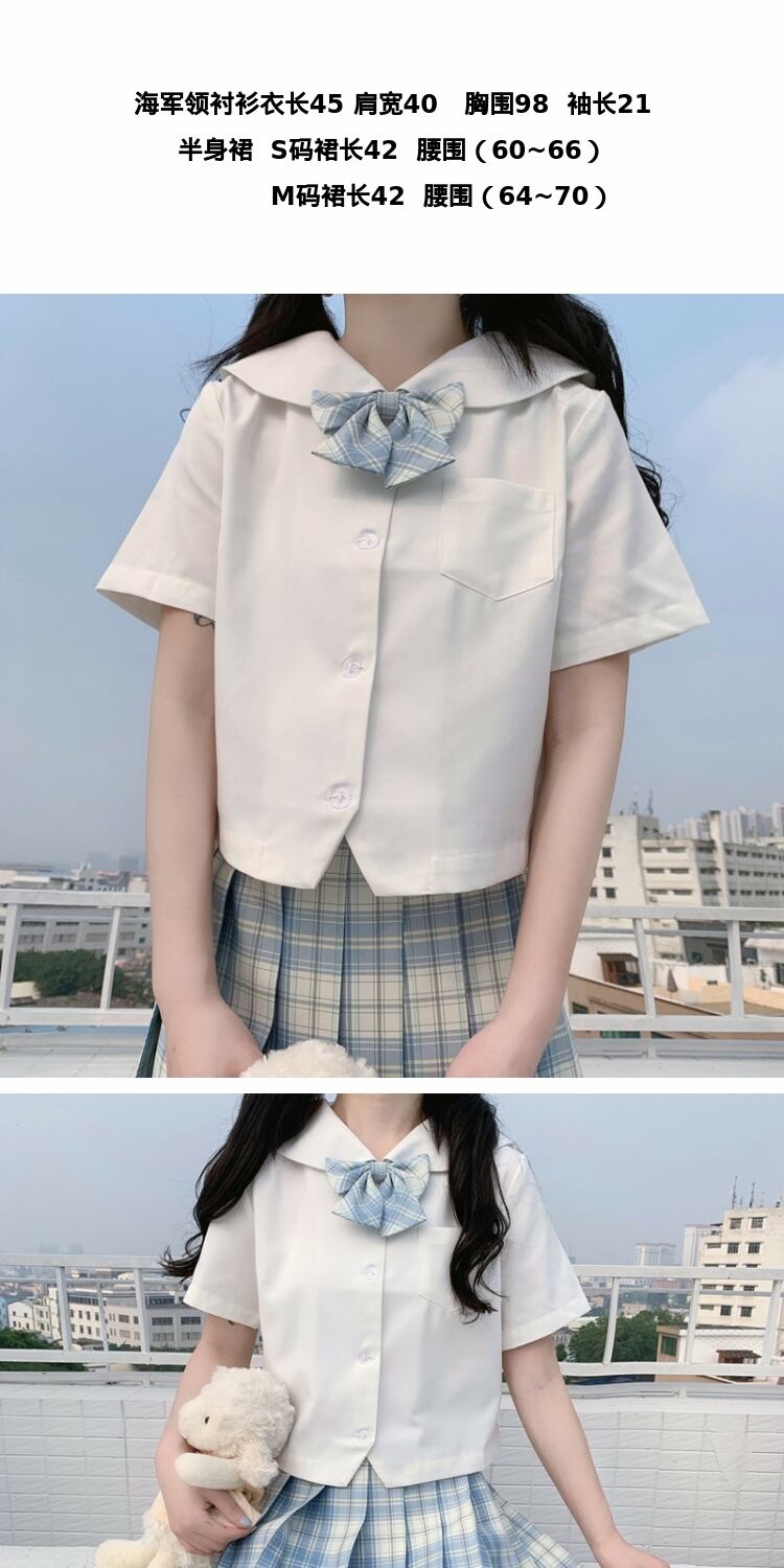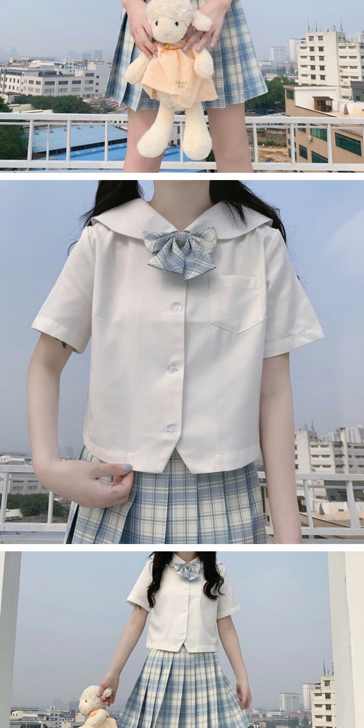 色:チェック柄スカート(シングルピース),蝶ネクタイ付きネイビーシャツ(ワンピース)