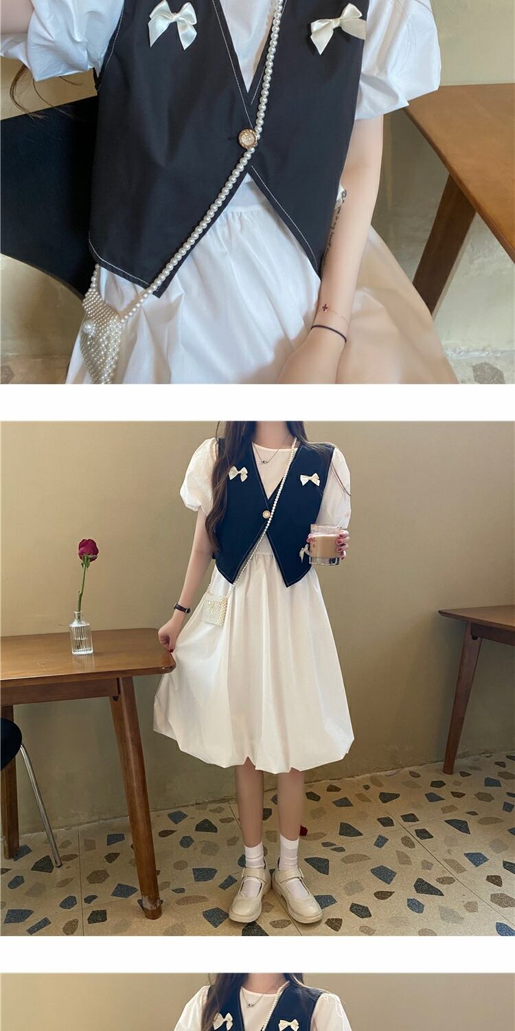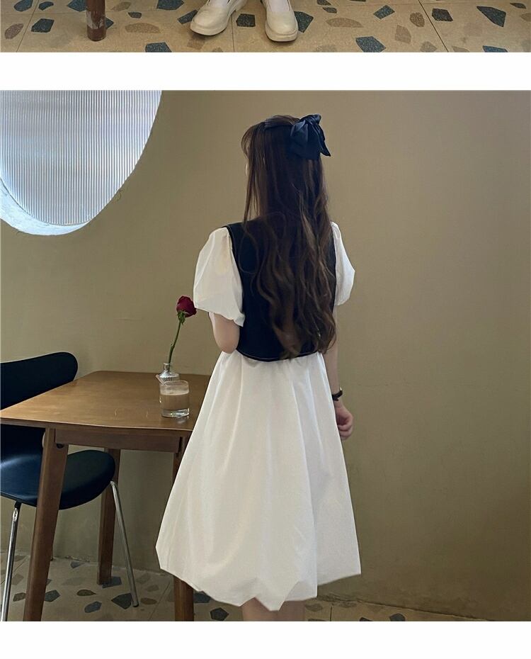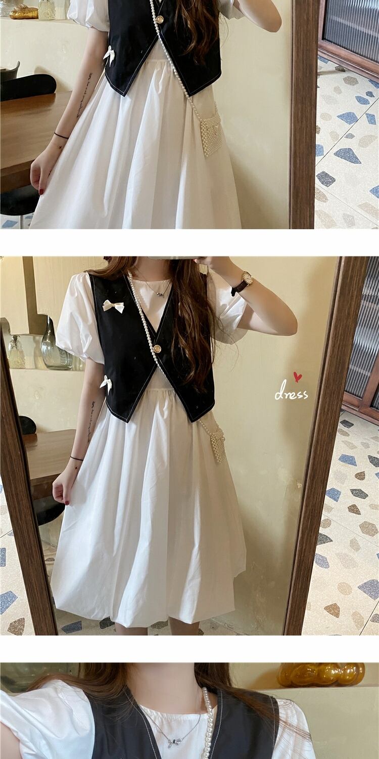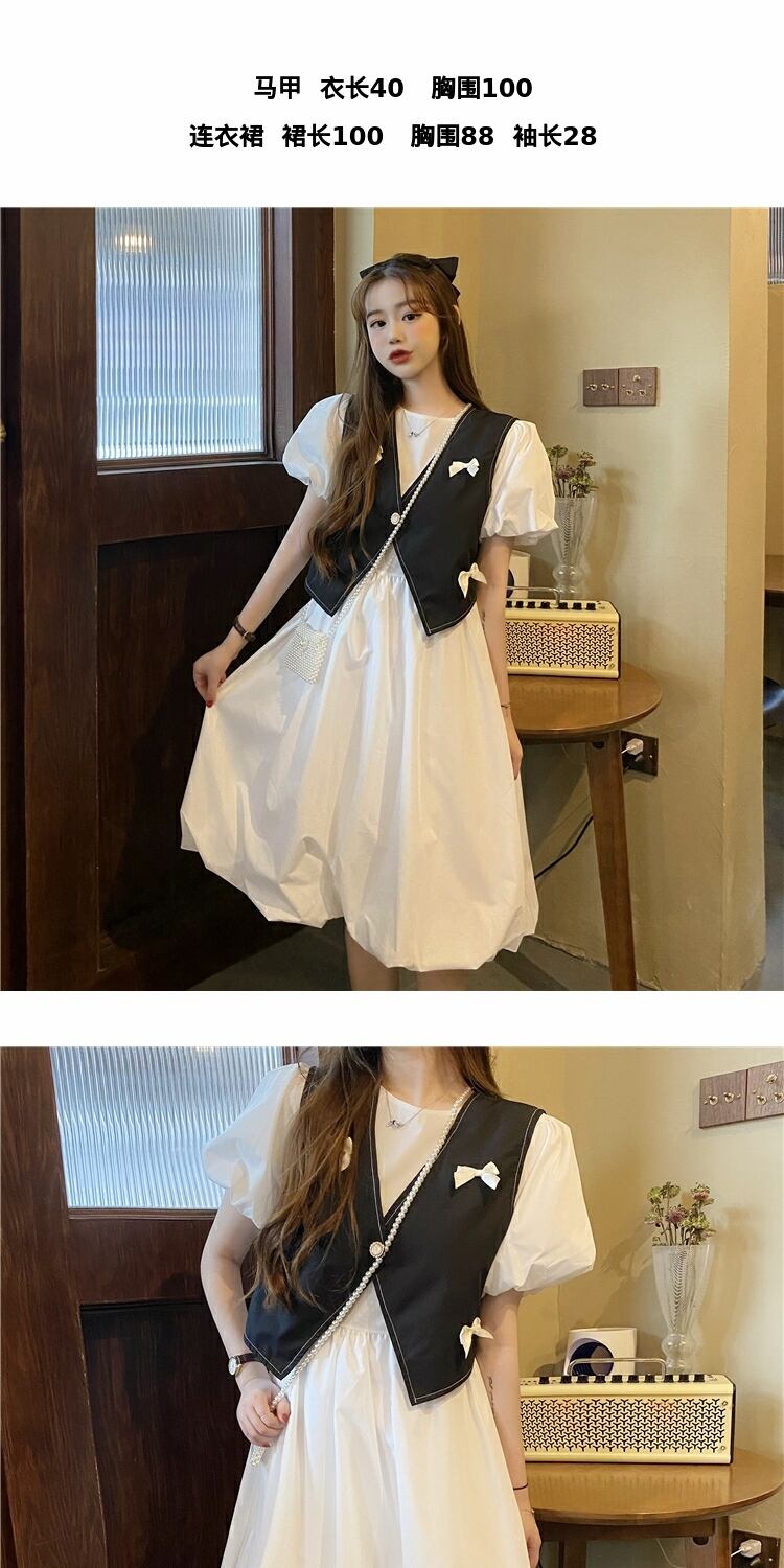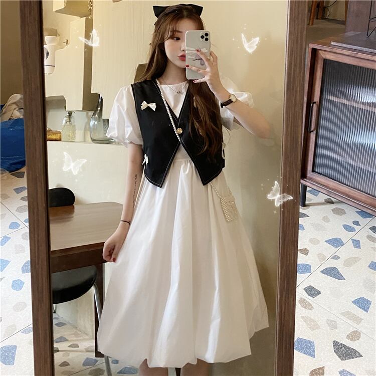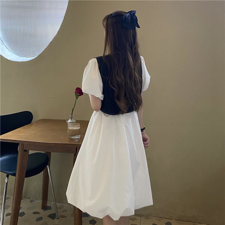 色:白いワンピースのワンピース,ブラックベストワンピース