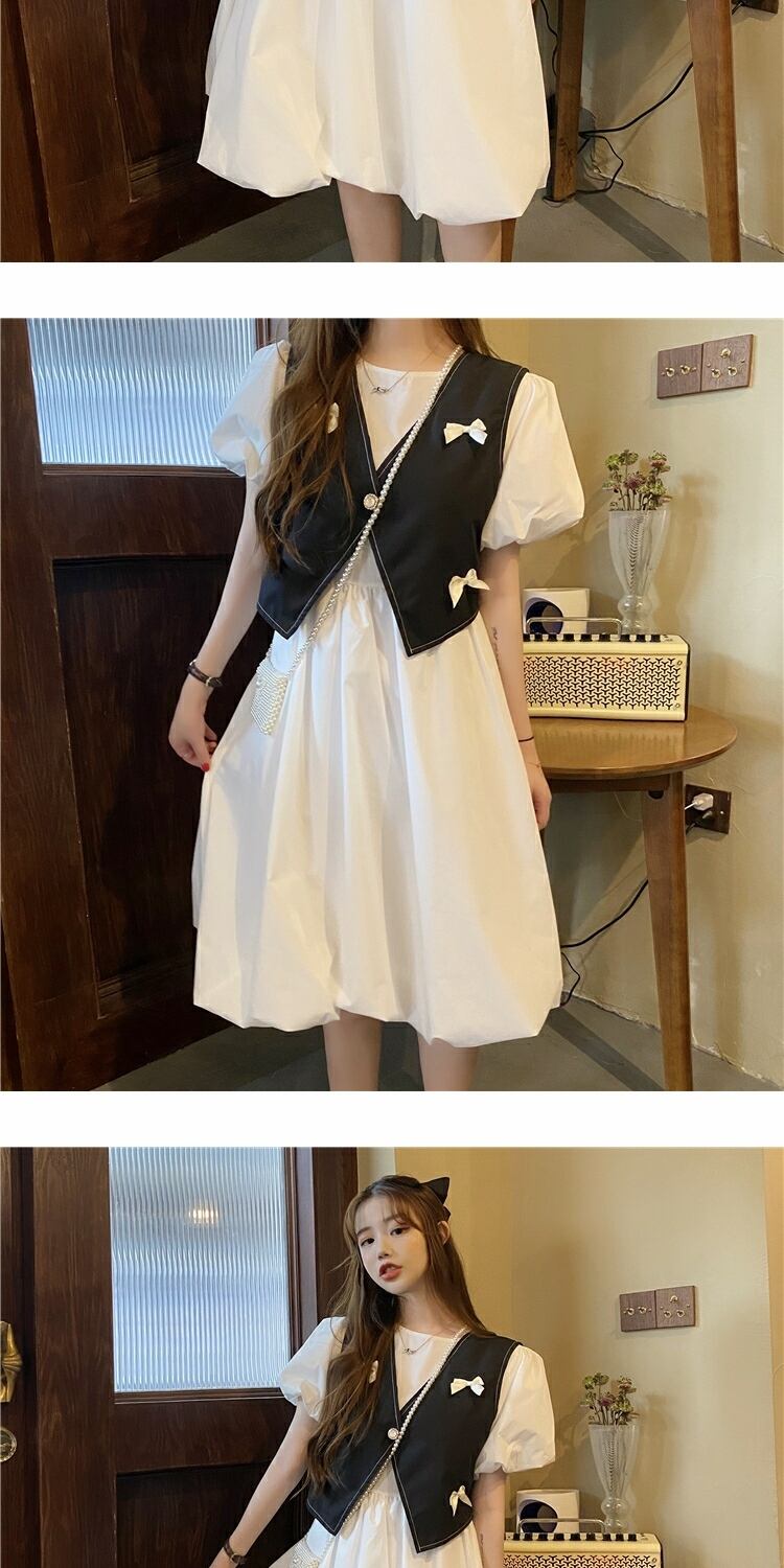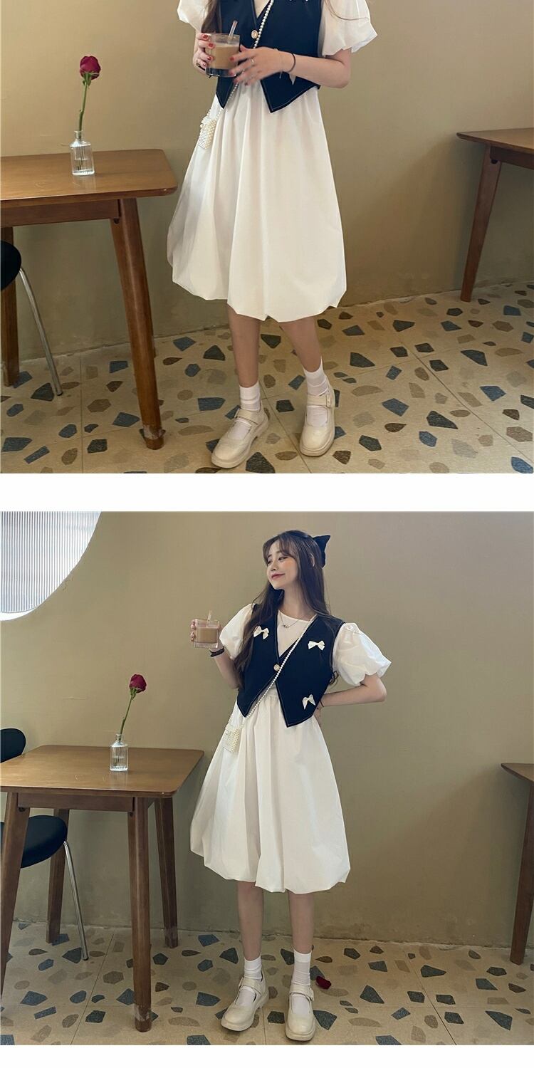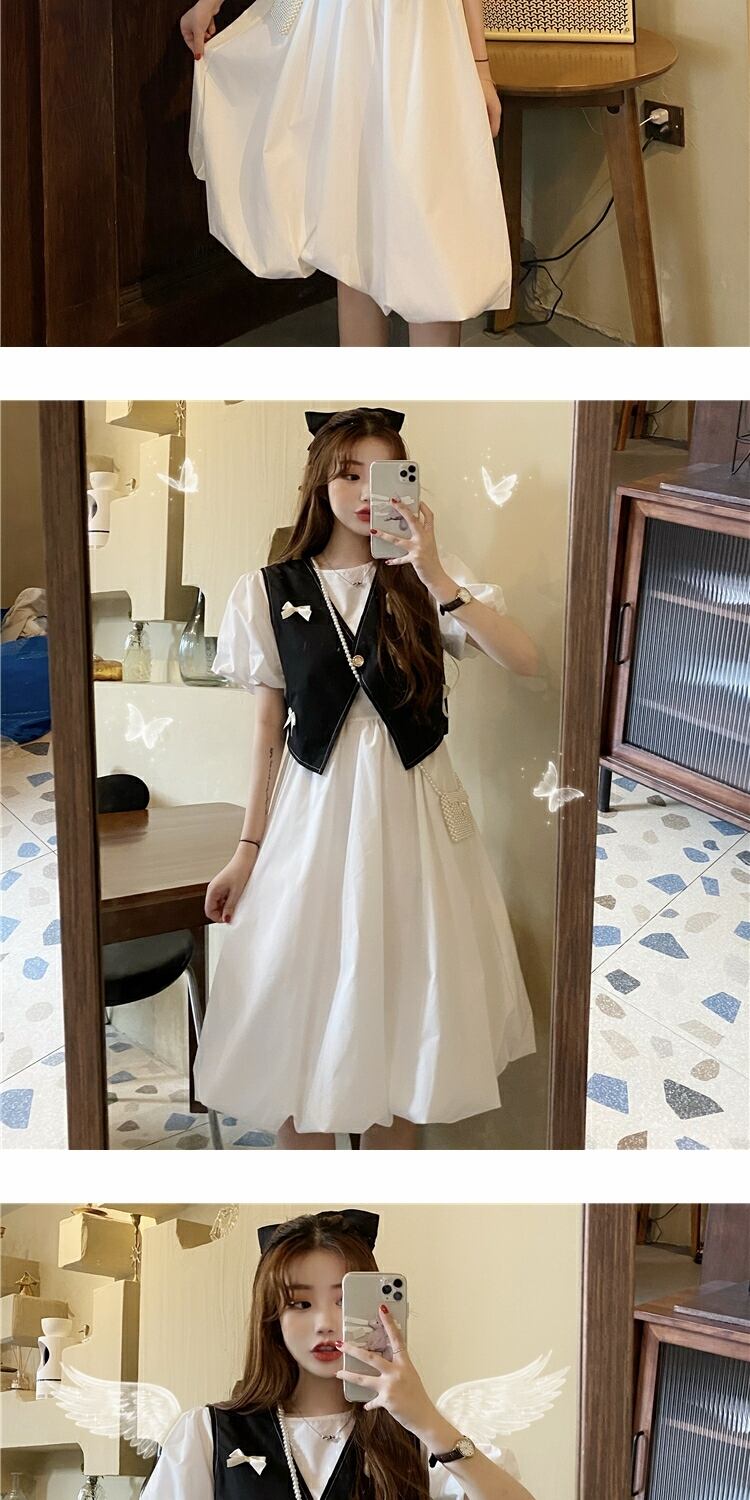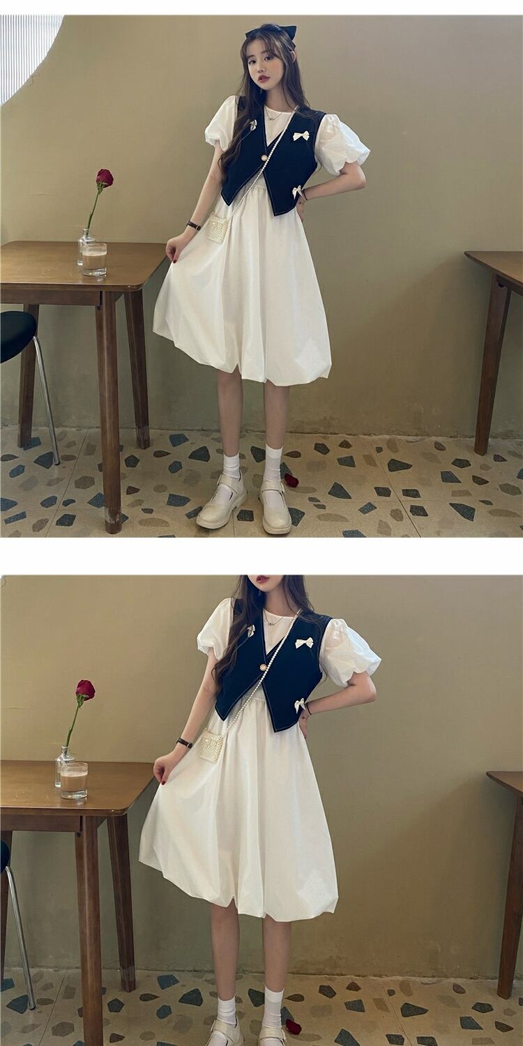 色:白いワンピースのワンピース,ブラックベストワンピース