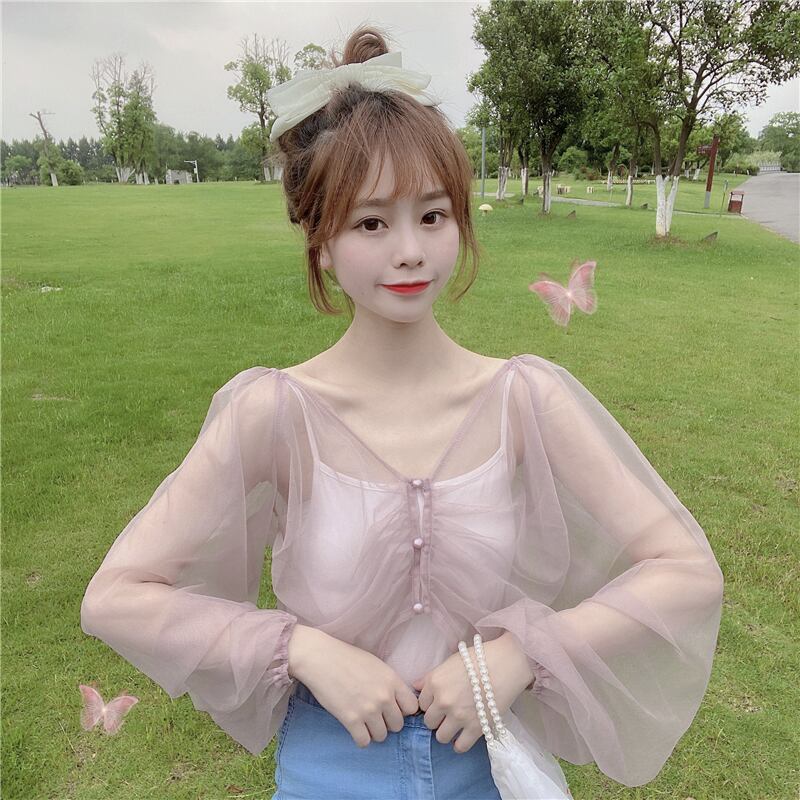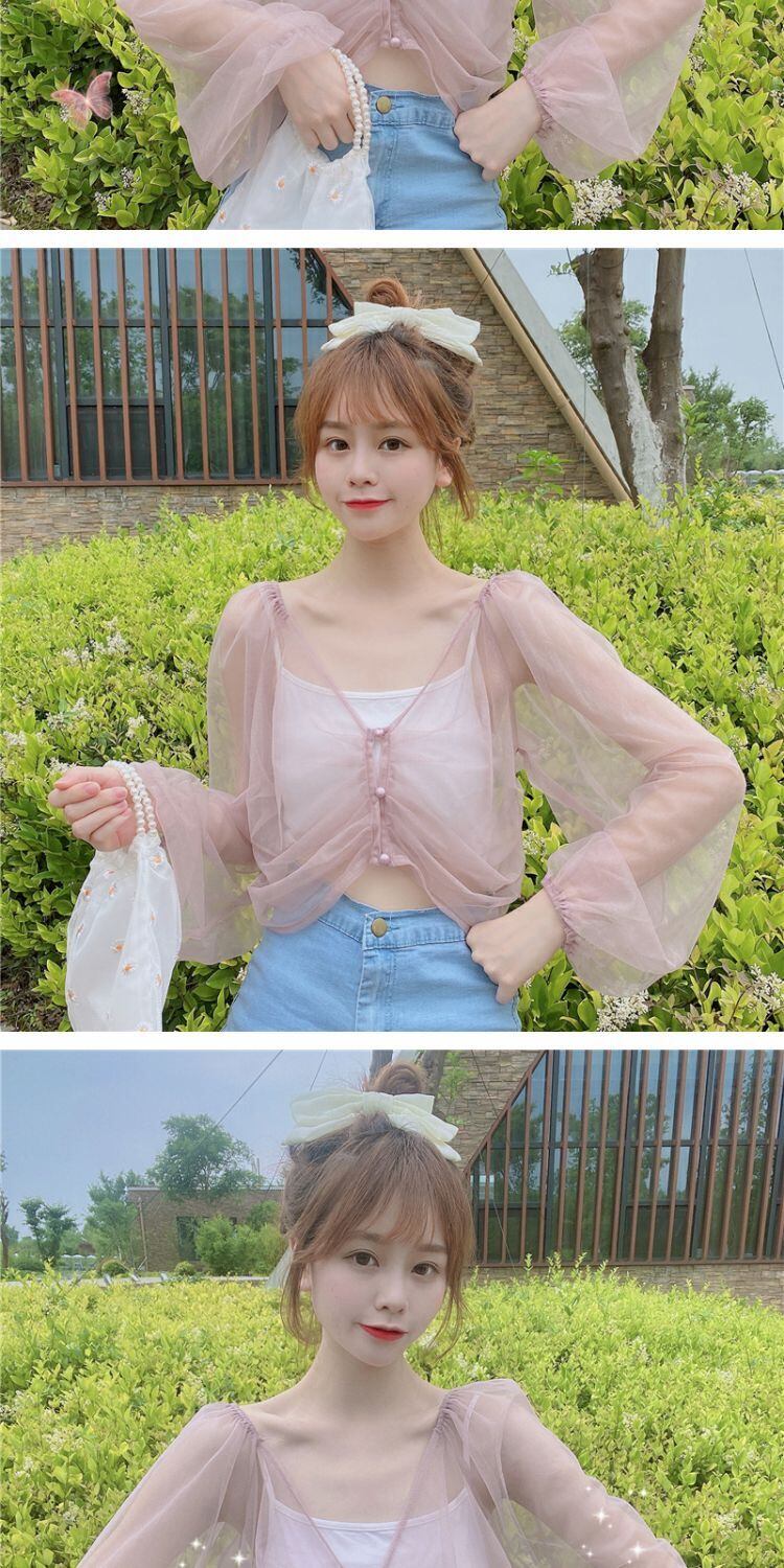 薄手レディースサマースリーブカーディガンシフォンシャツ ルーズトップス ロング ランタンスリーブ 夏物 萌量不足91791380325