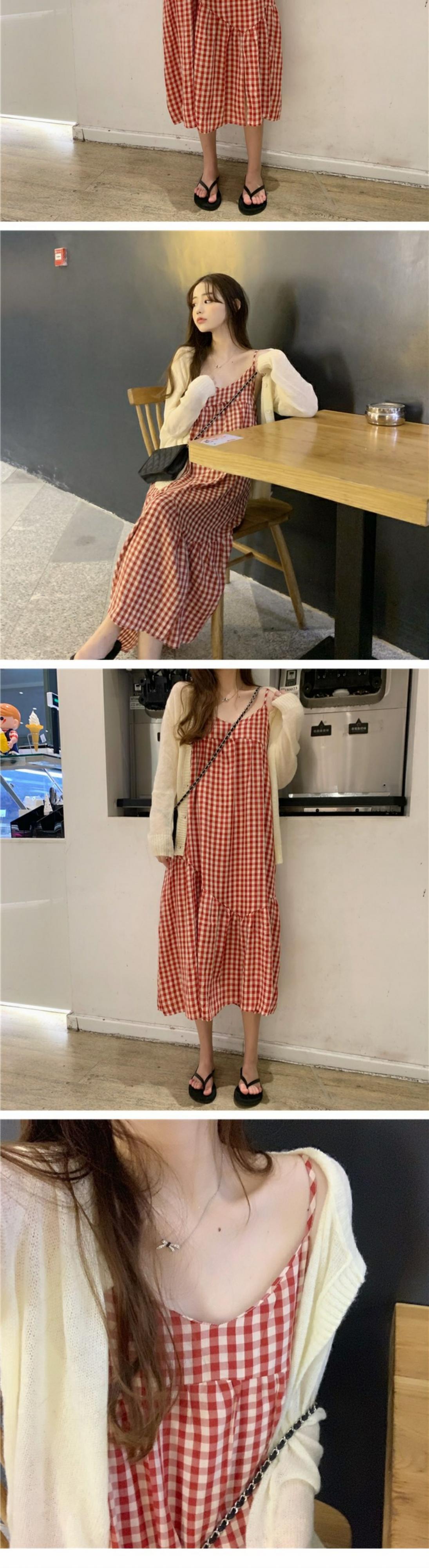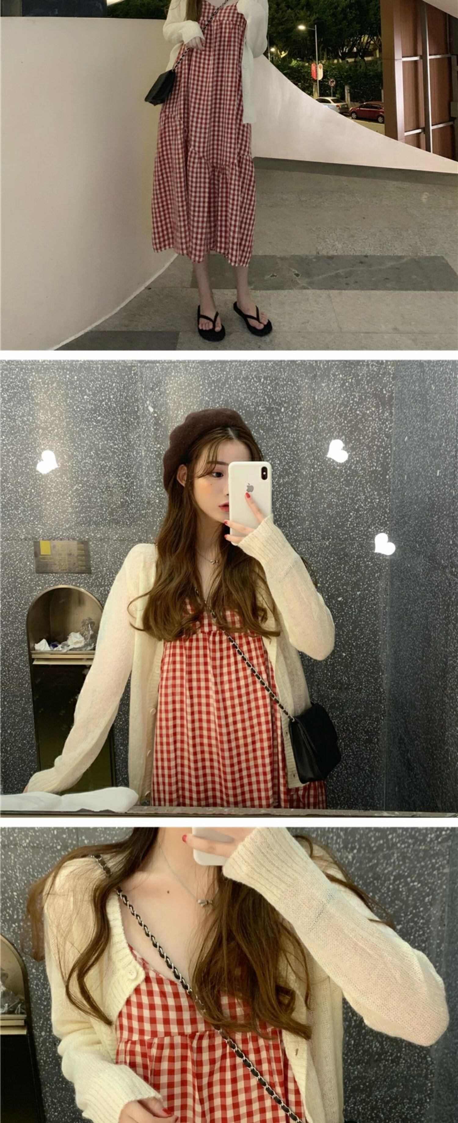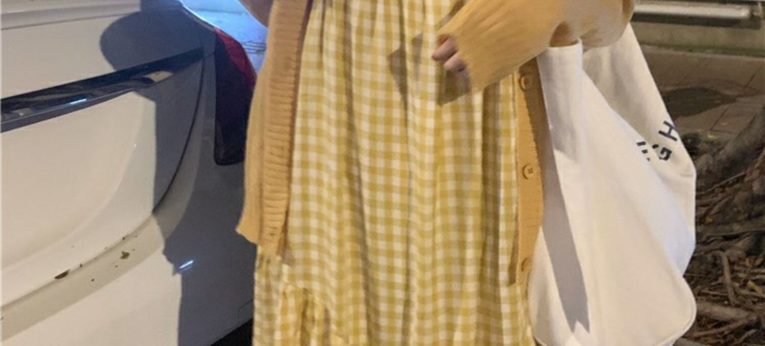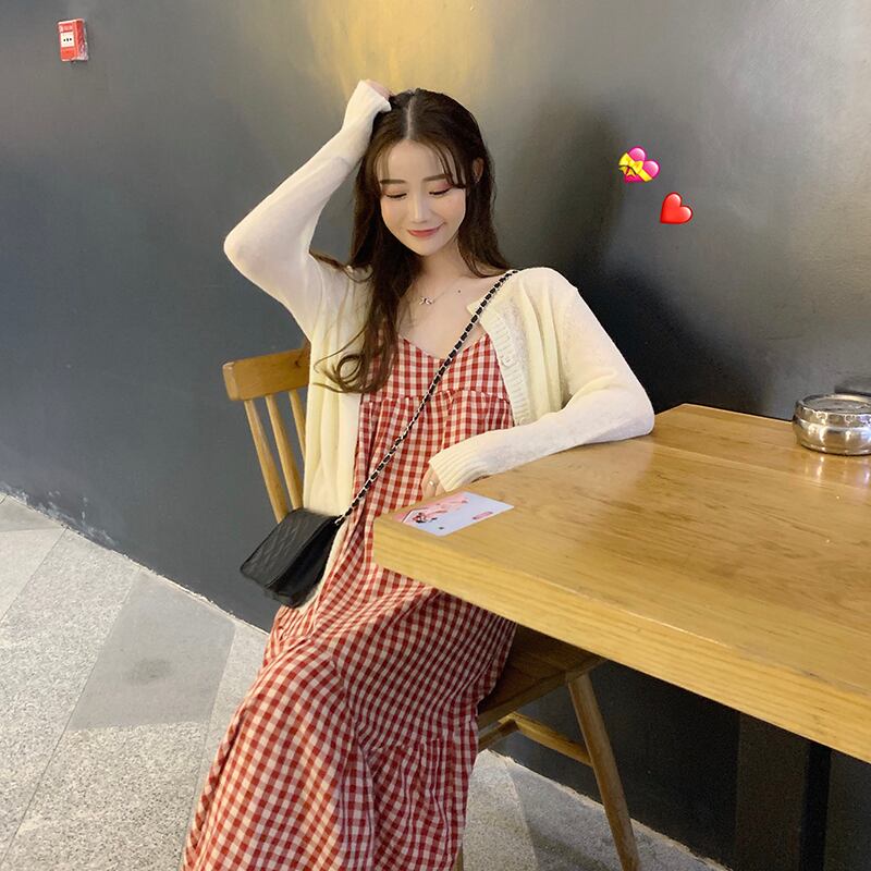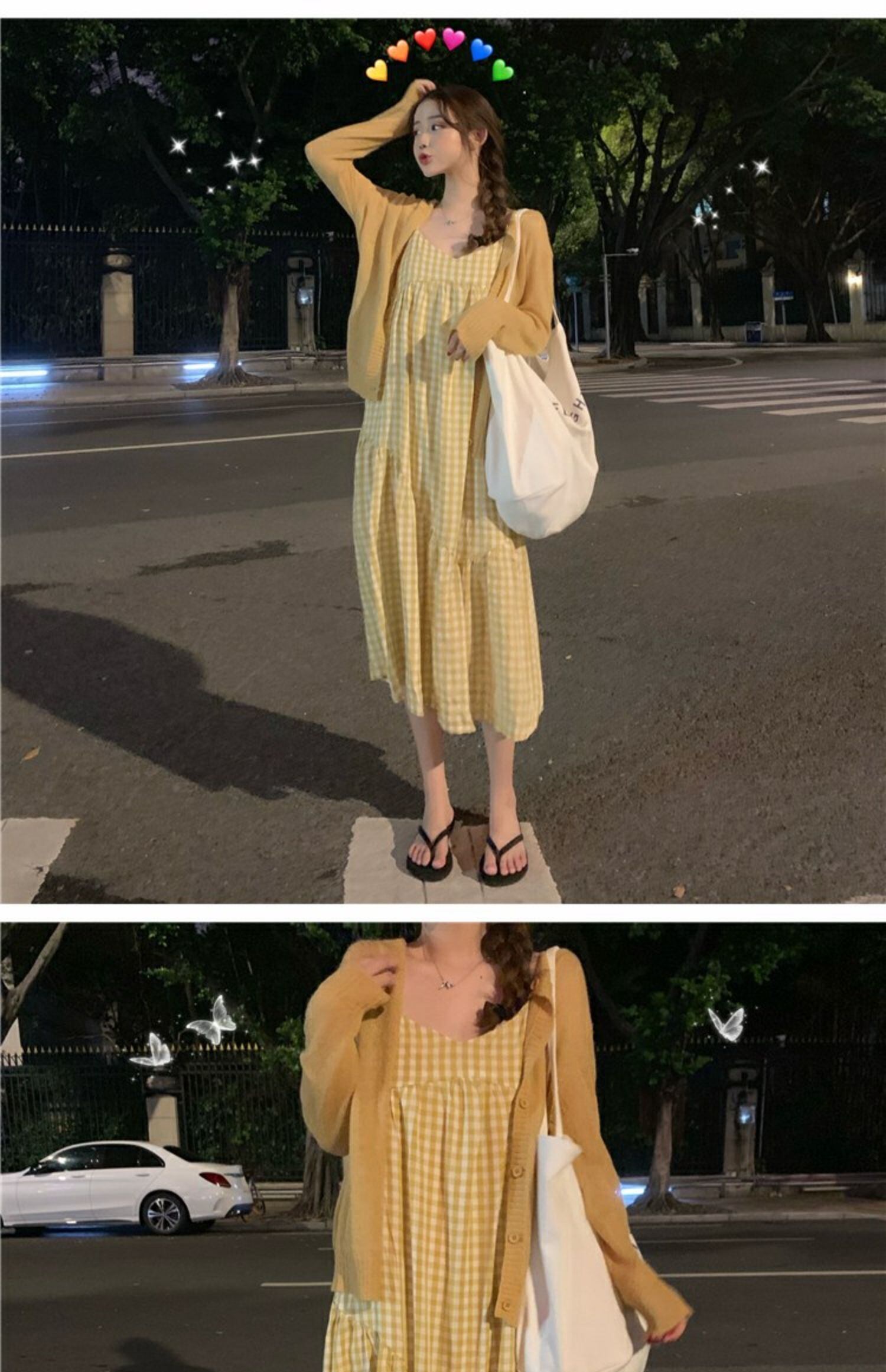 色:黄色いセーター(シングルピース),ベージュニットセーター(シングルピース),レッドグリッドドレス(シングルピース),Huanggeサスペンダースカート(シングルピース)