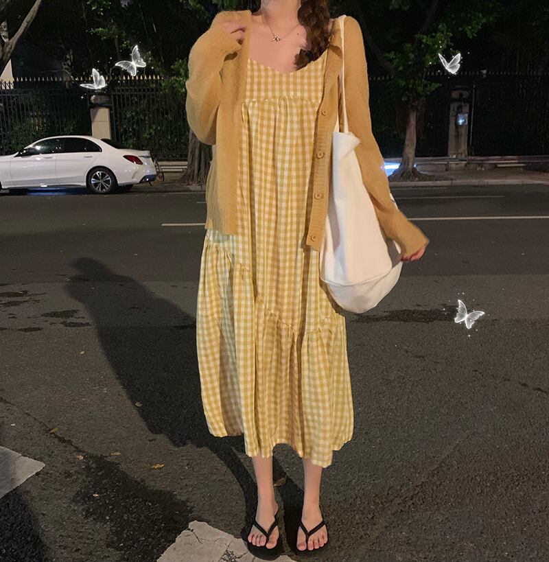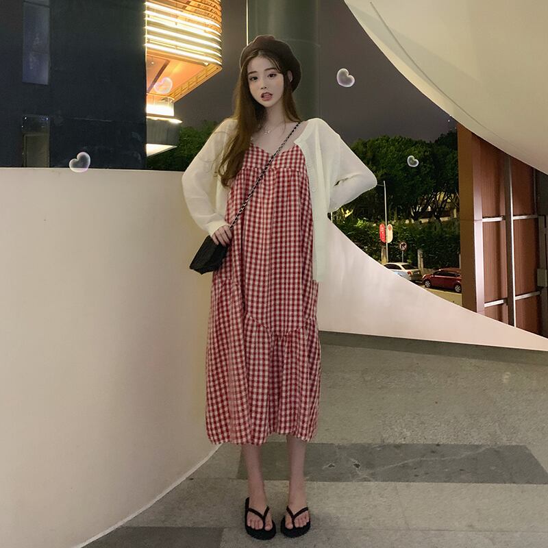 スカート サマー薄手格子柄ドレス 夏物 萌量不足86146519087