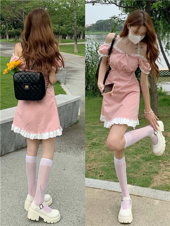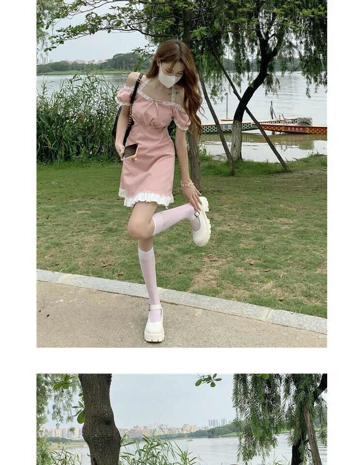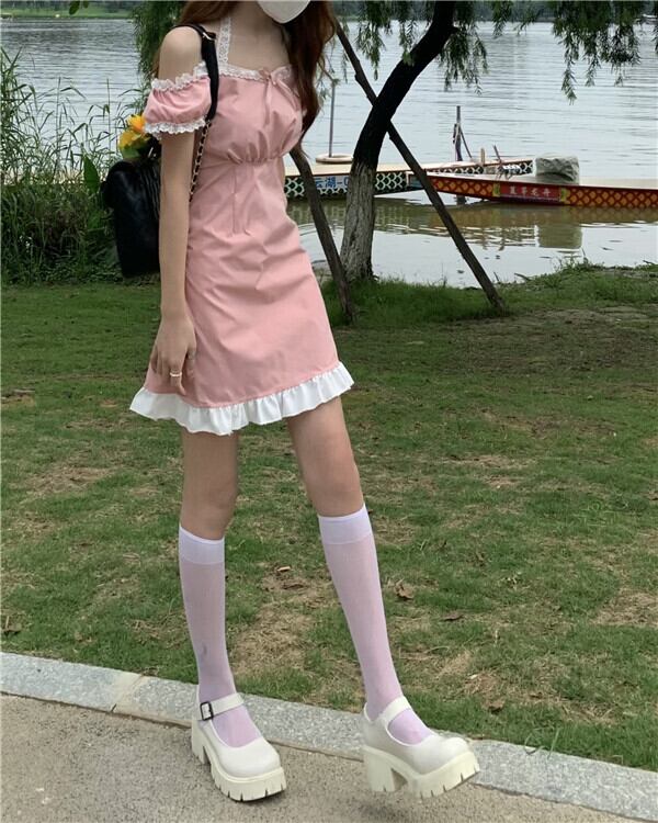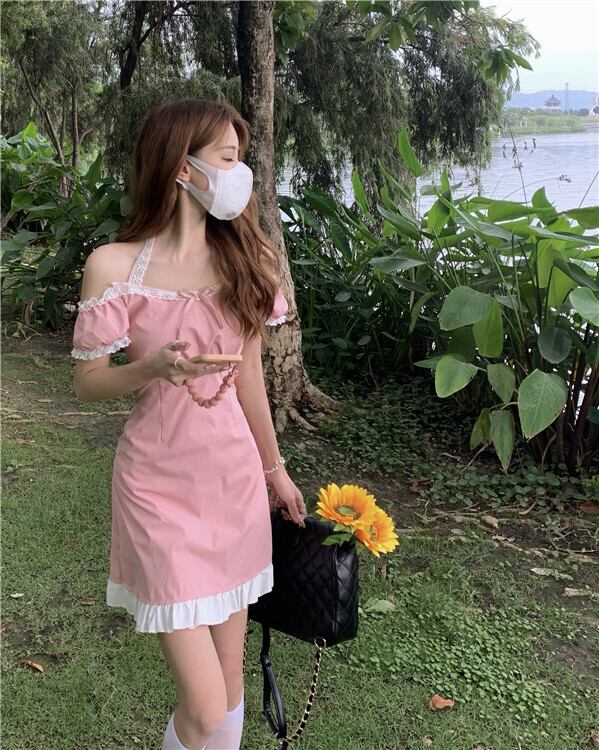 リボンレースドレス サマーウェスト薄手ラッフルスカート 夏物 萌量不足57829950552
