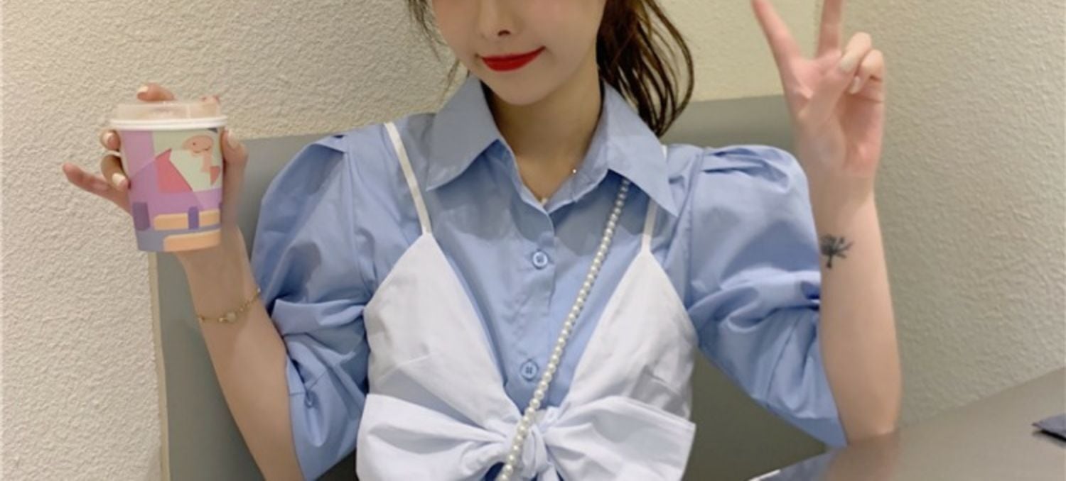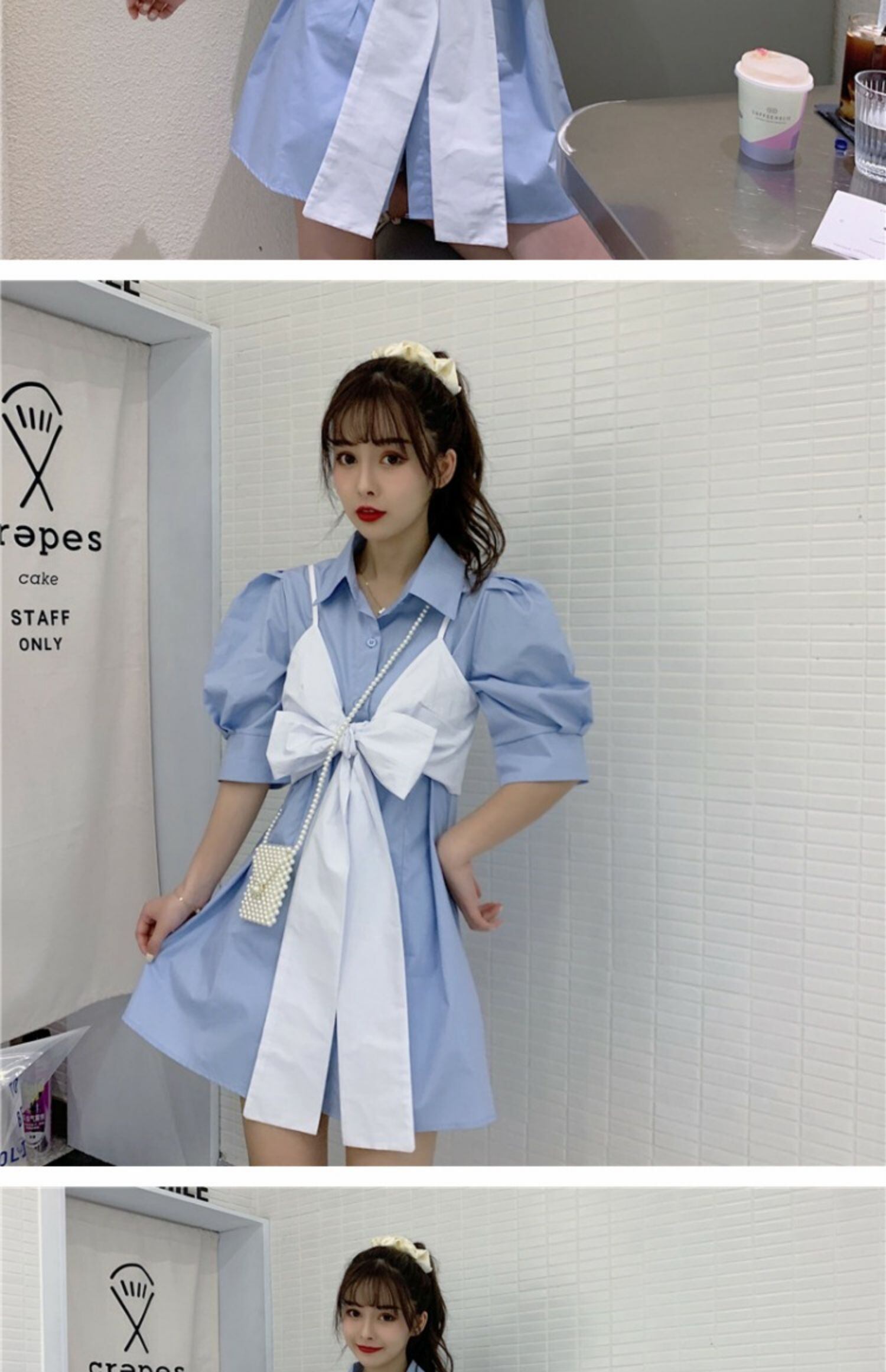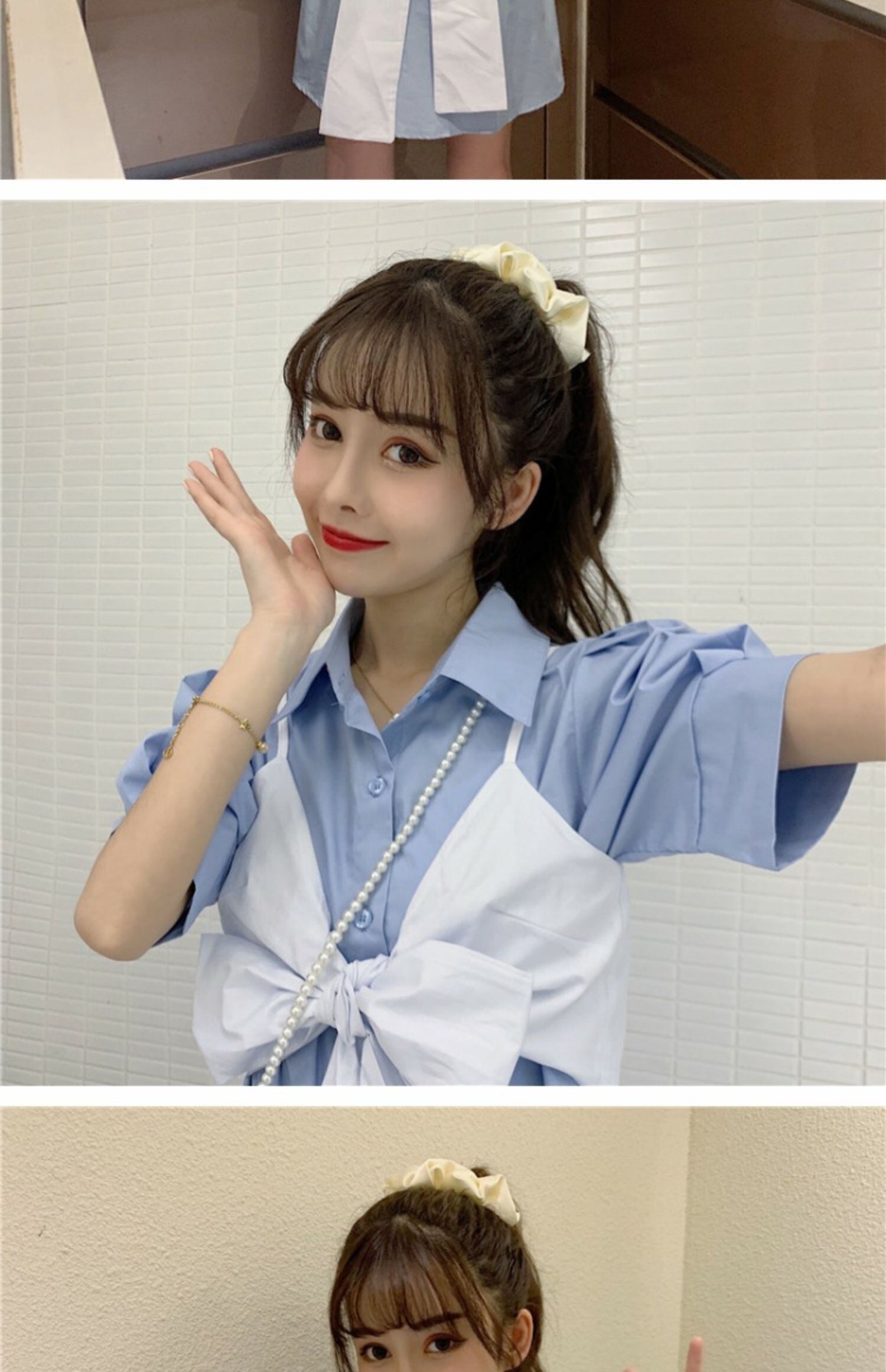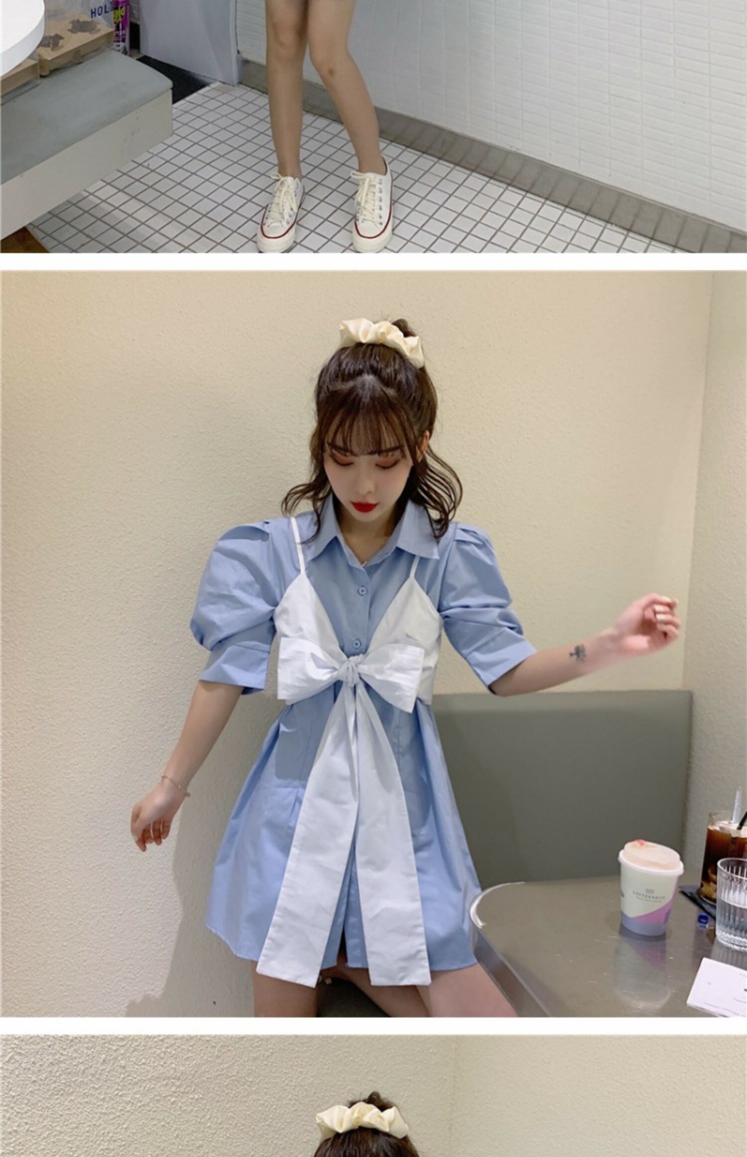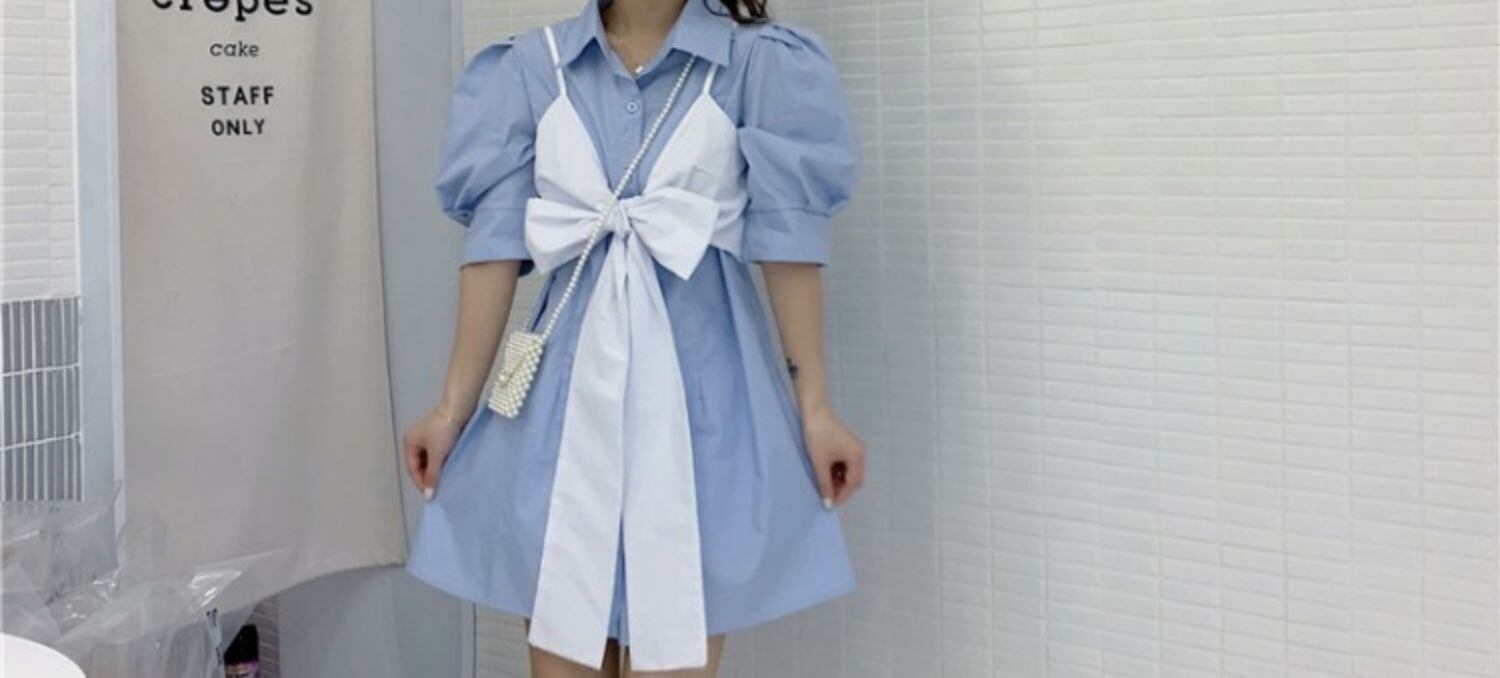 サマースタイルスリーブシャツ リボンスカート 夏物 萌量不足89094000068