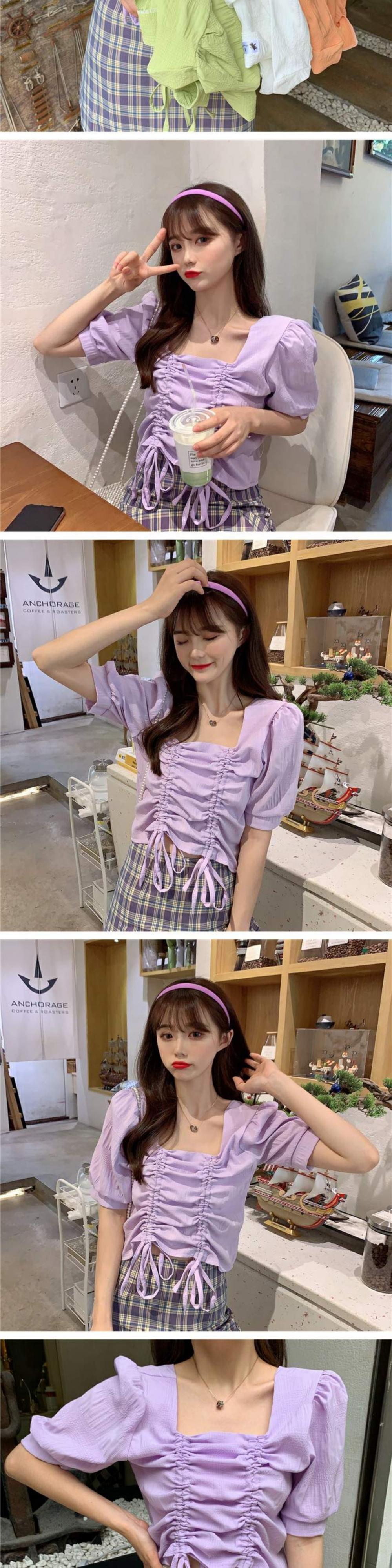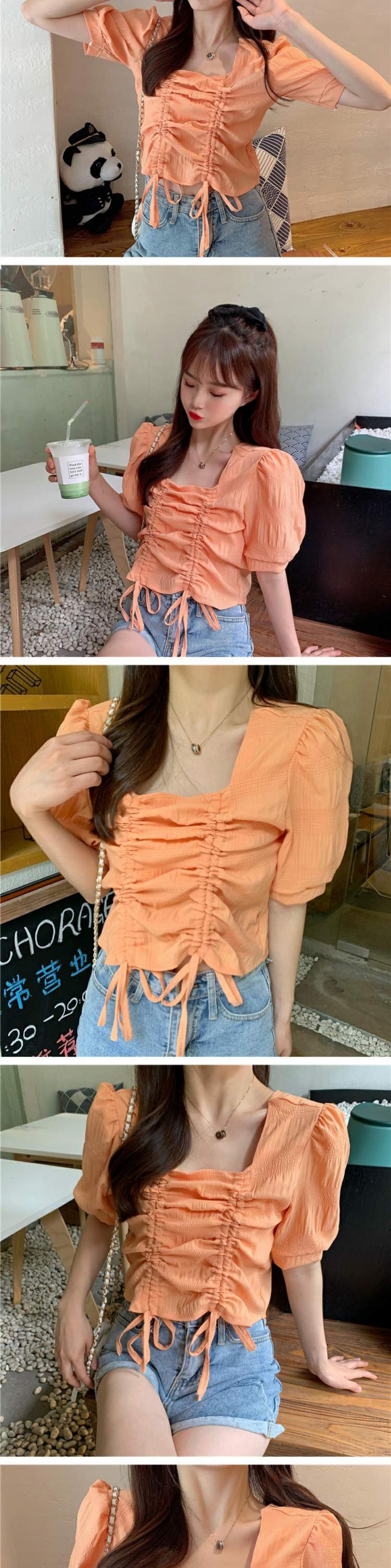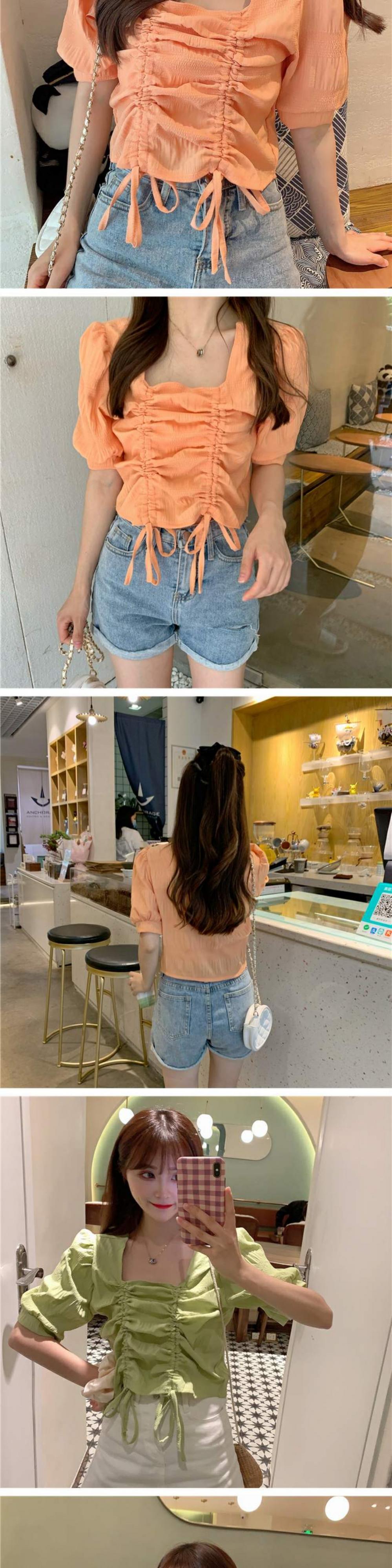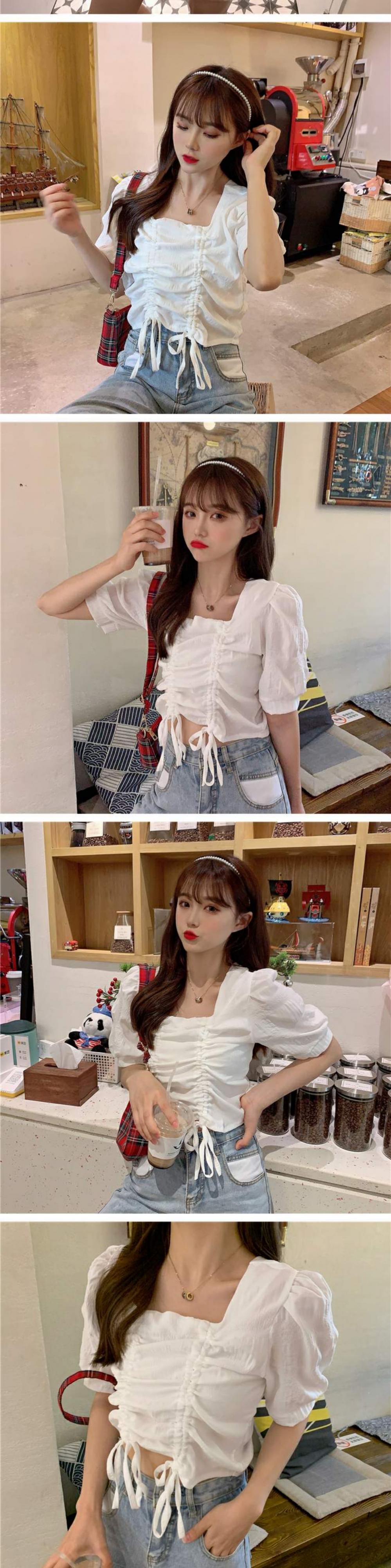 シャツ プリーツブラウス サマーショート レース 夏物 レースアップ スクウェア 萌量不足95695219206