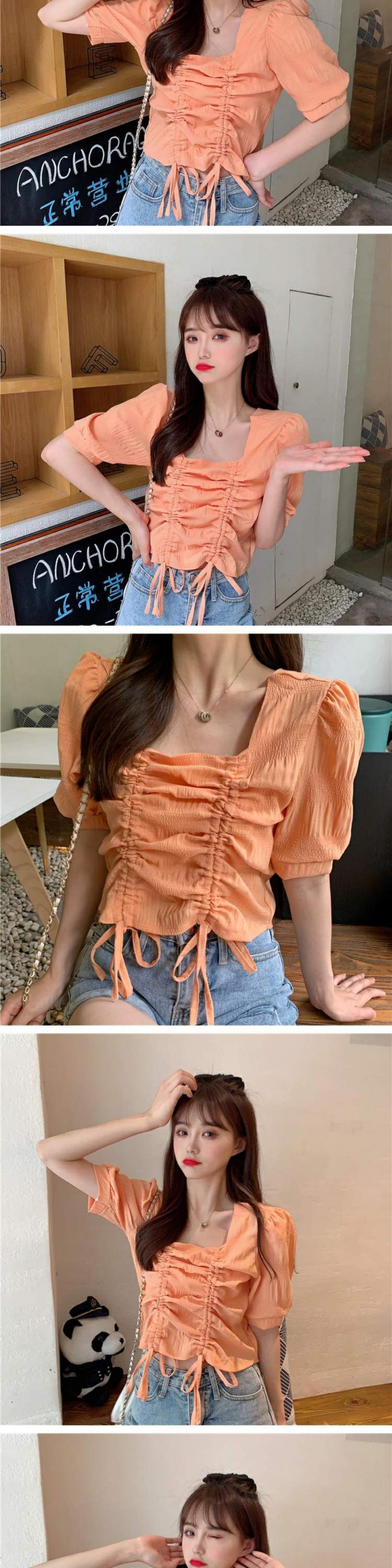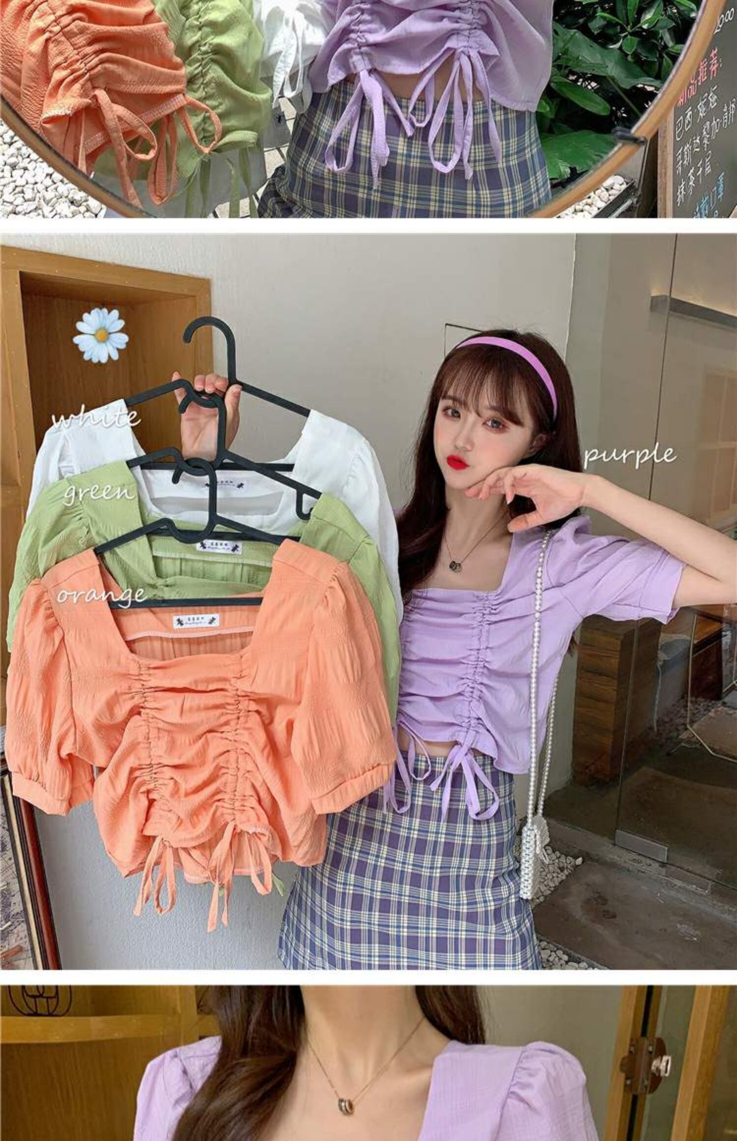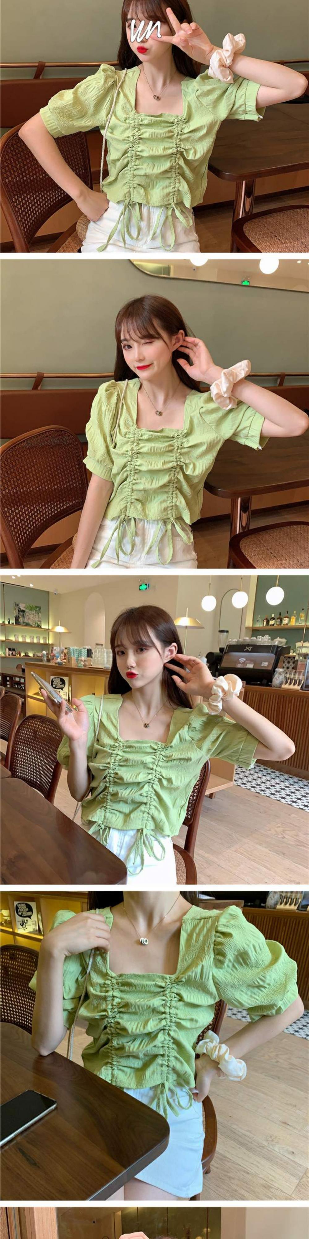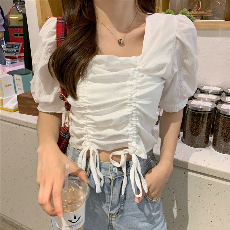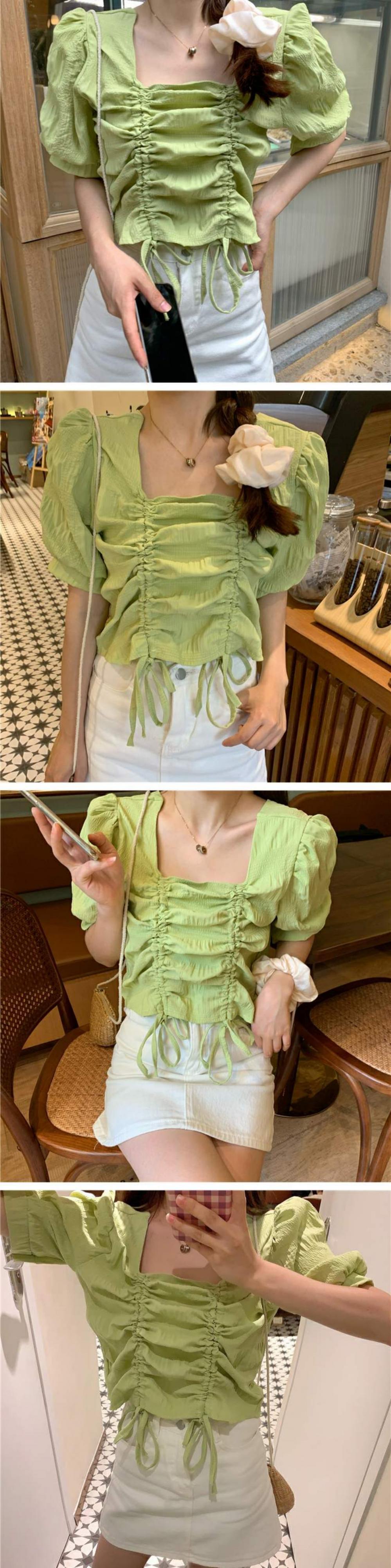 シャツ プリーツブラウス サマーショート レース 夏物 レースアップ スクウェア 萌量不足95695219206