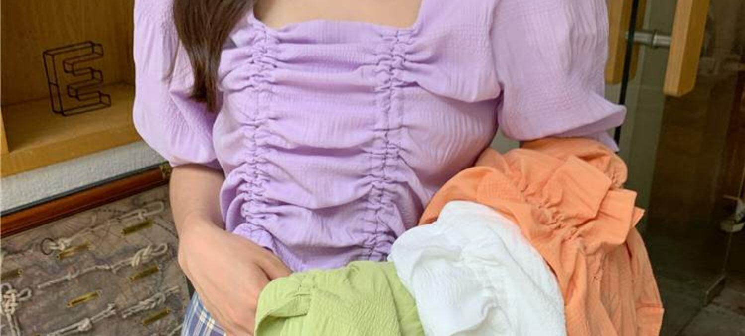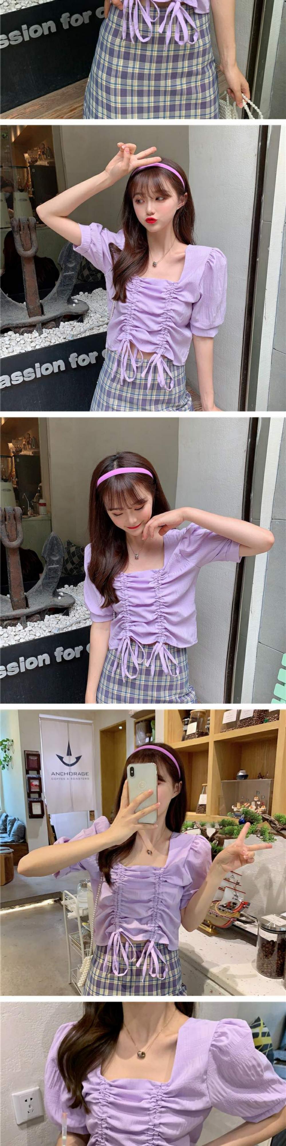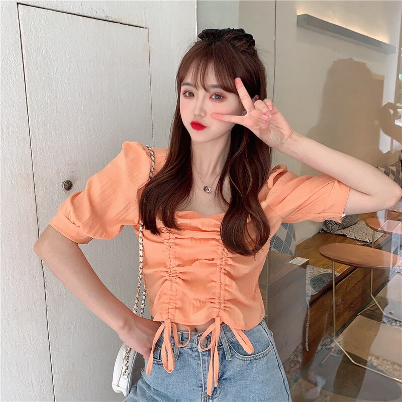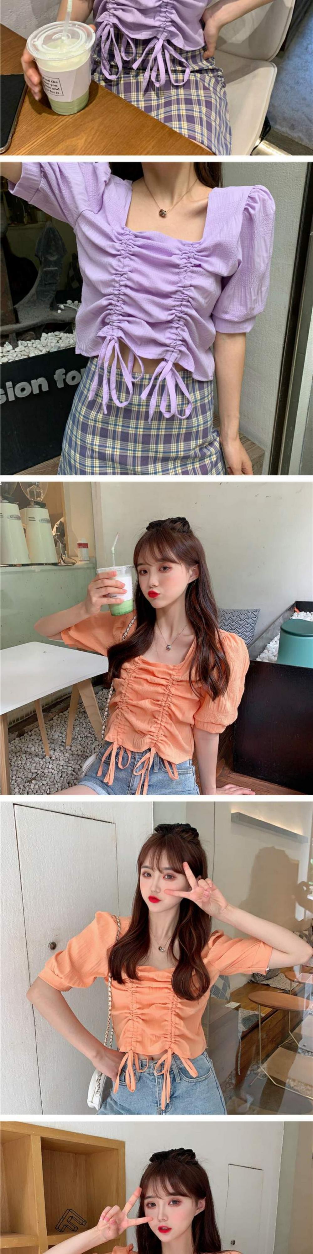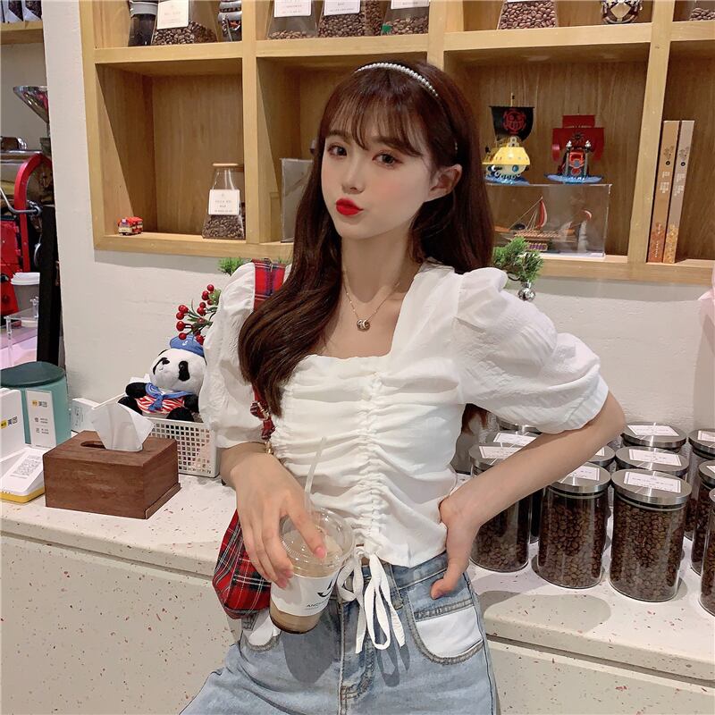 シャツ プリーツブラウス サマーショート レース 夏物 レースアップ スクウェア 萌量不足95695219206