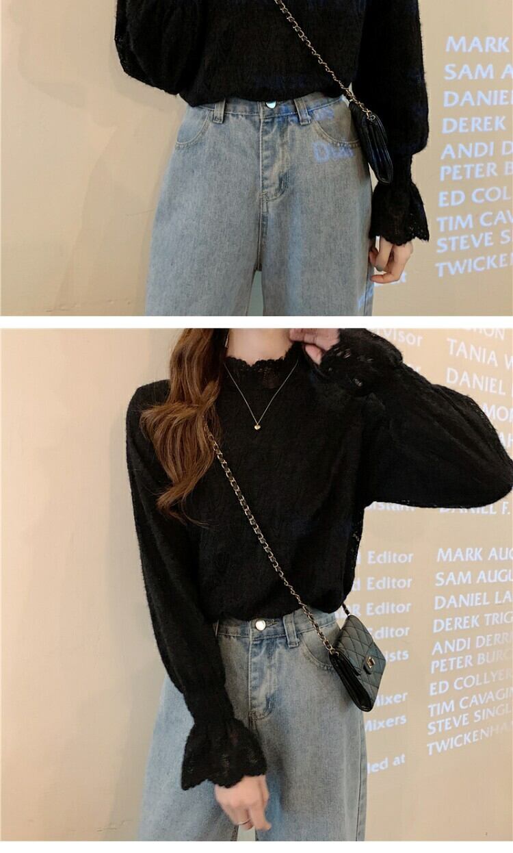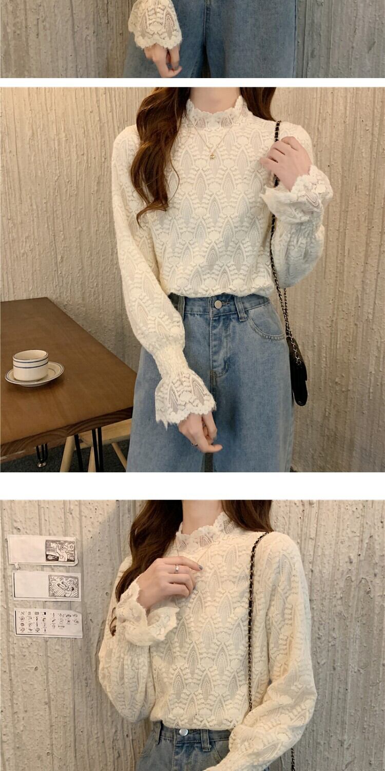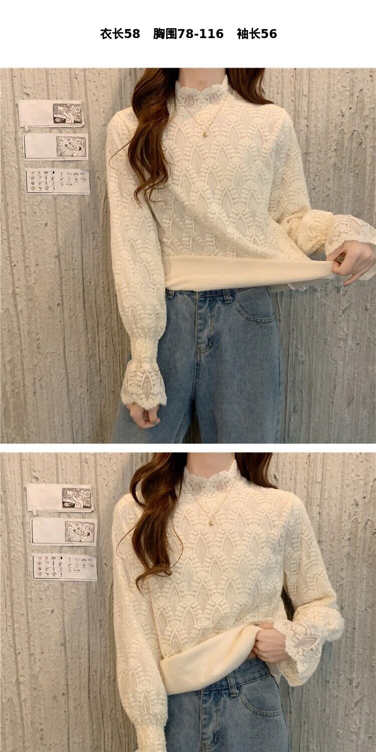 レースシャツ スタイルカラーベルベットロングトップス 長袖 ウィンター 冬物 萌量不足24244024662