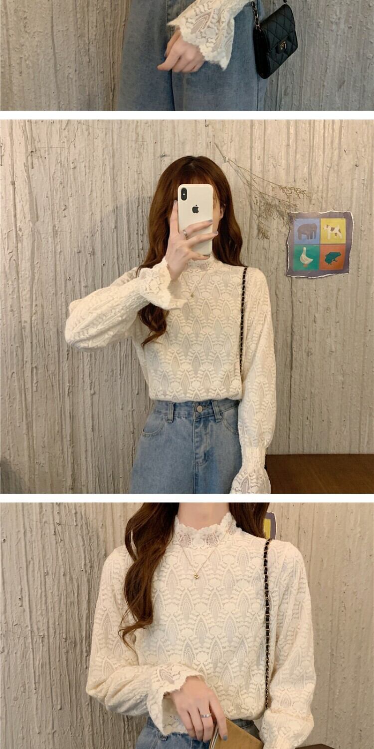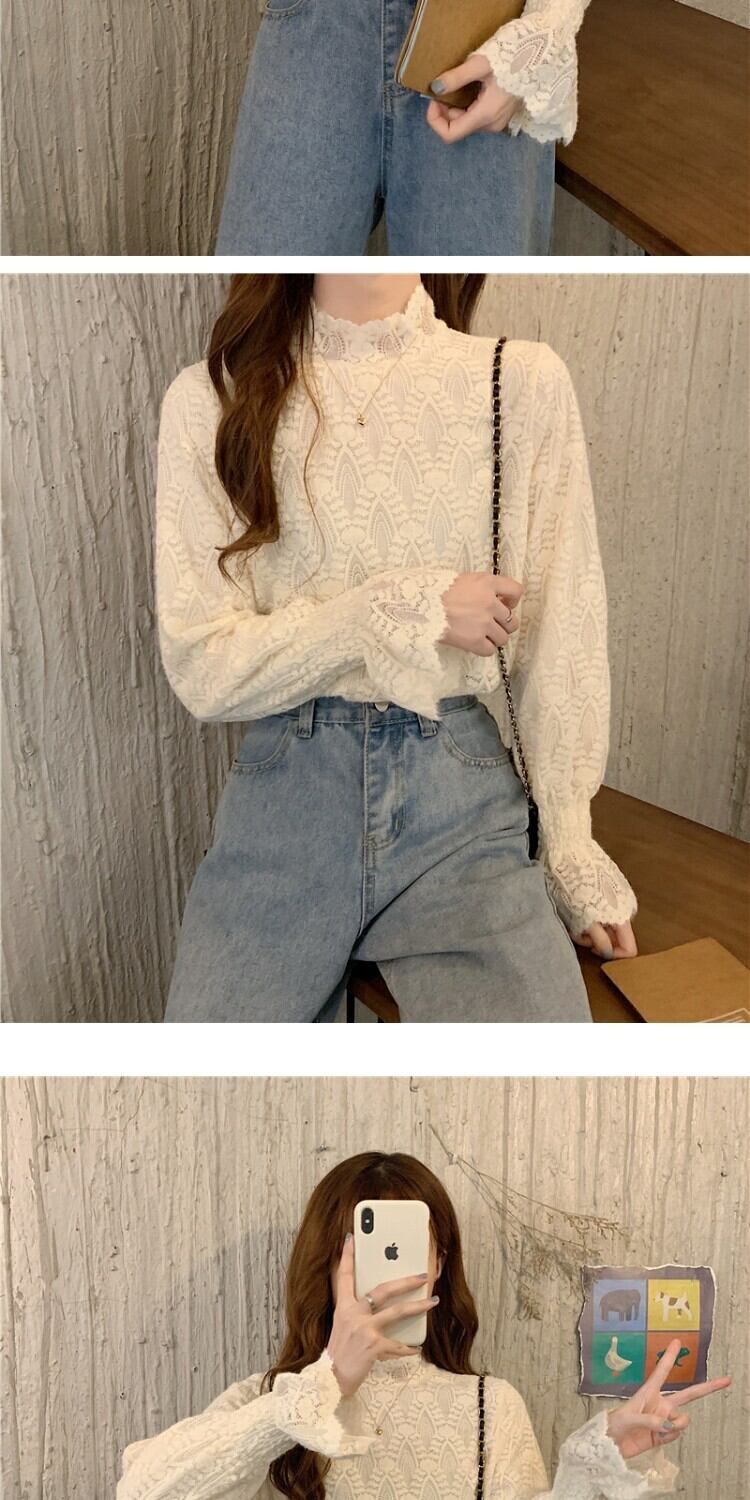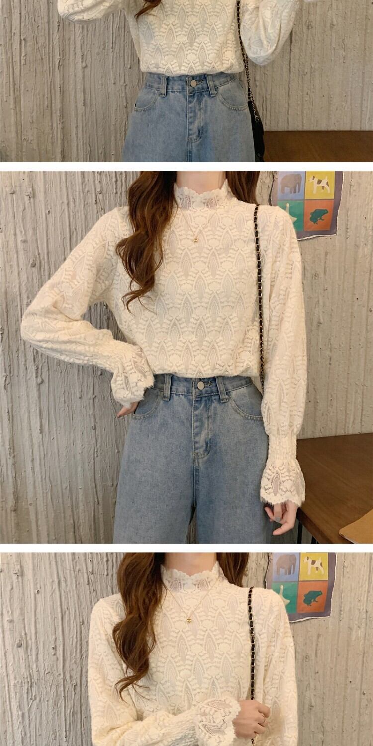 レースシャツ スタイルカラーベルベットロングトップス 長袖 ウィンター 冬物 萌量不足24244024662