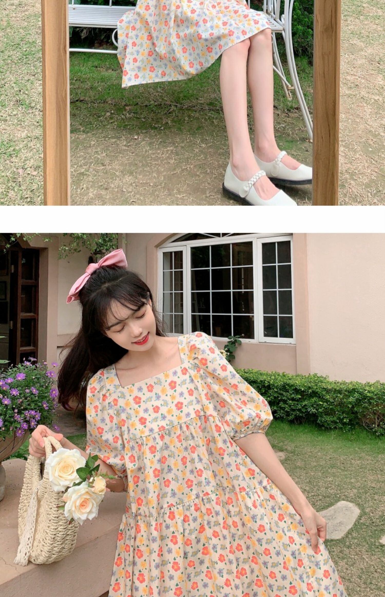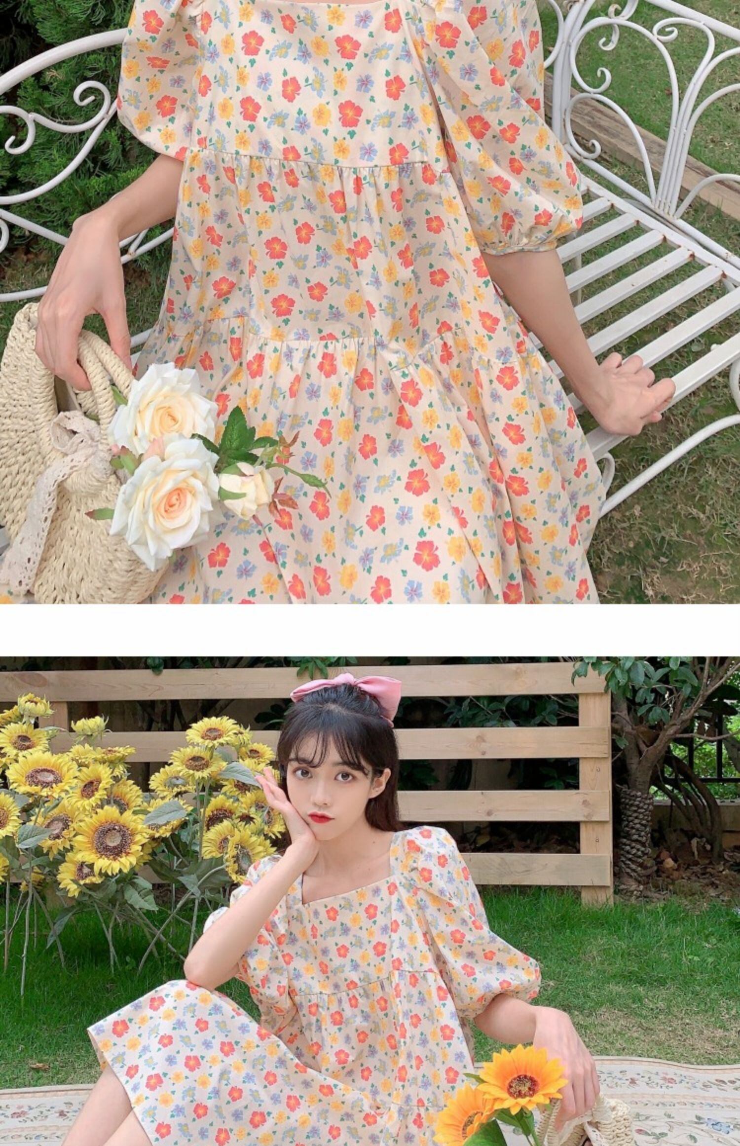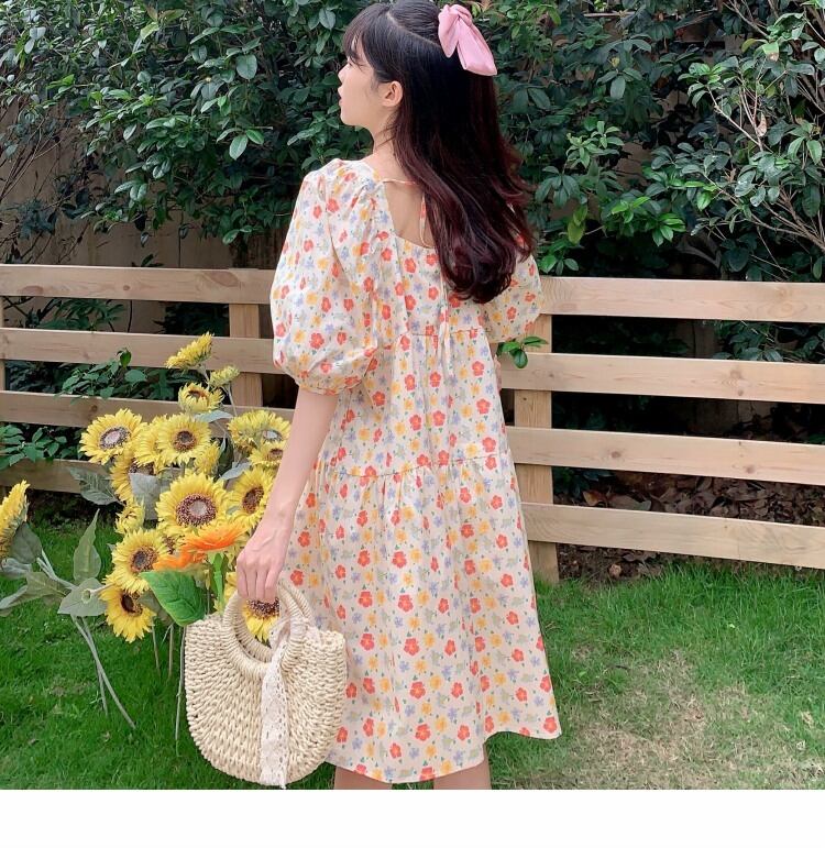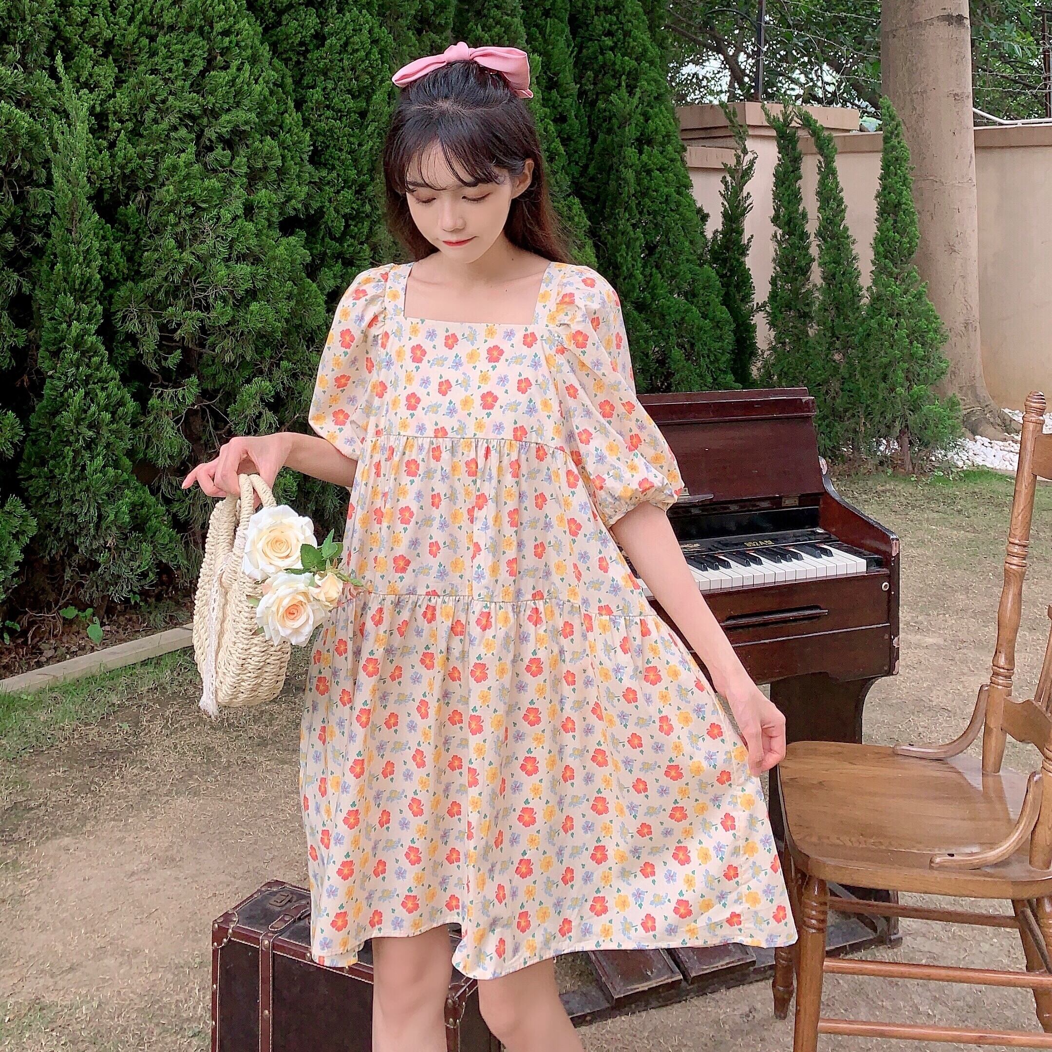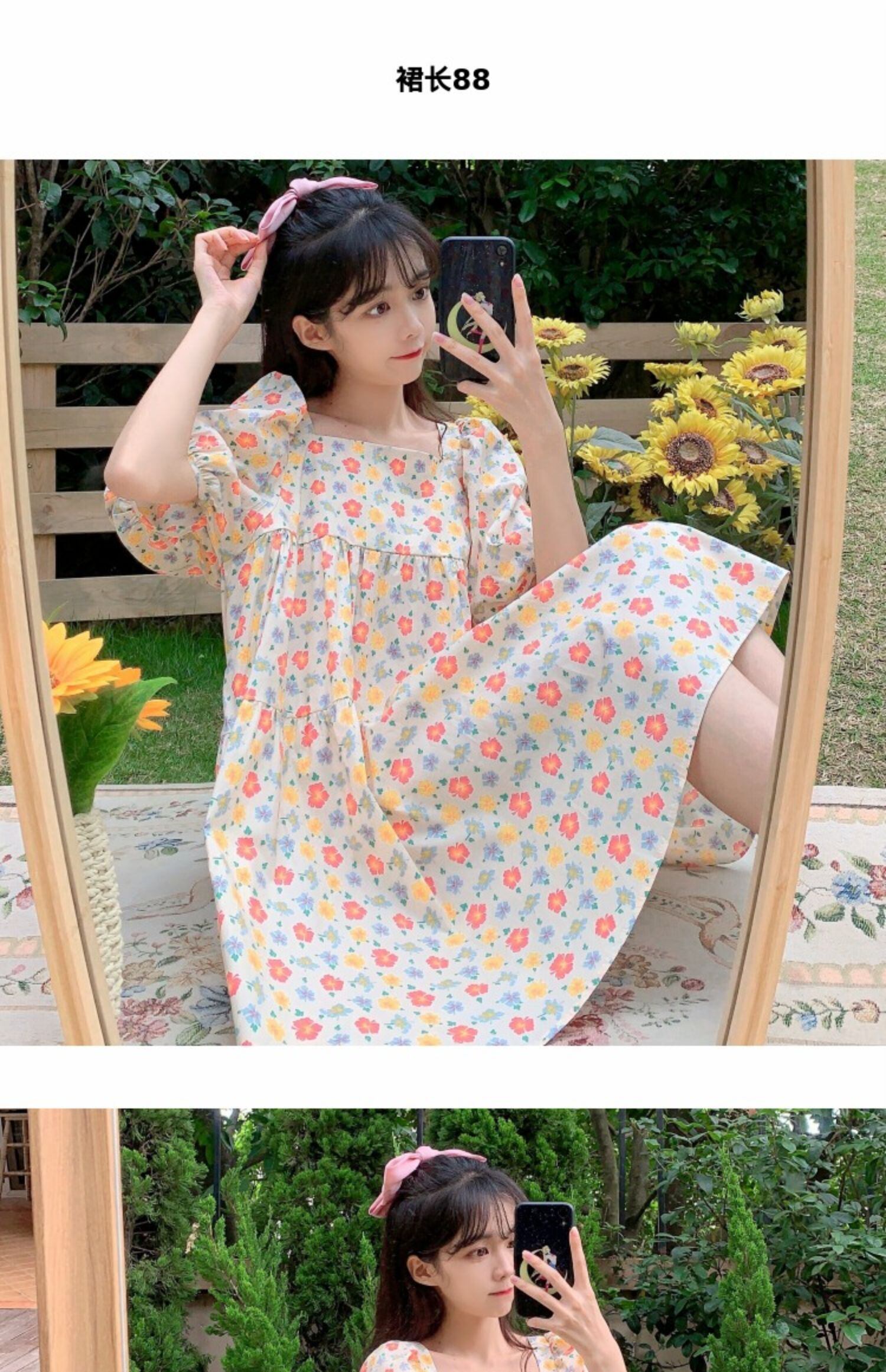 スカート サマースタイルルーズフローラルカラードレス 夏物 花柄 スクウェア 萌量不足2099767995