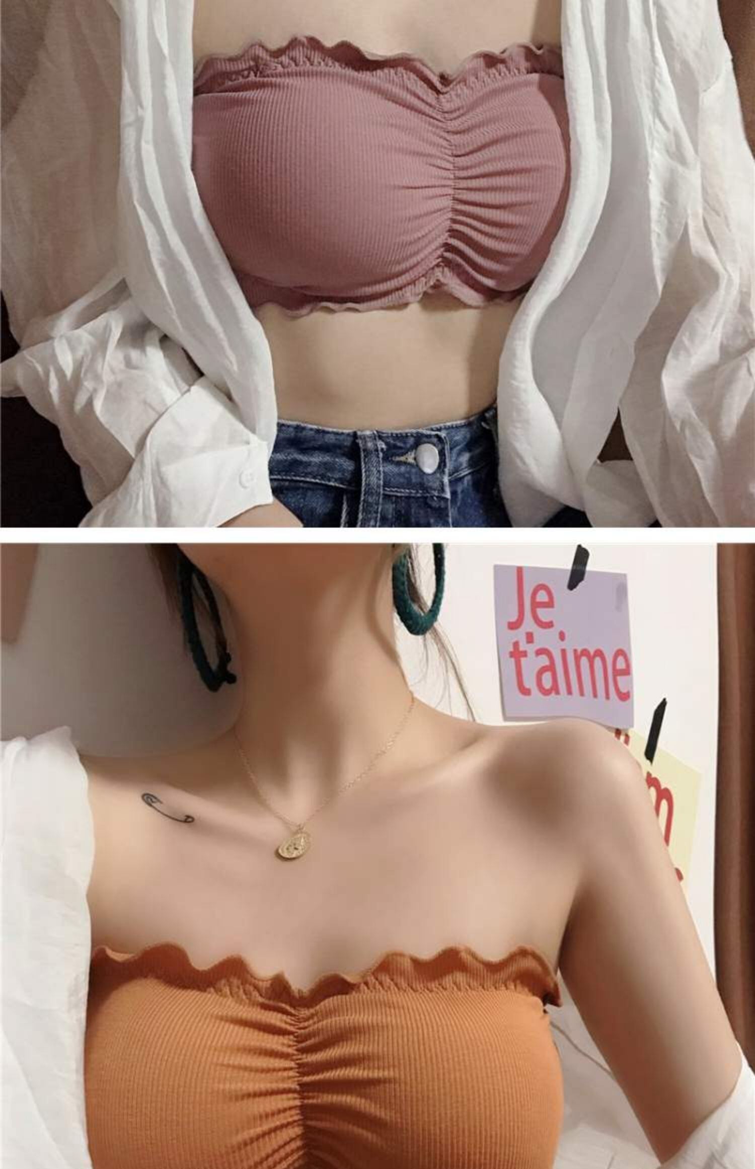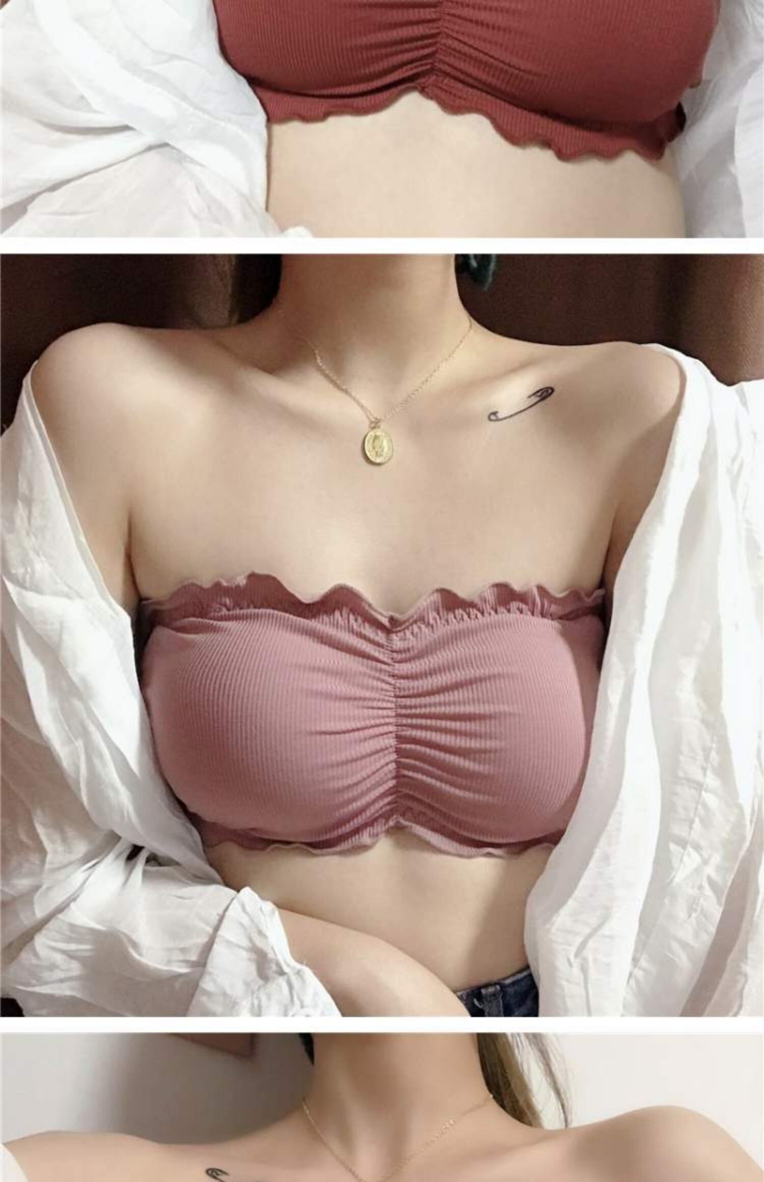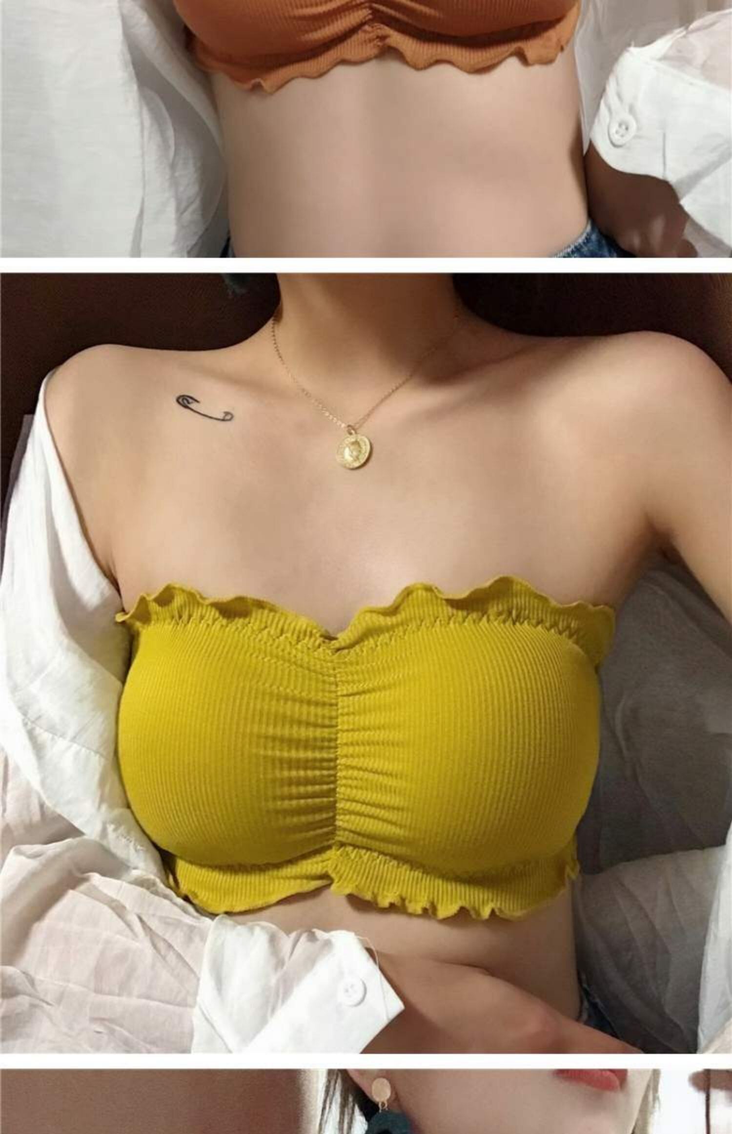 バックトップス ソリッド カラーストラップレスブラ ソリッドカラー 萌量不足2612668905