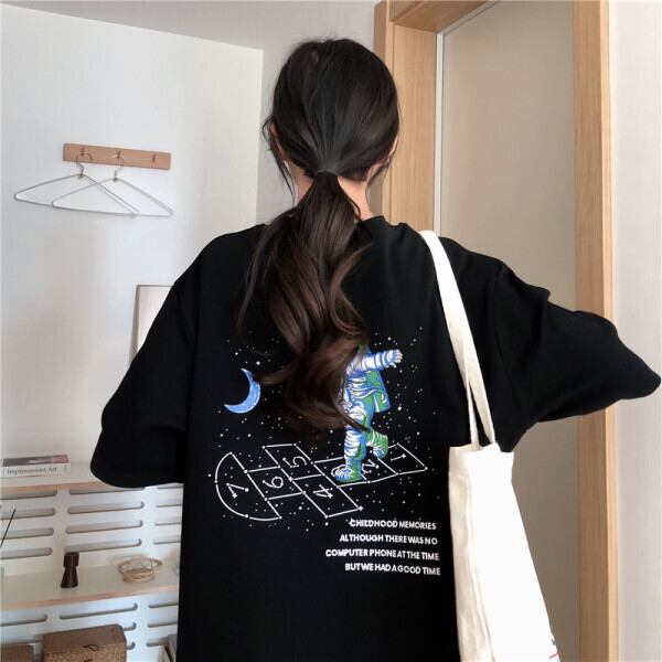 ルーズ薄手バックプリントTシャツ レディースサマートップス 大人ガーリー スウィート キュート カジュアル 夏物 萌量不足40711201990