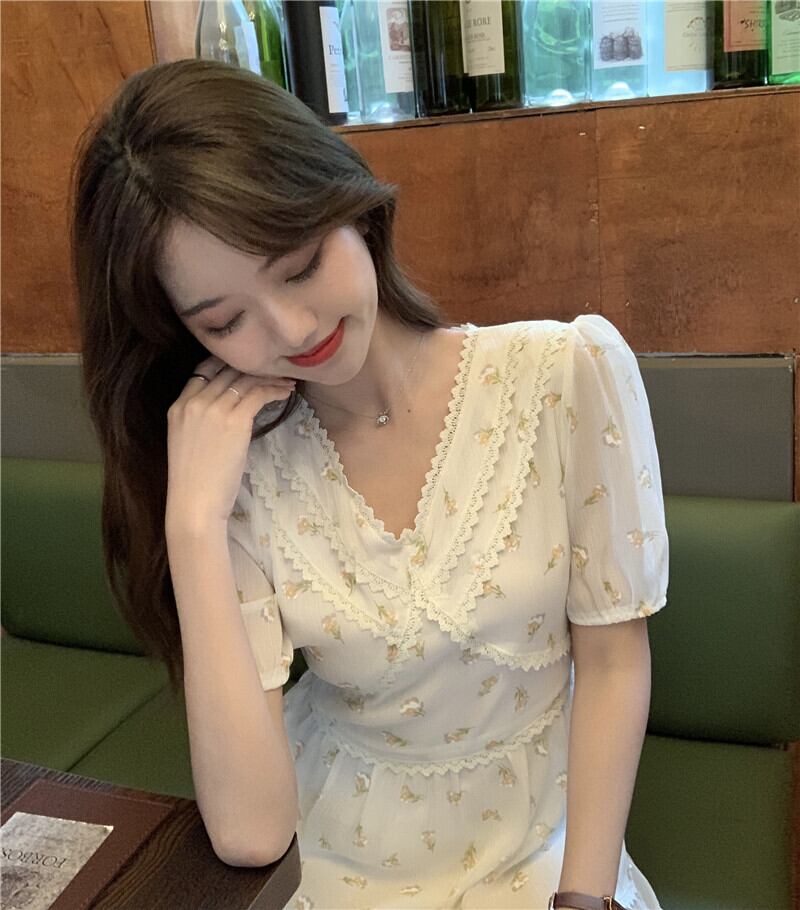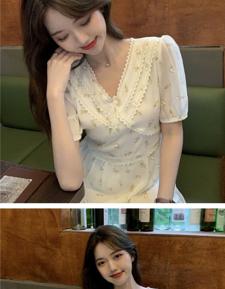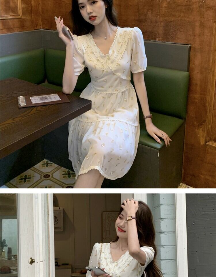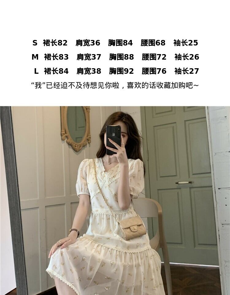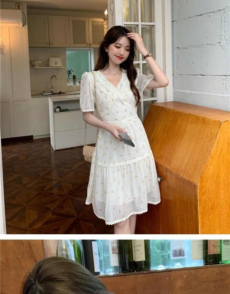 フローラルドレス サマーレースVネックスリーブスカート 夏物 花柄 萌量不足68068619300