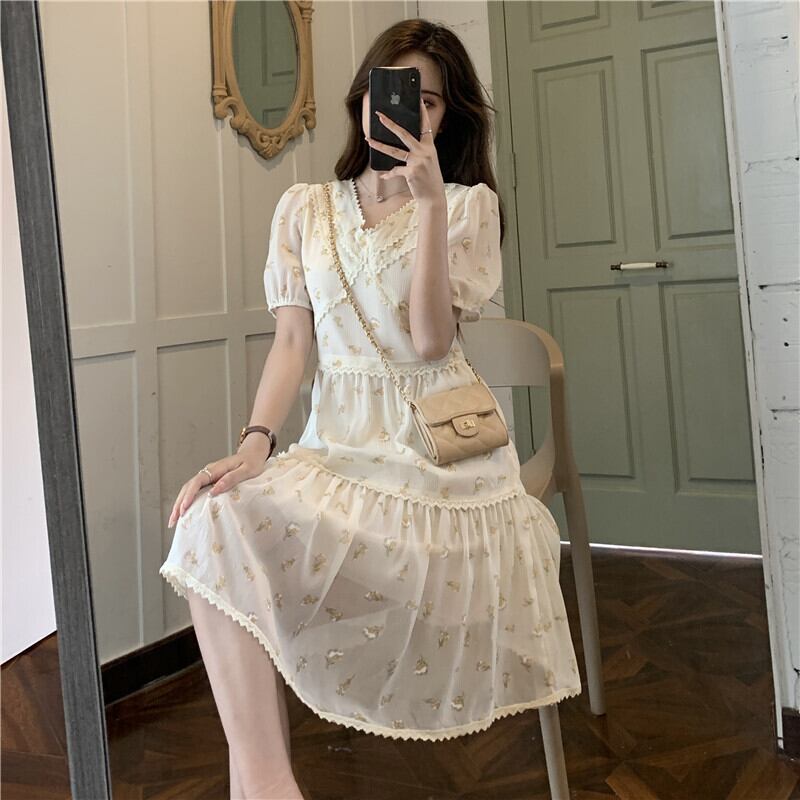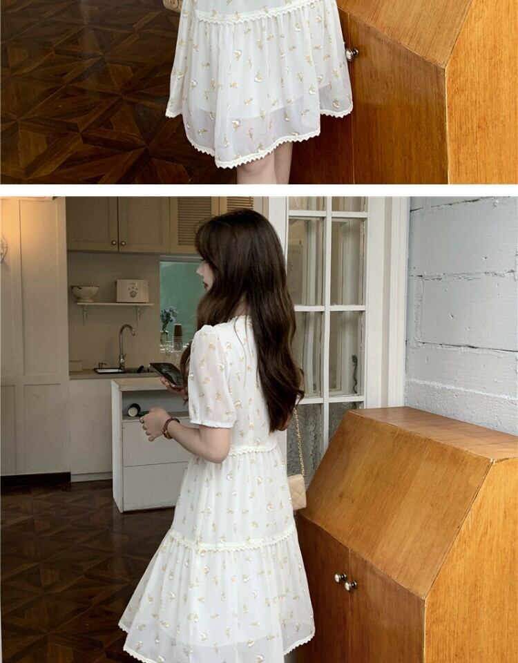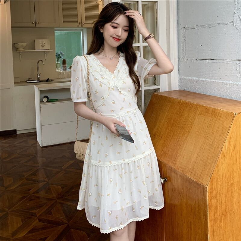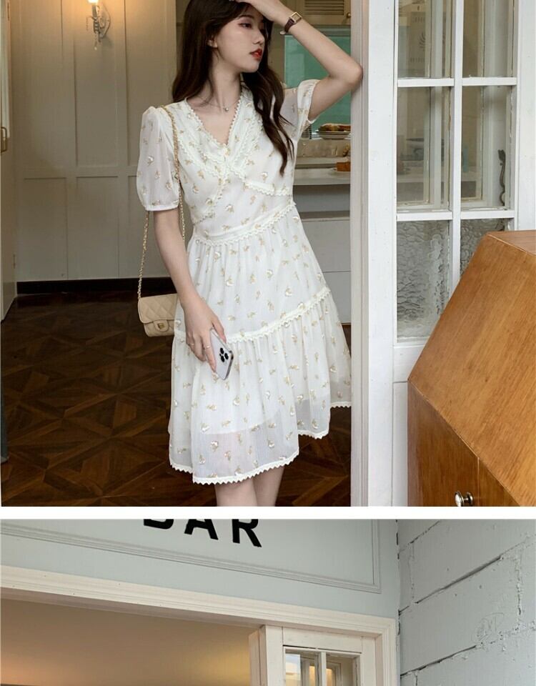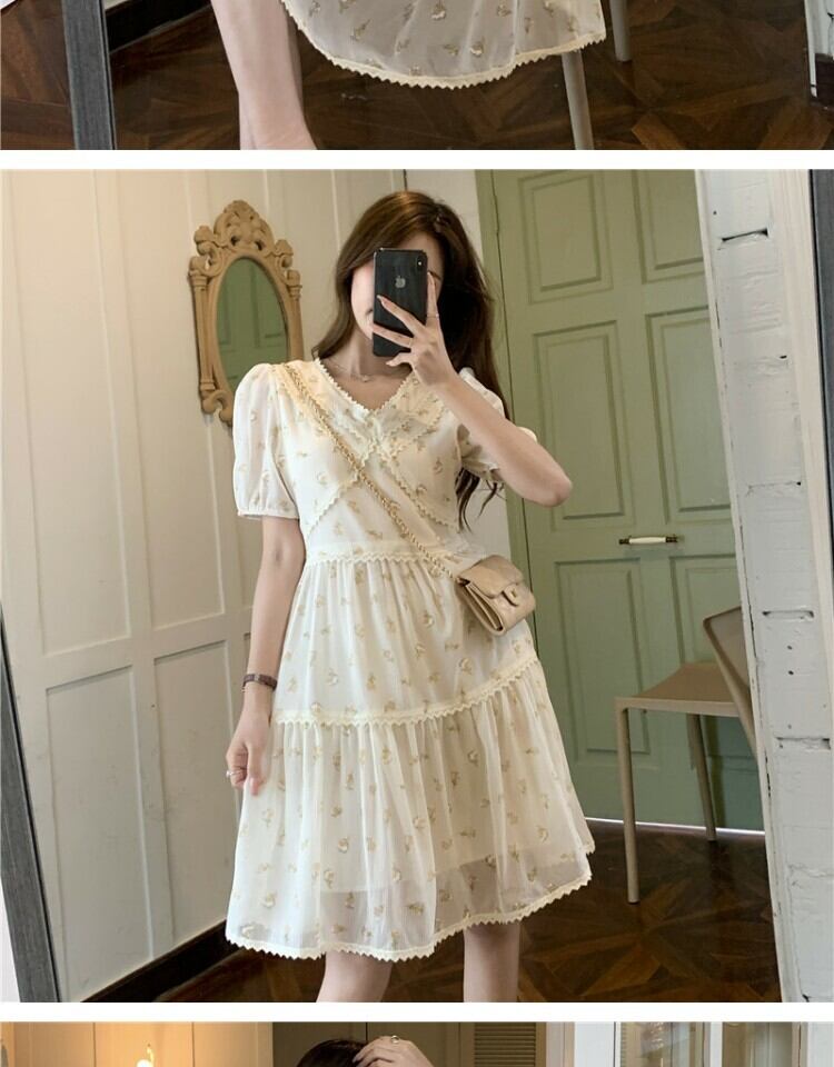 フローラルドレス サマーレースVネックスリーブスカート 夏物 花柄 萌量不足68068619300