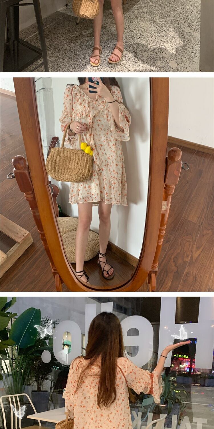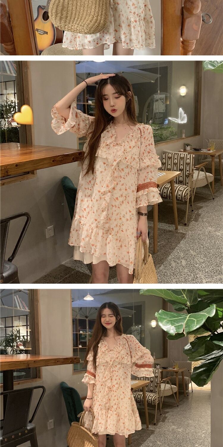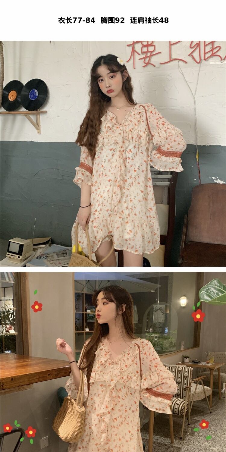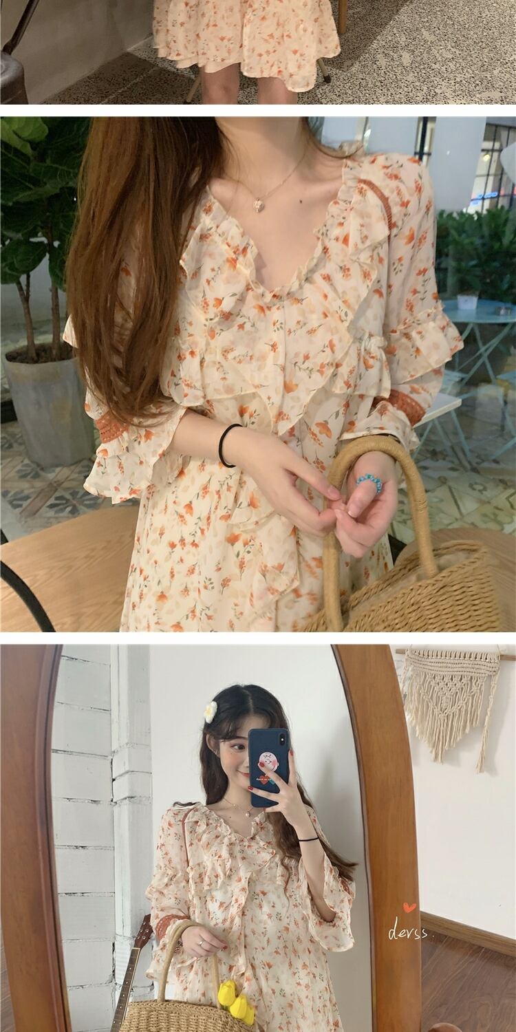 スカート サマースタイルフローラルハイウェストウェストVネックシフォンドレス レディース 夏物 花柄 萌量不足7694115518