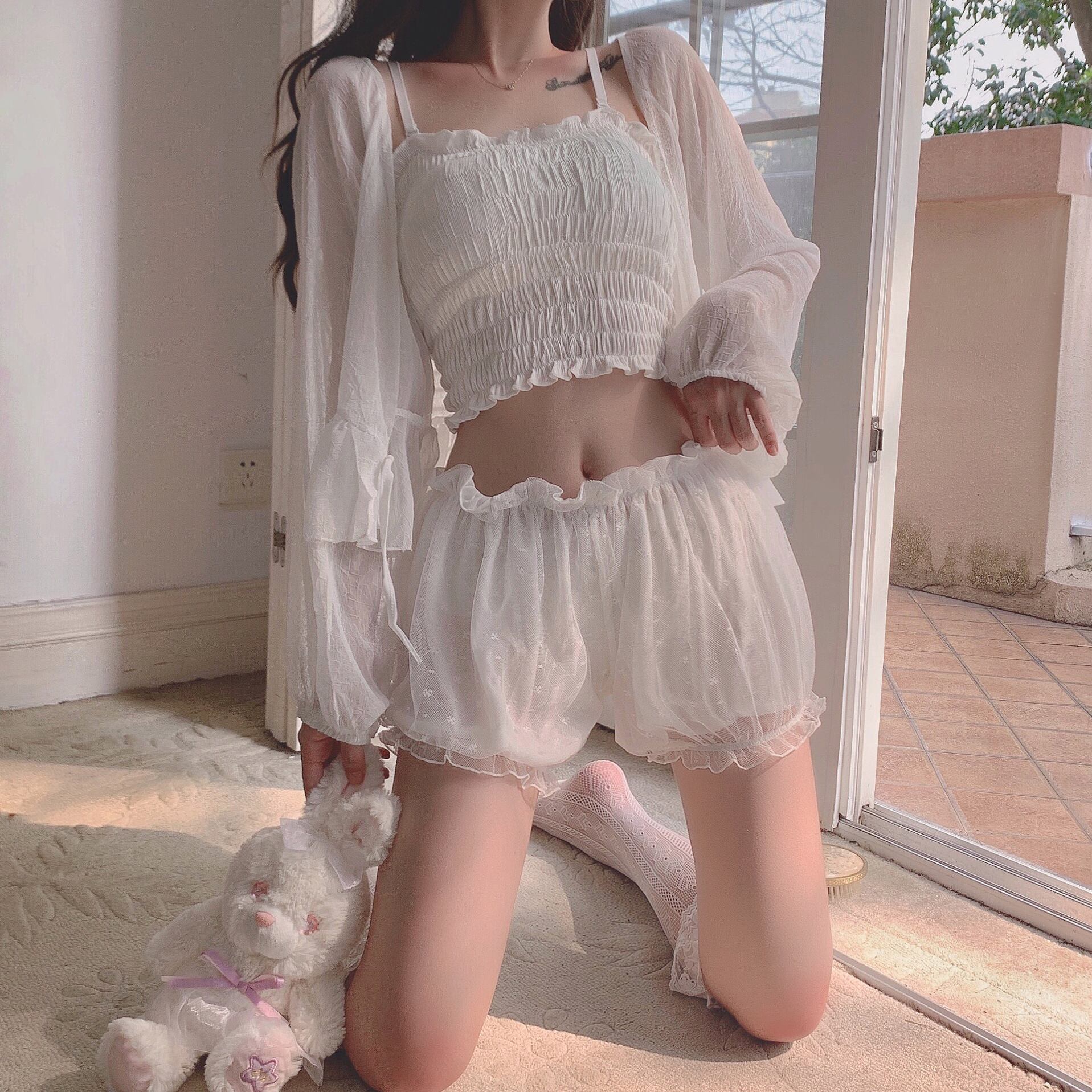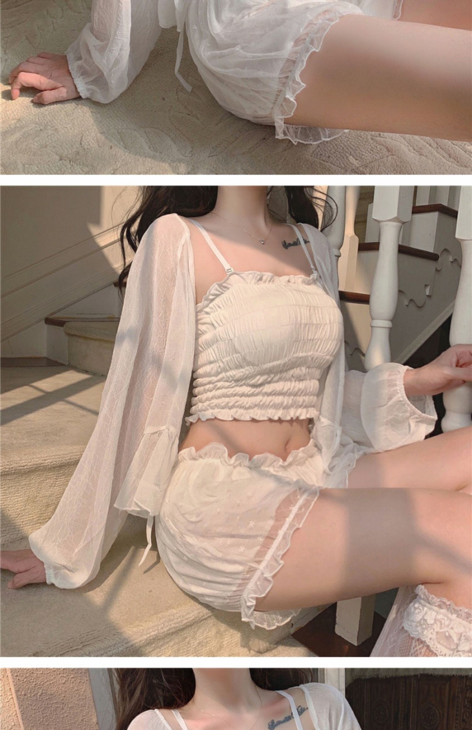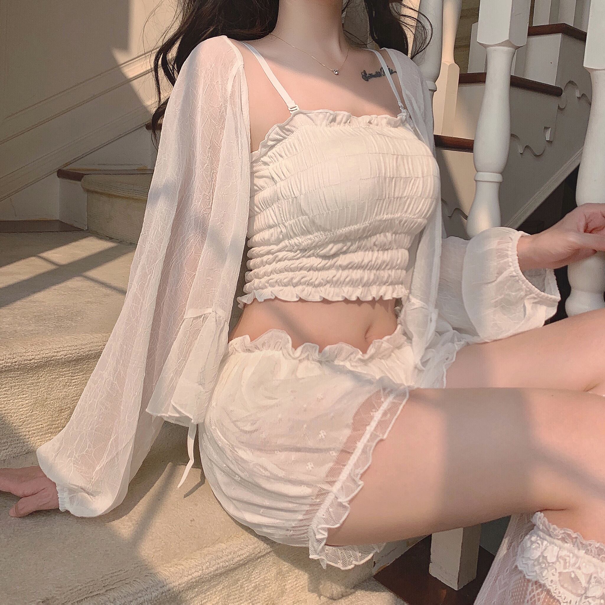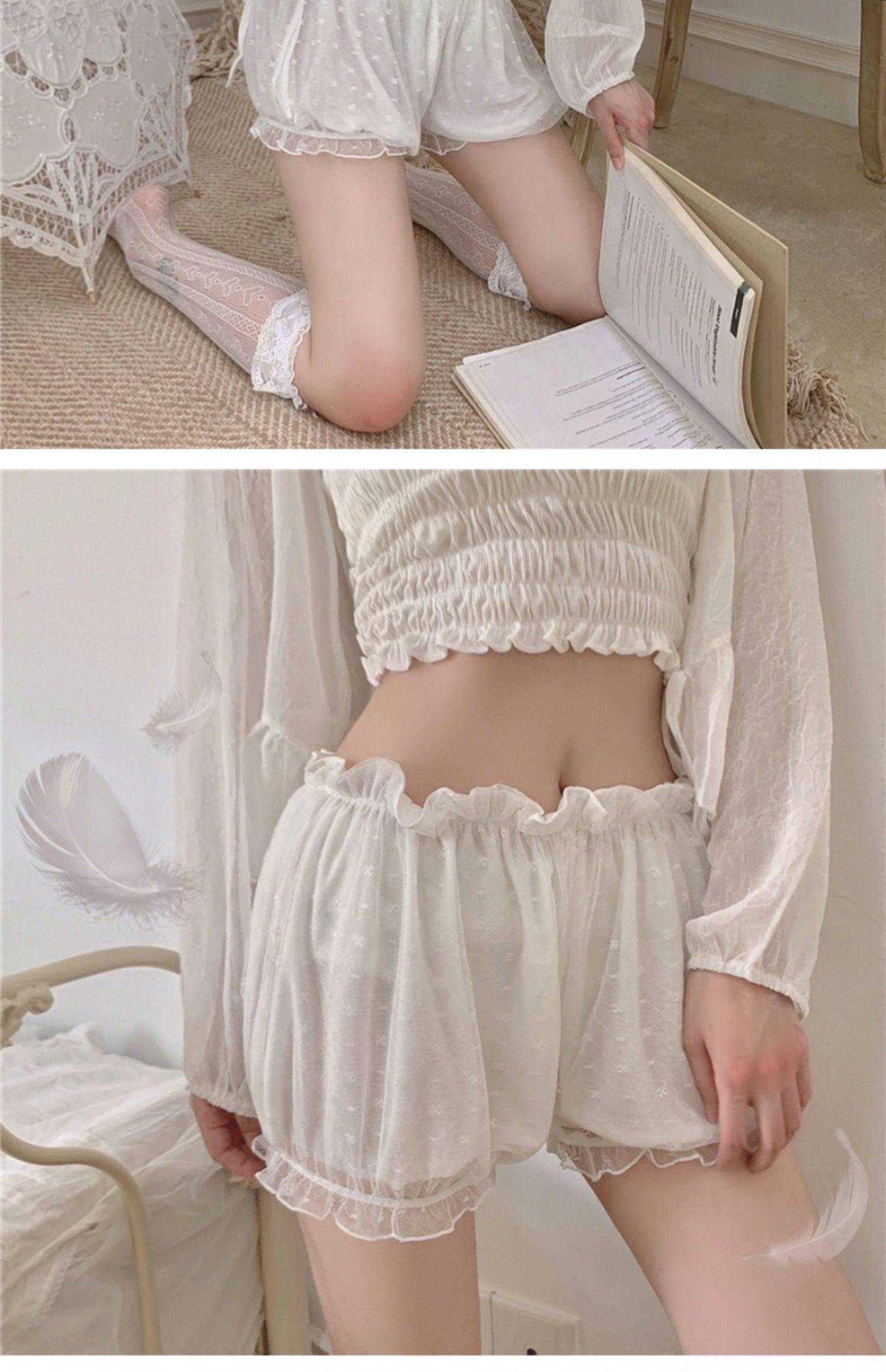 レディースサマージャケット メッシュパンツ レース 大人ガーリー スウィート キュート カジュアル 夏物 レースアップ 萌量不足6676125716
