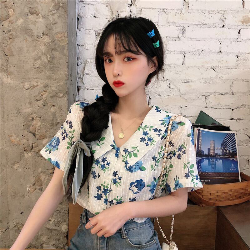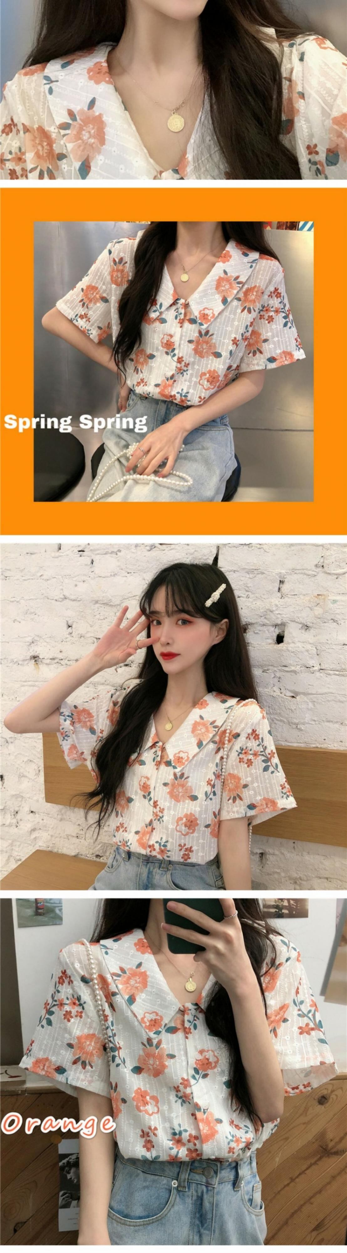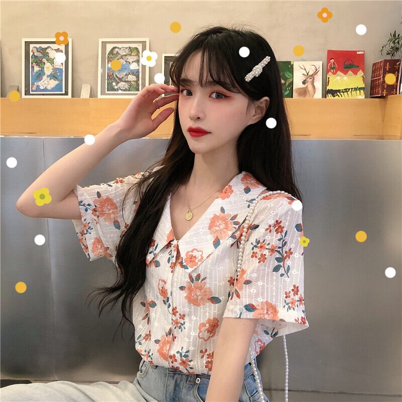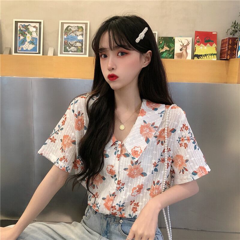 シャツ サマーカラーFlowerデザイン プリント柄薄手 大人ガーリー スウィート キュート カジュアル 夏物 フラワーデザイン 萌量不足52629162654