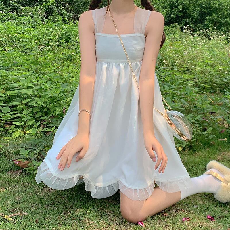 バックドレス レディースサマーノースリーブソリッド カラーハイウェストスカート リボン 大人ガーリー スウィート キュート カジュアル 夏物 ソリッドカラー 萌量不足87232483615