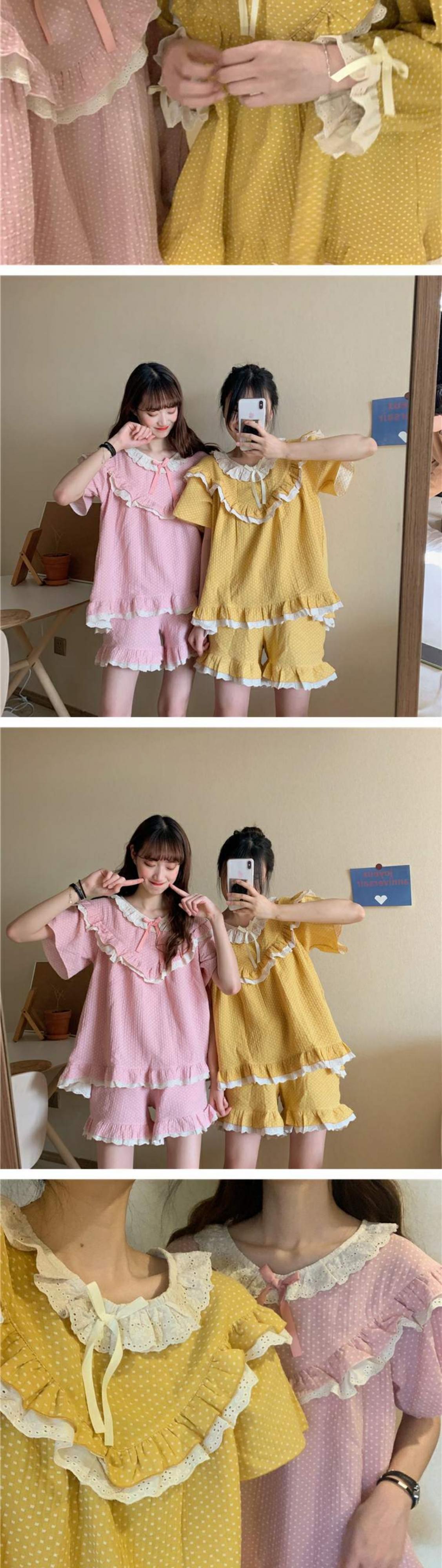 レースサマースタイルスリーブトップス ショーツ レディース 大人ガーリー スウィート キュート カジュアル 夏物 ブルマー ステッチ 萌量不足39961717500