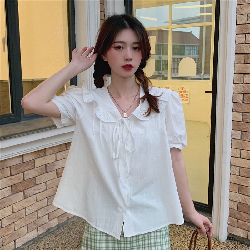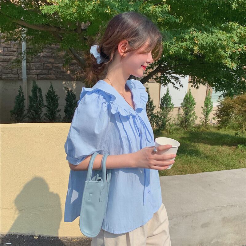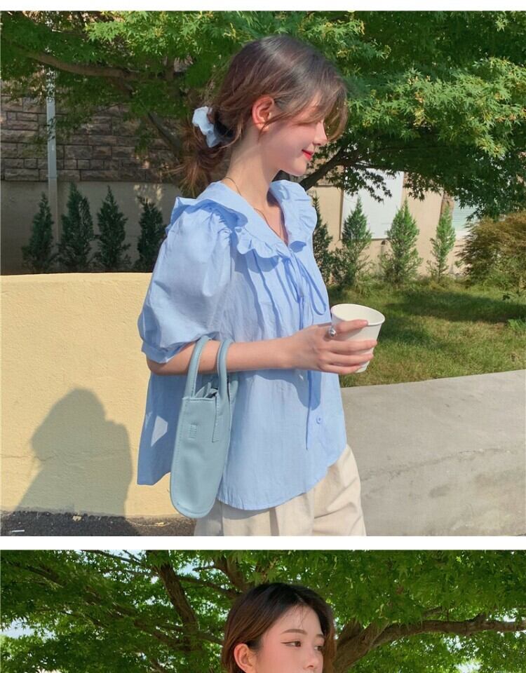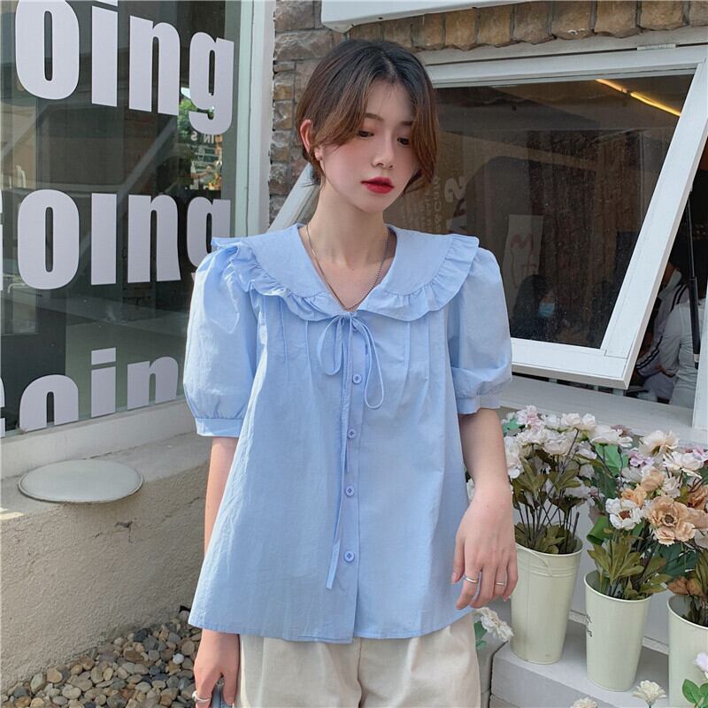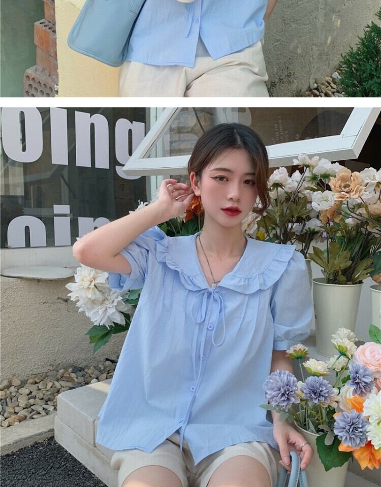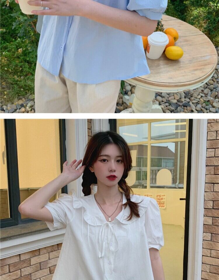 カラーブルーシャツ サマーホワイトスタンダード レトロ 夏物 萌量不足36136413221