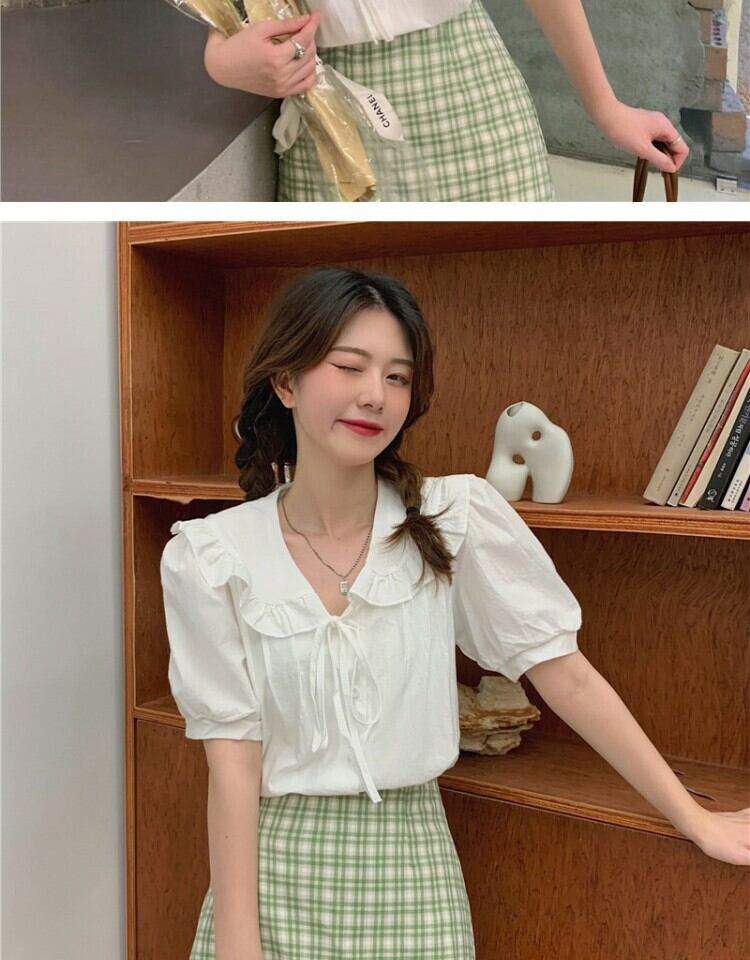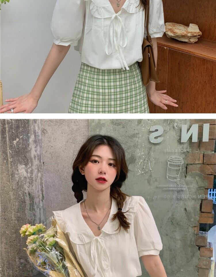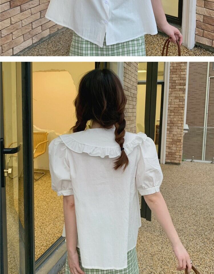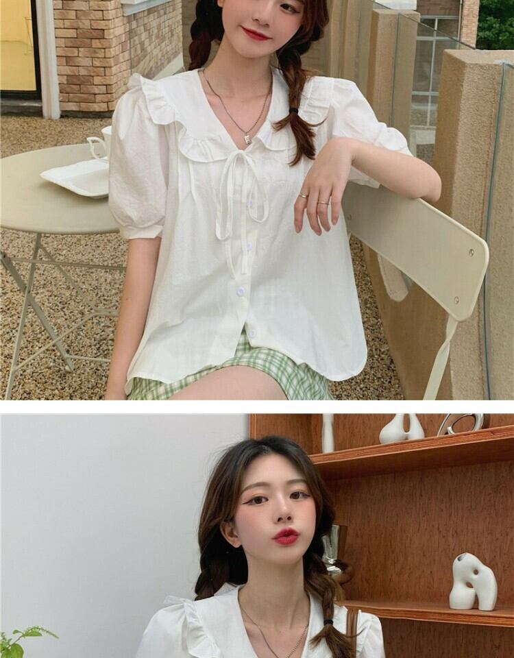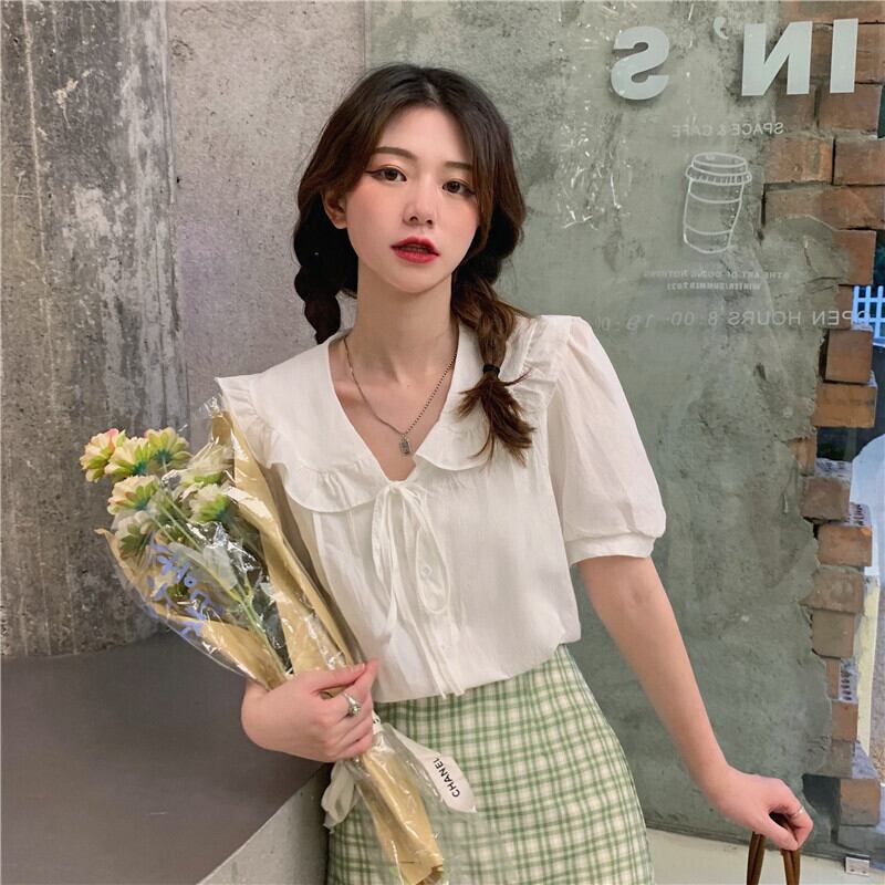 カラーブルーシャツ サマーホワイトスタンダード レトロ 夏物 萌量不足36136413221