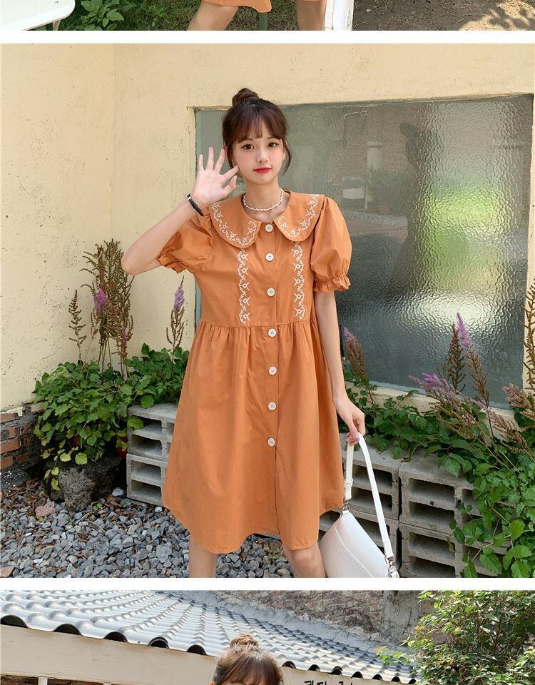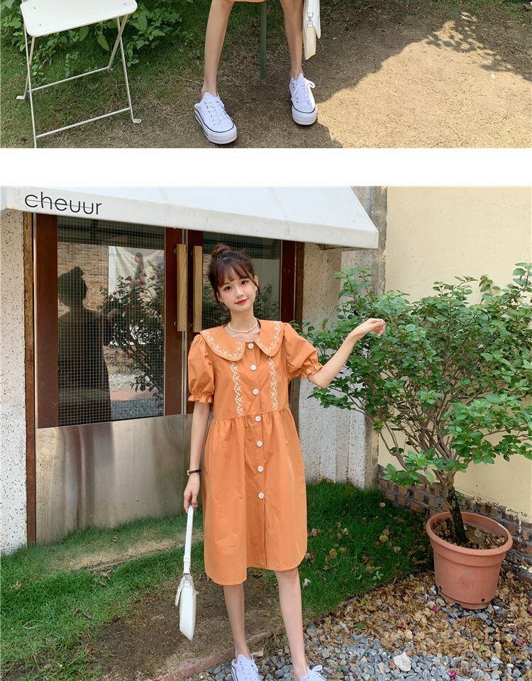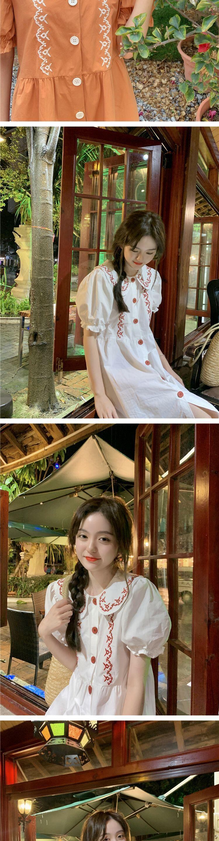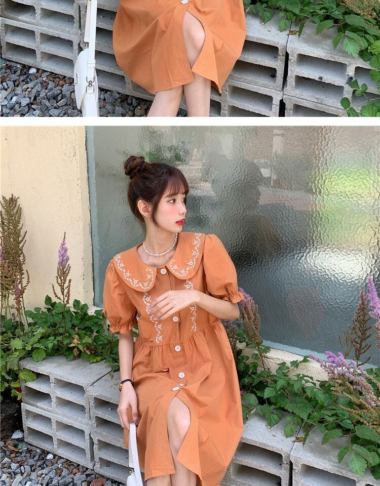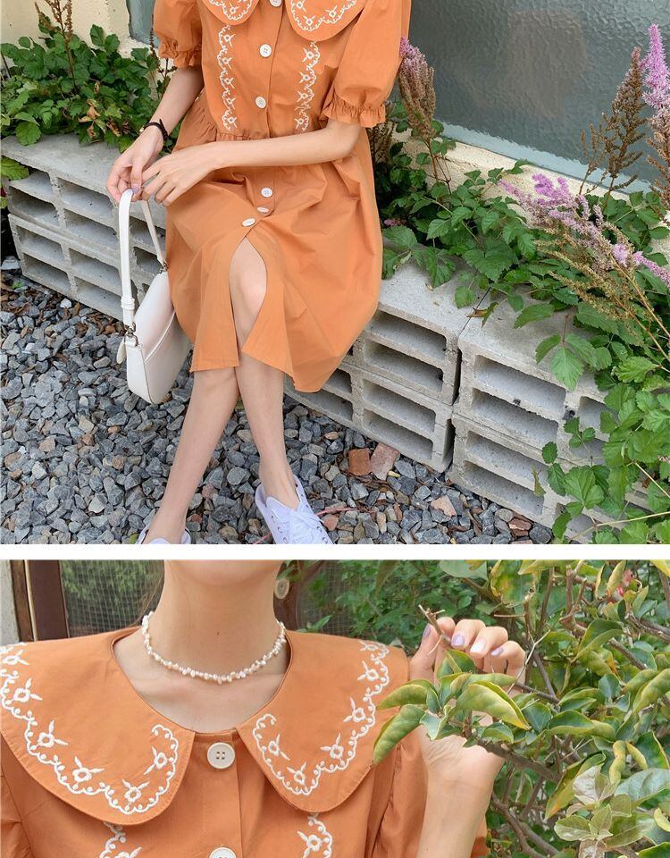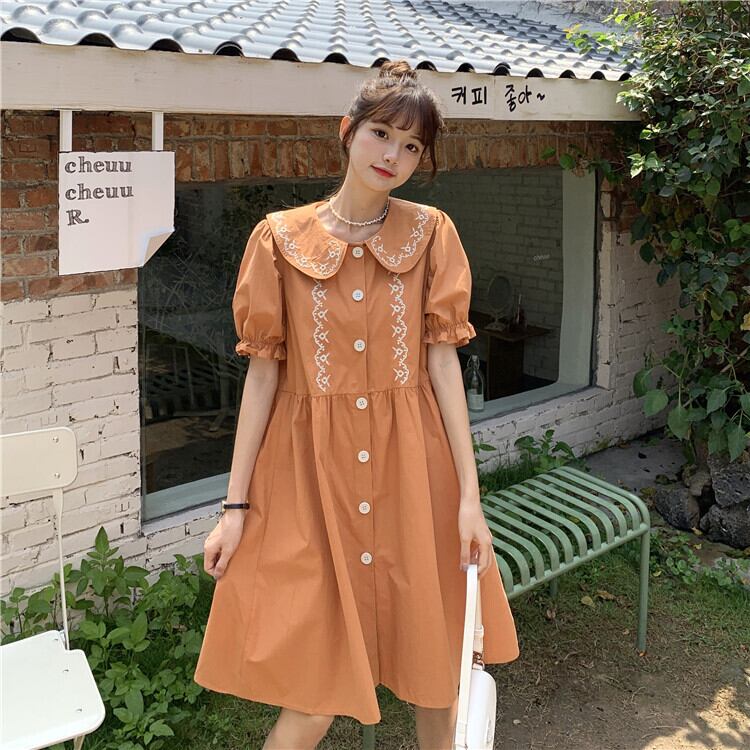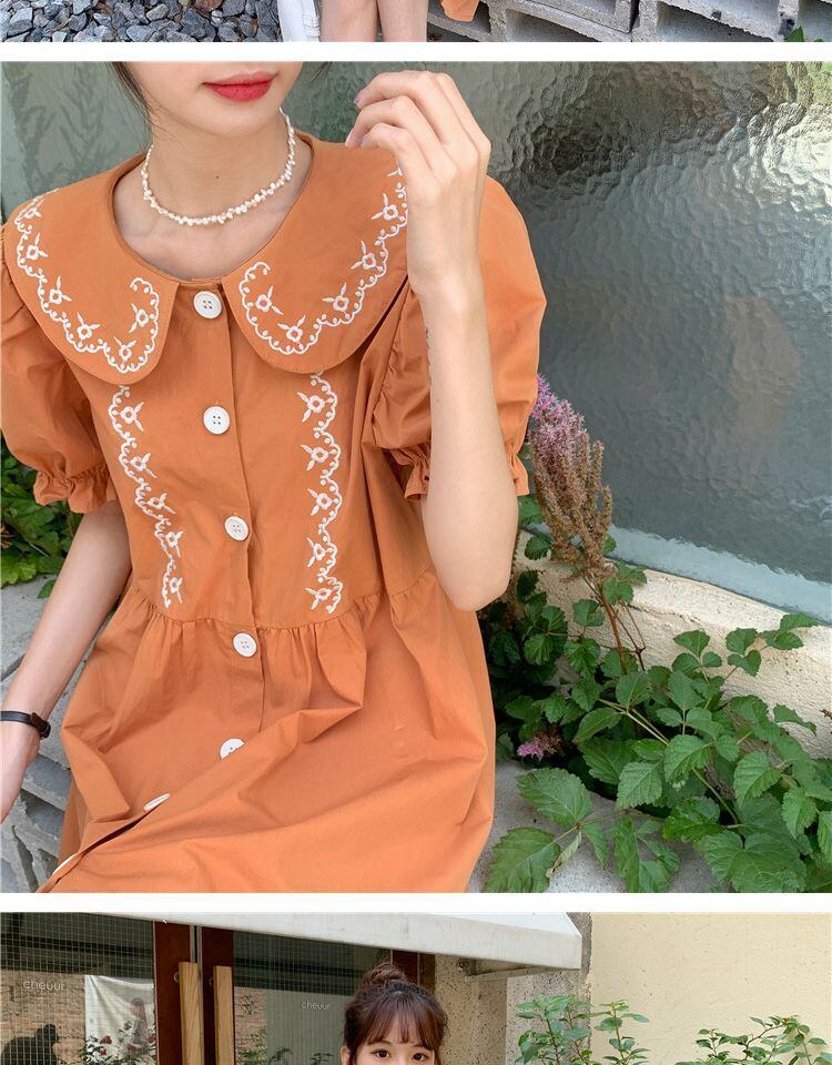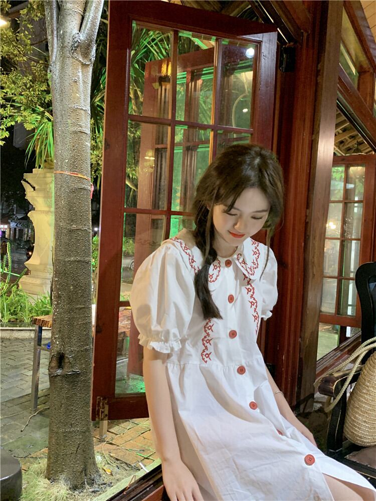 カラードレス サマースリーブルーズ薄手スカート レッド 刺繍 大人ガーリー スウィート キュート カジュアル 夏物 萌量不足13329349221