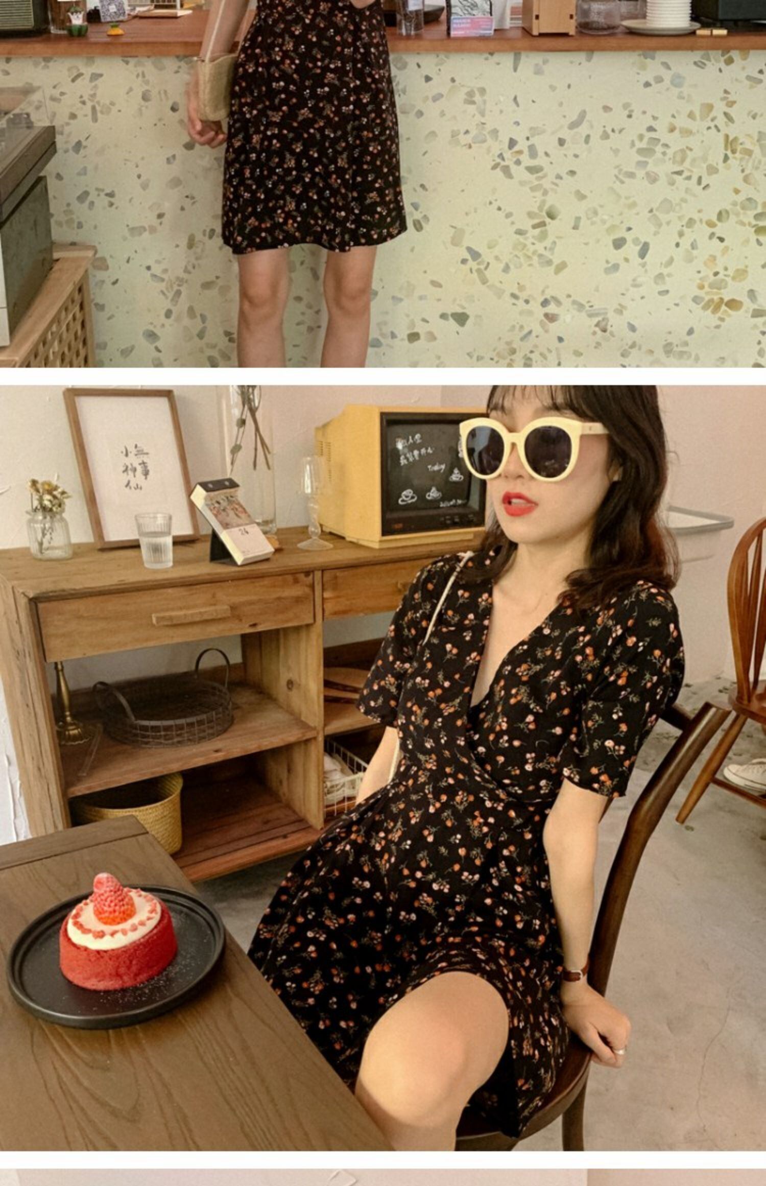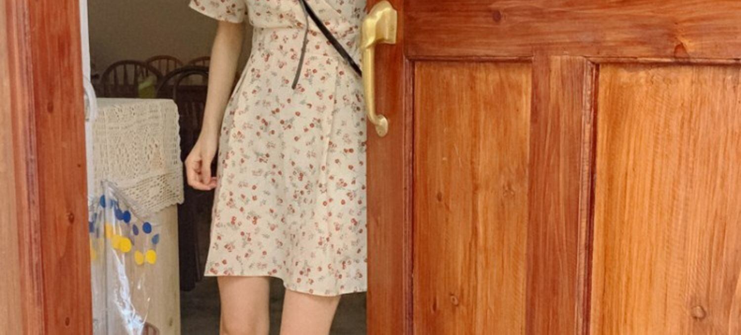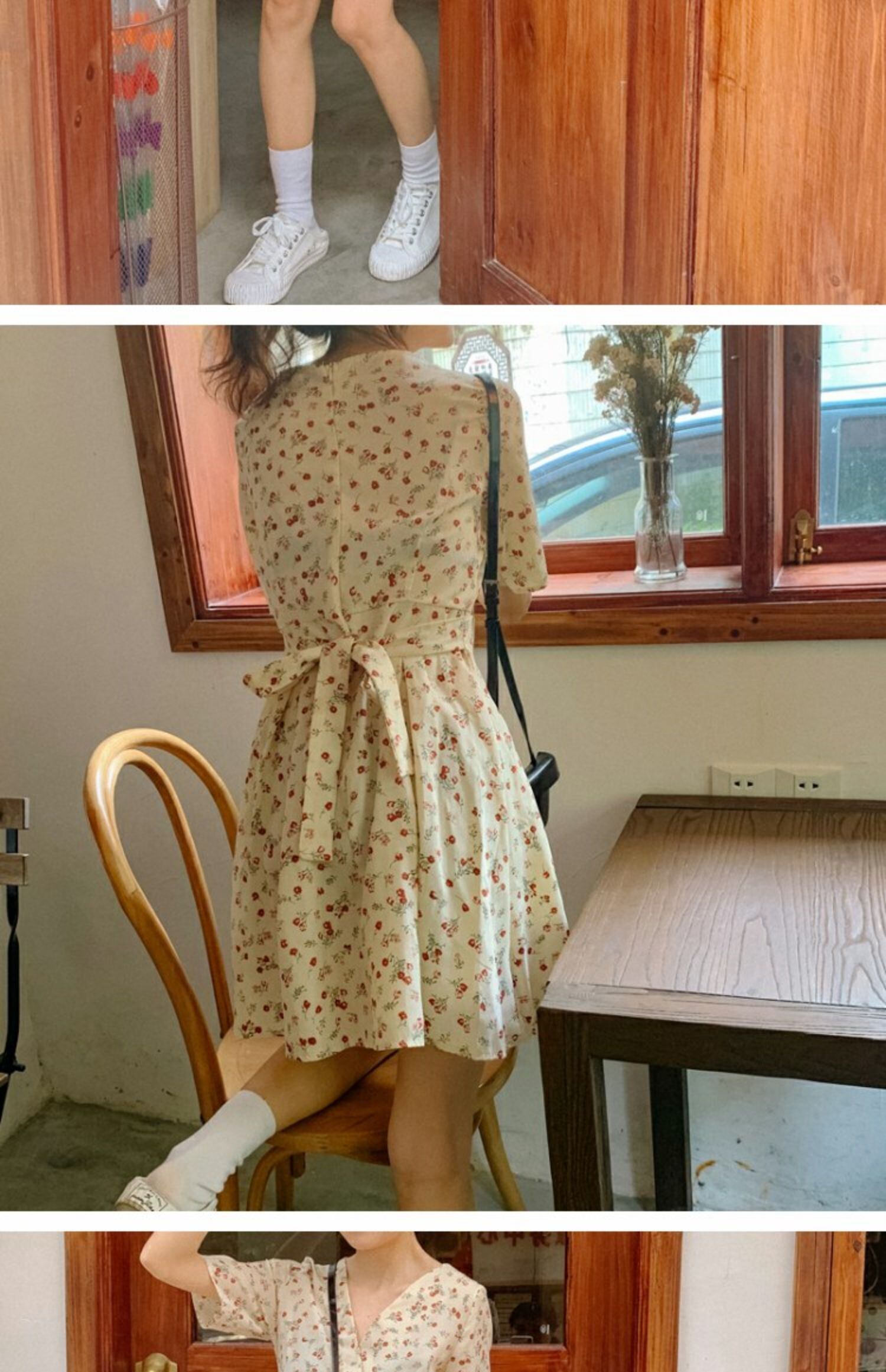 スタンダードVネックフローラルドレス サマースタイルウェストショートAラインスカート レトロ 夏物 花柄 萌量不足87506114612