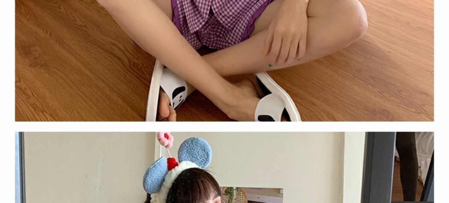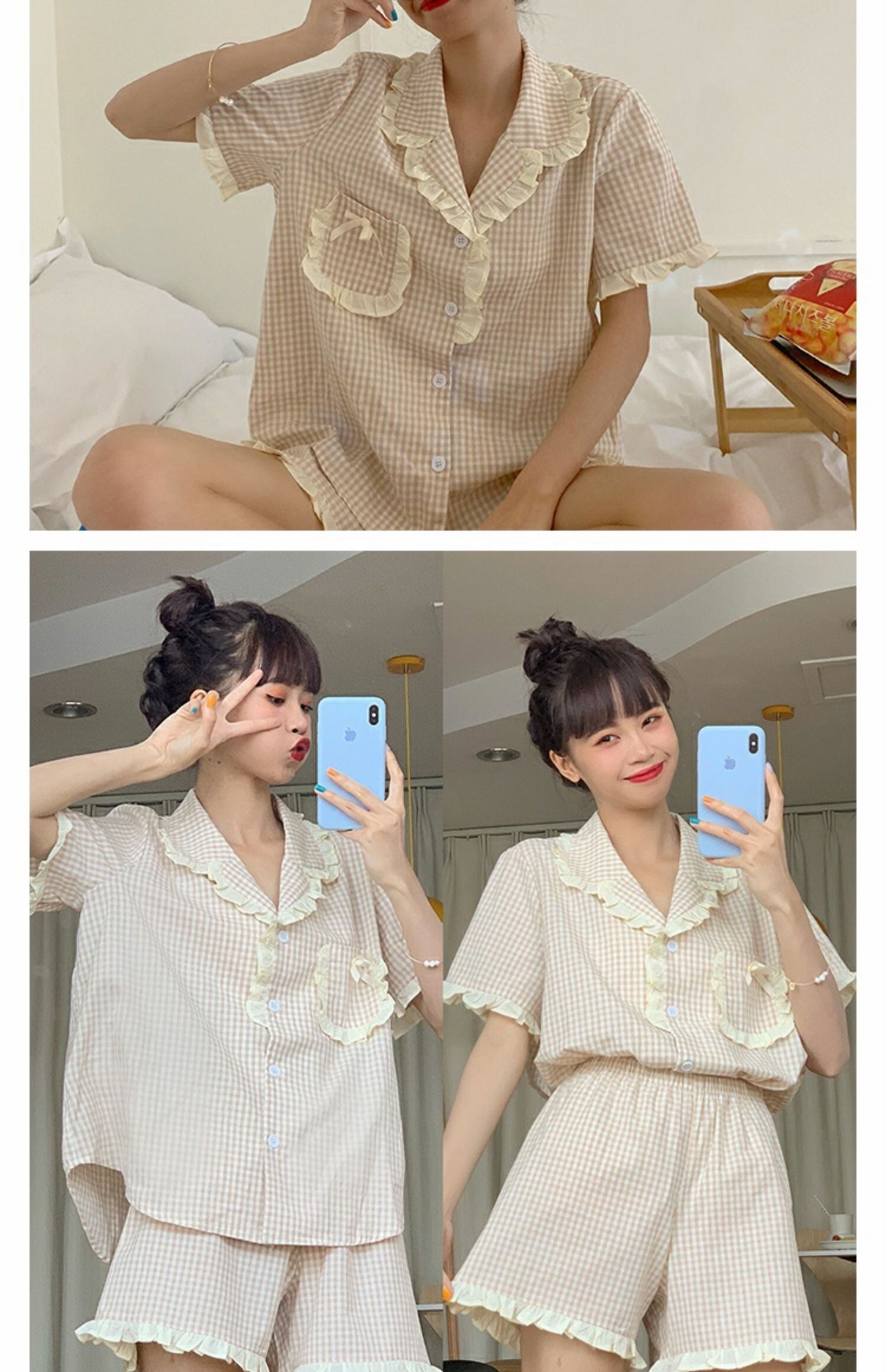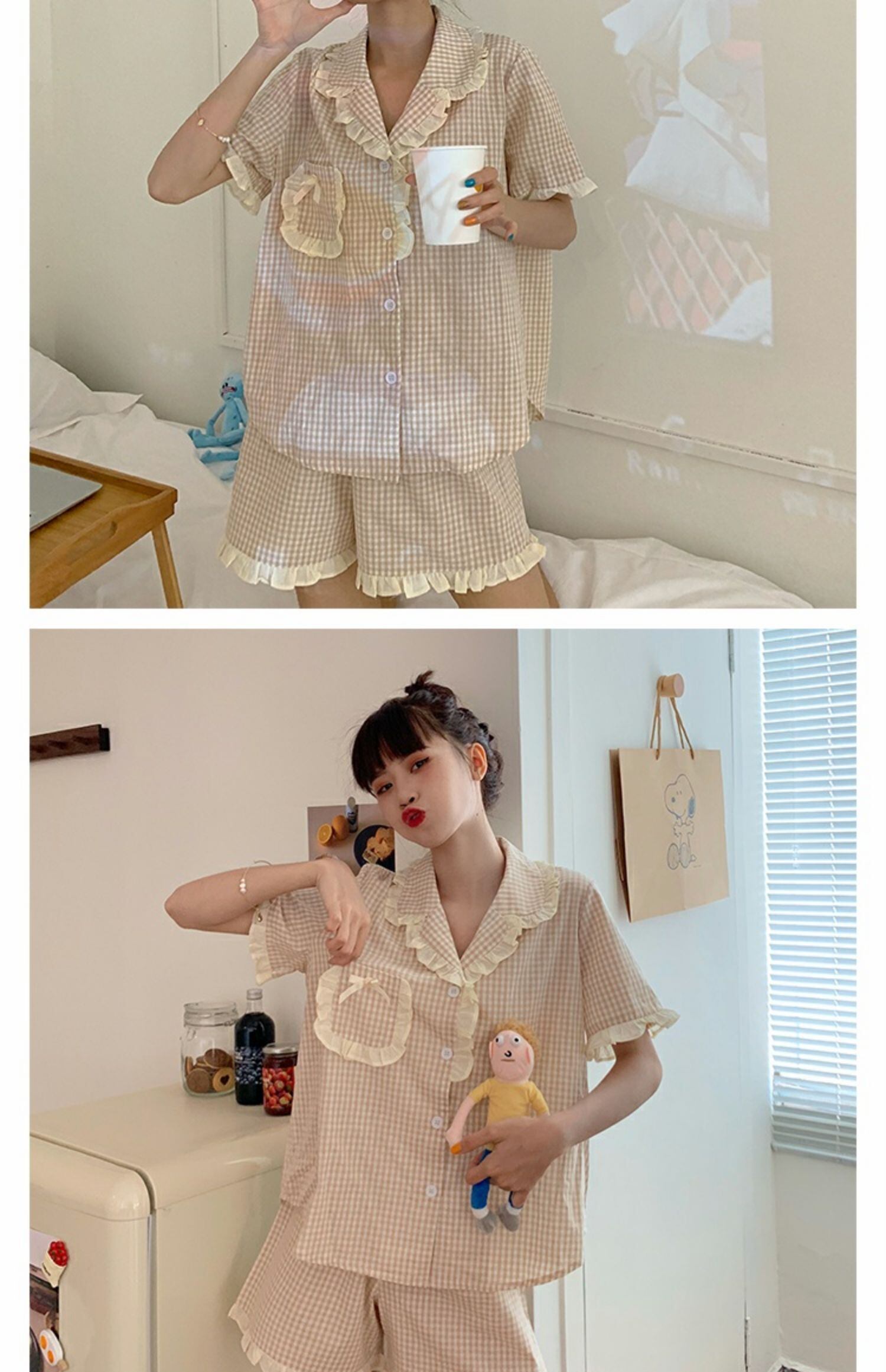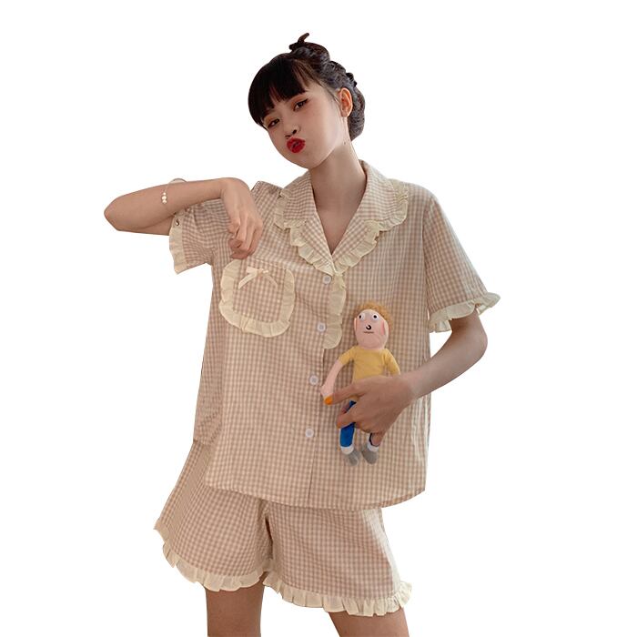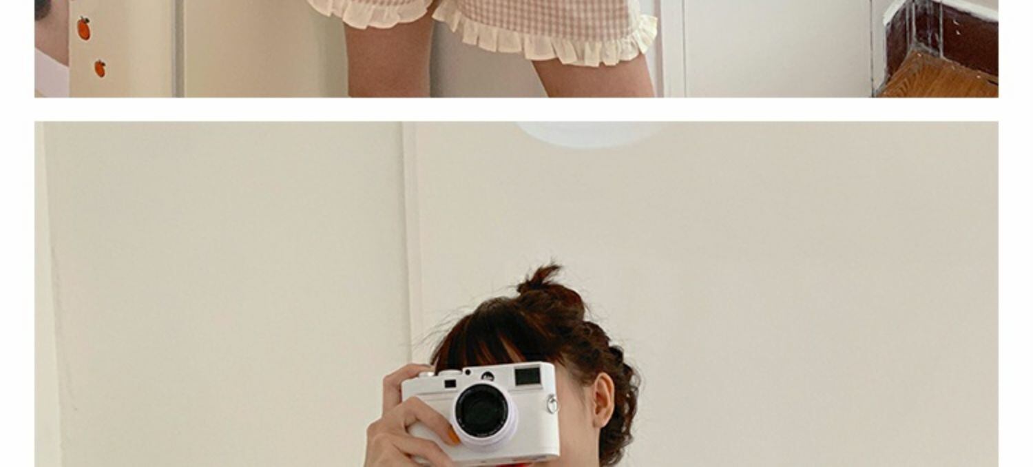 サマー格子柄トップス ショーツ 大人ガーリー スウィート キュート カジュアル 夏物 ブルマー パープル 萌量不足3712702315