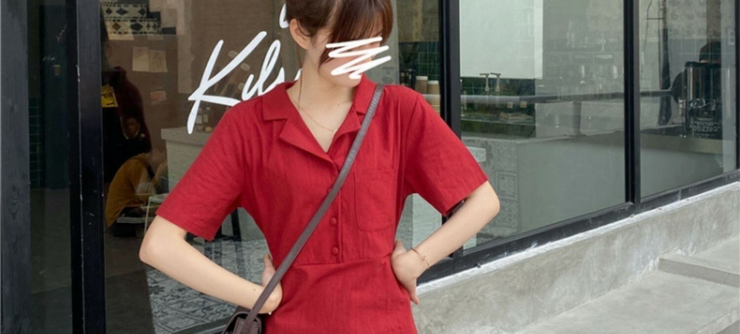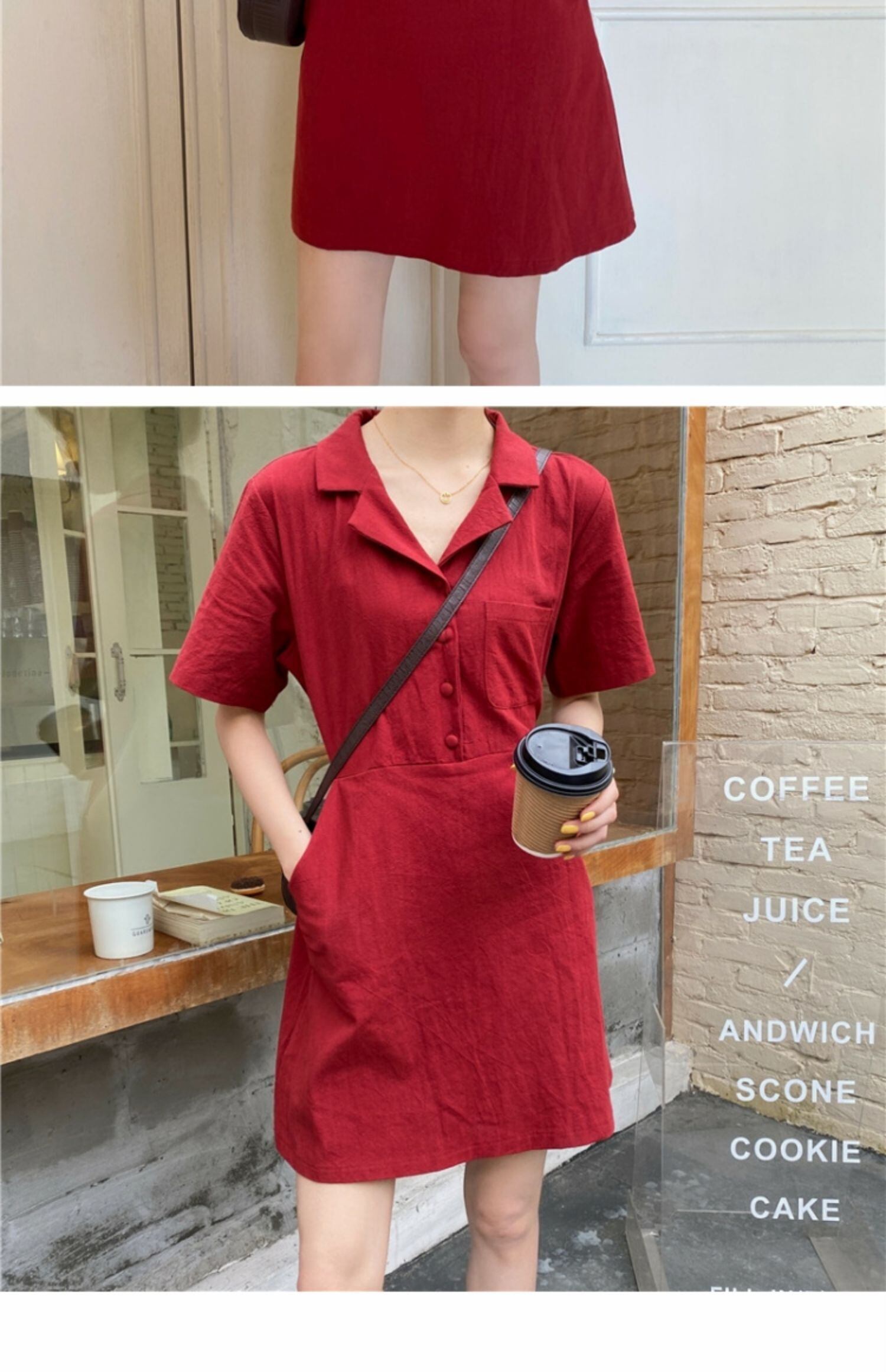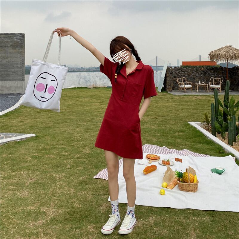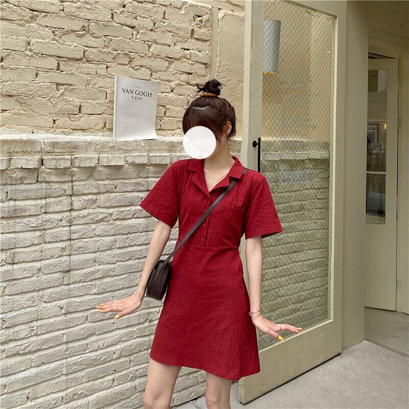 スカート サマーカラーレッドボタンハイウェストウェストスリムドレス 夏物 萌量不足18165493399