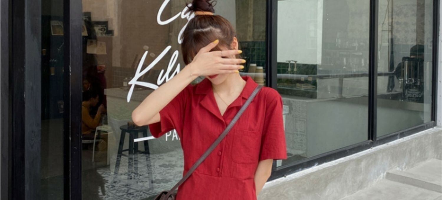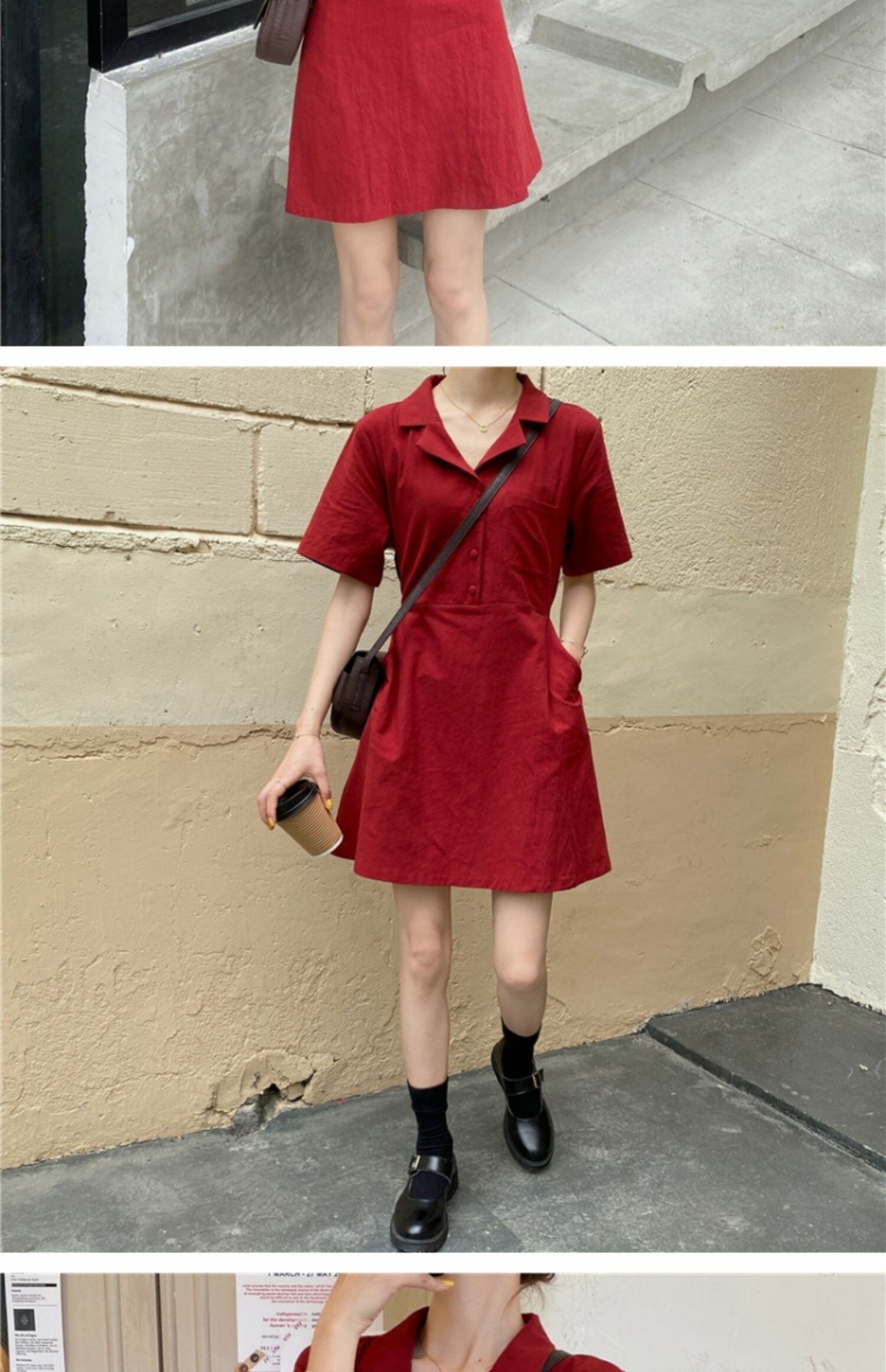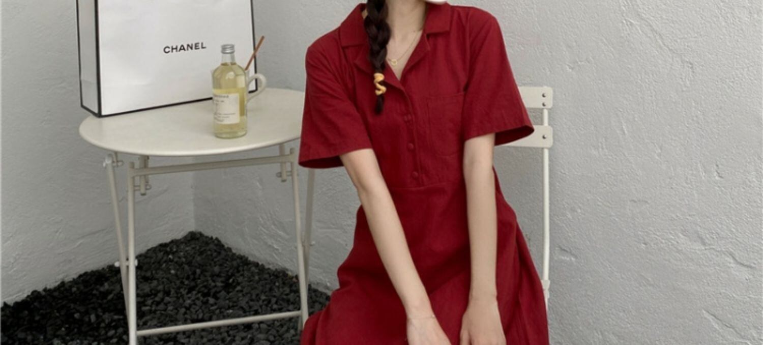 スカート サマーカラーレッドボタンハイウェストウェストスリムドレス 夏物 萌量不足18165493399