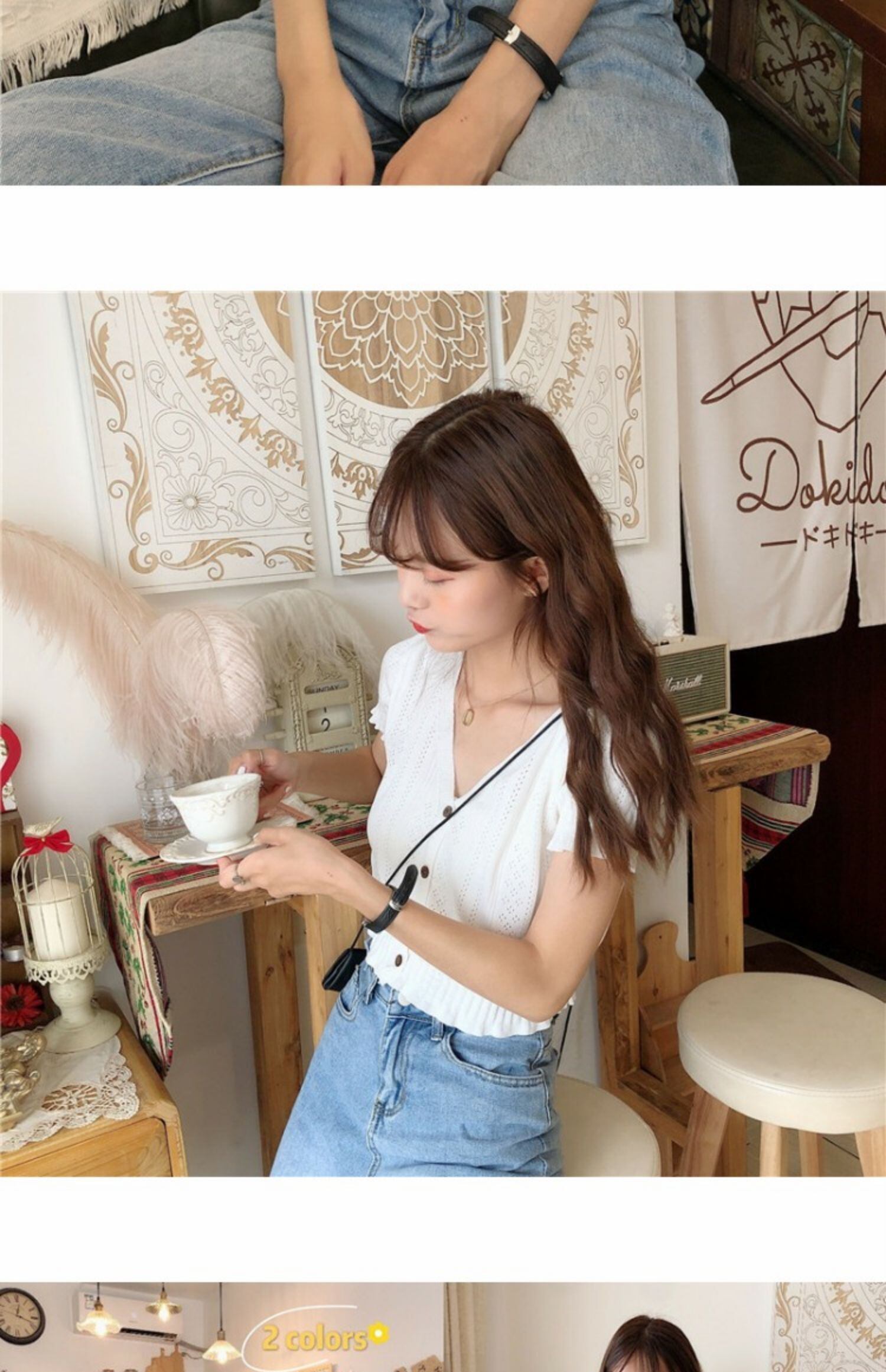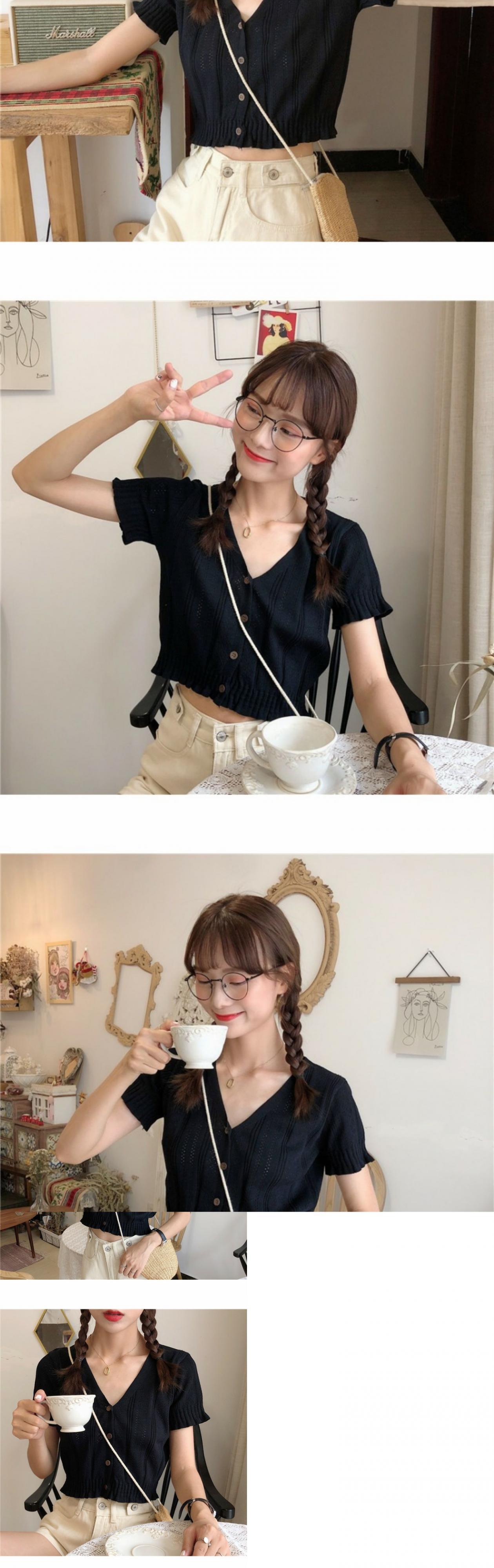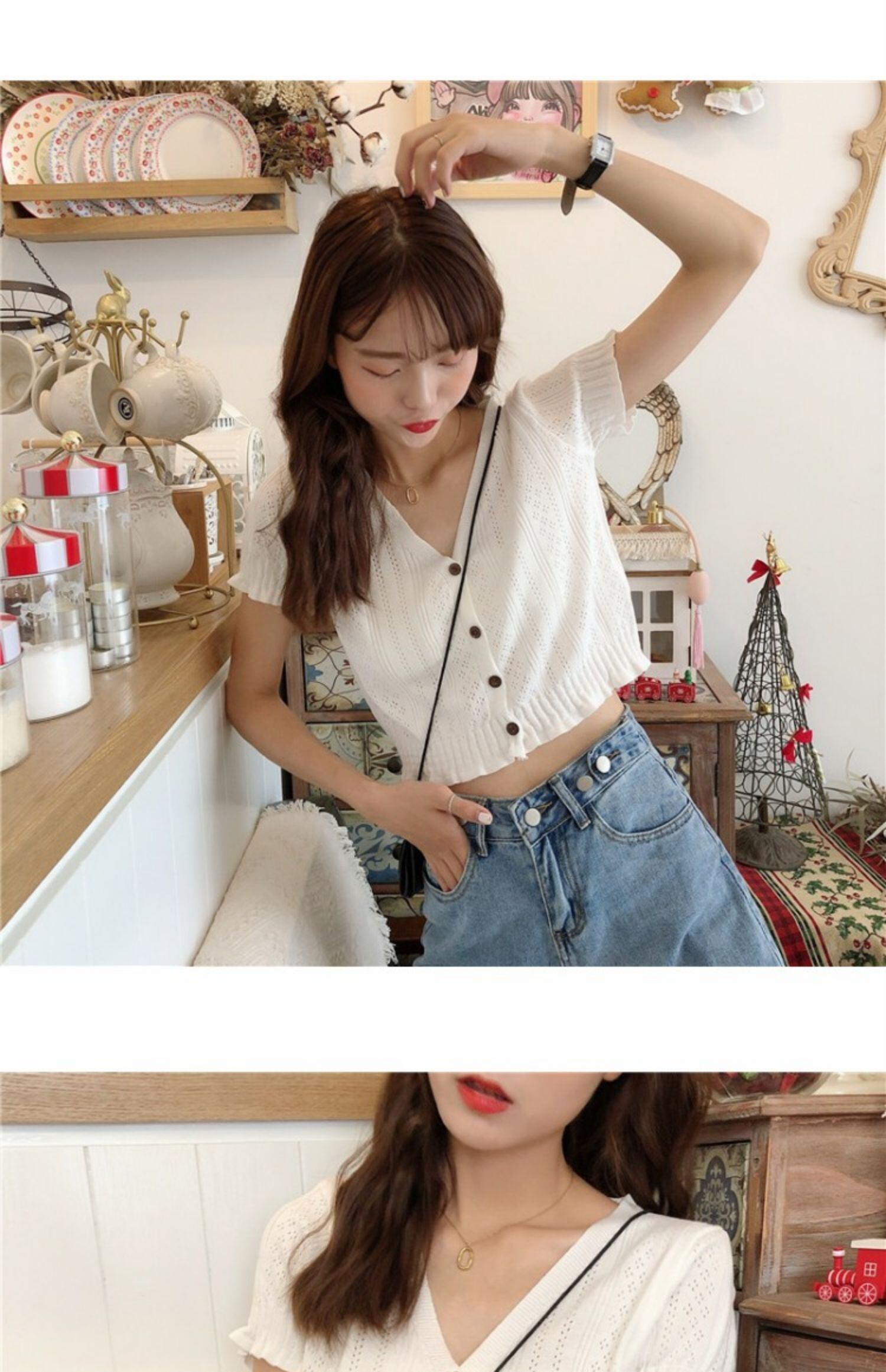 ショートトップス VネックスリムニットカーディガンTシャツ オータム 大人ガーリー スウィート キュート カジュアル 秋物 萌量不足63371824571