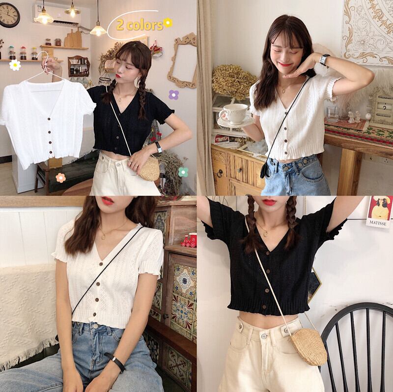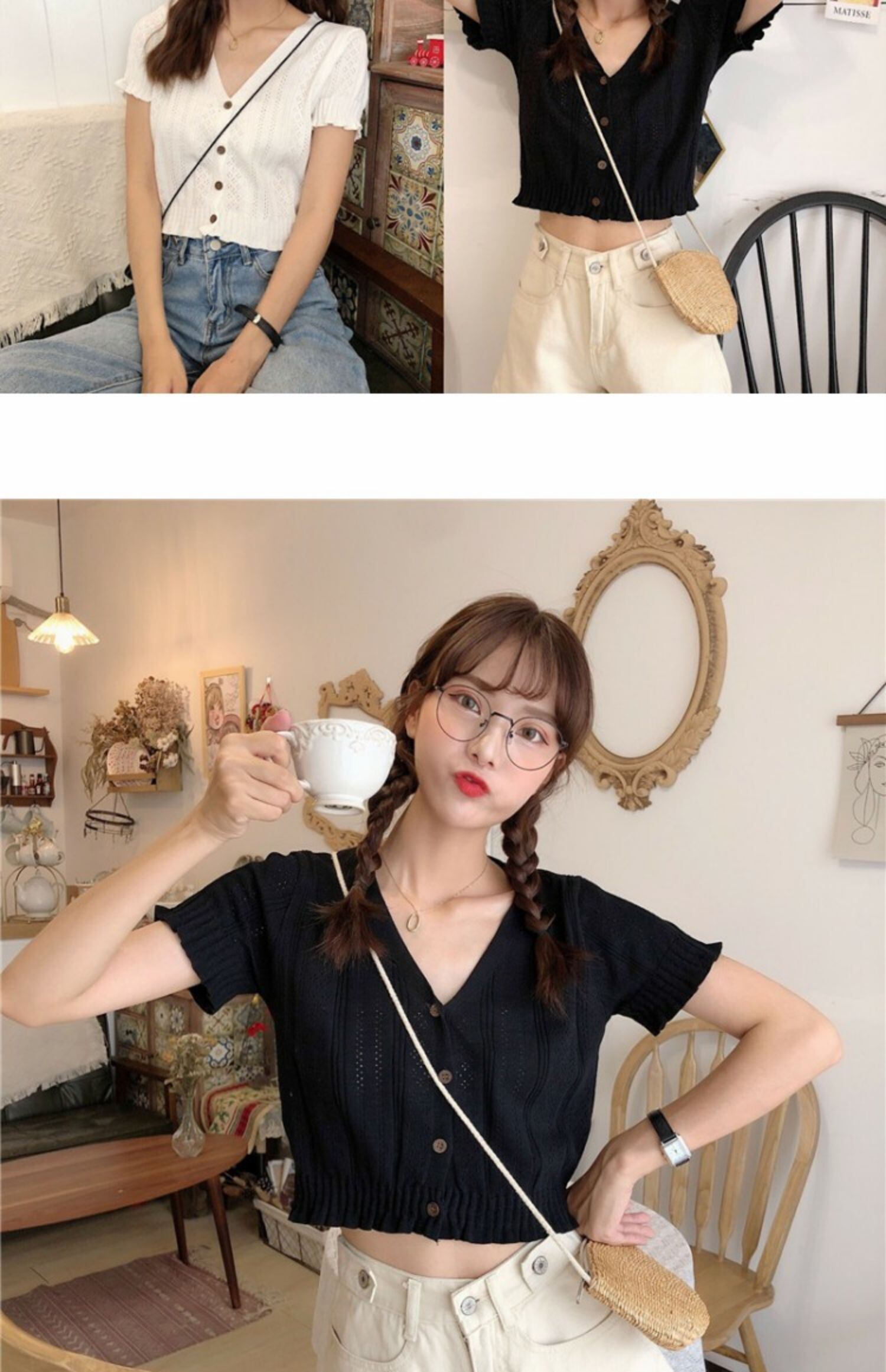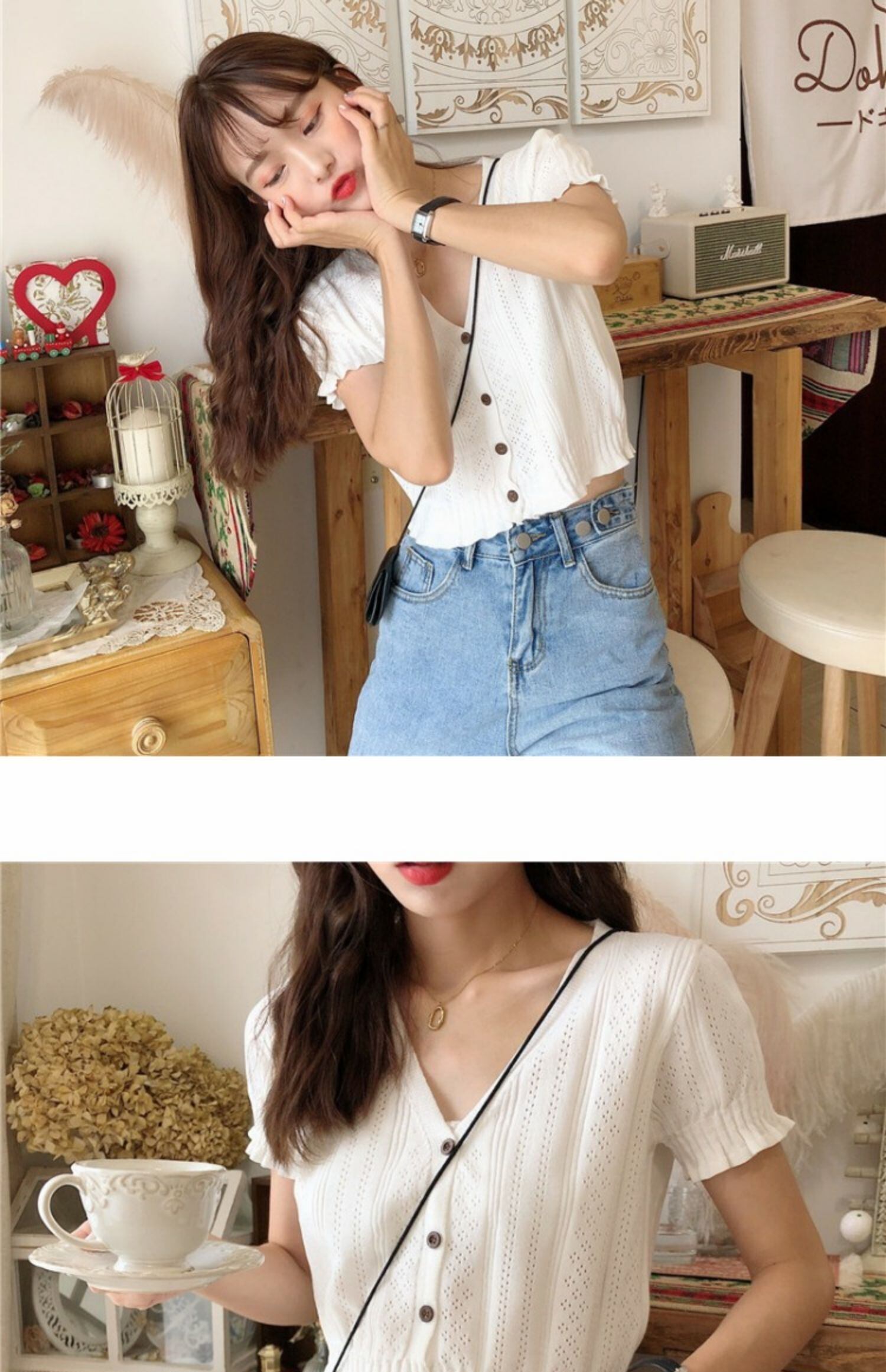 ショートトップス VネックスリムニットカーディガンTシャツ オータム 大人ガーリー スウィート キュート カジュアル 秋物 萌量不足63371824571